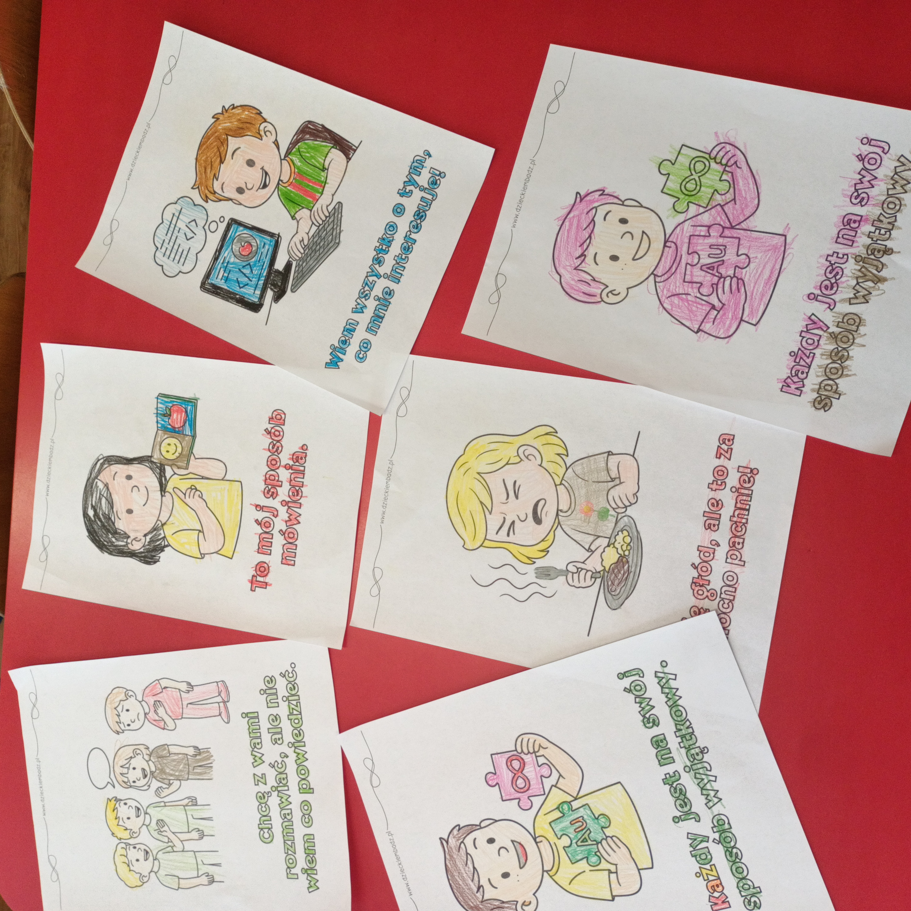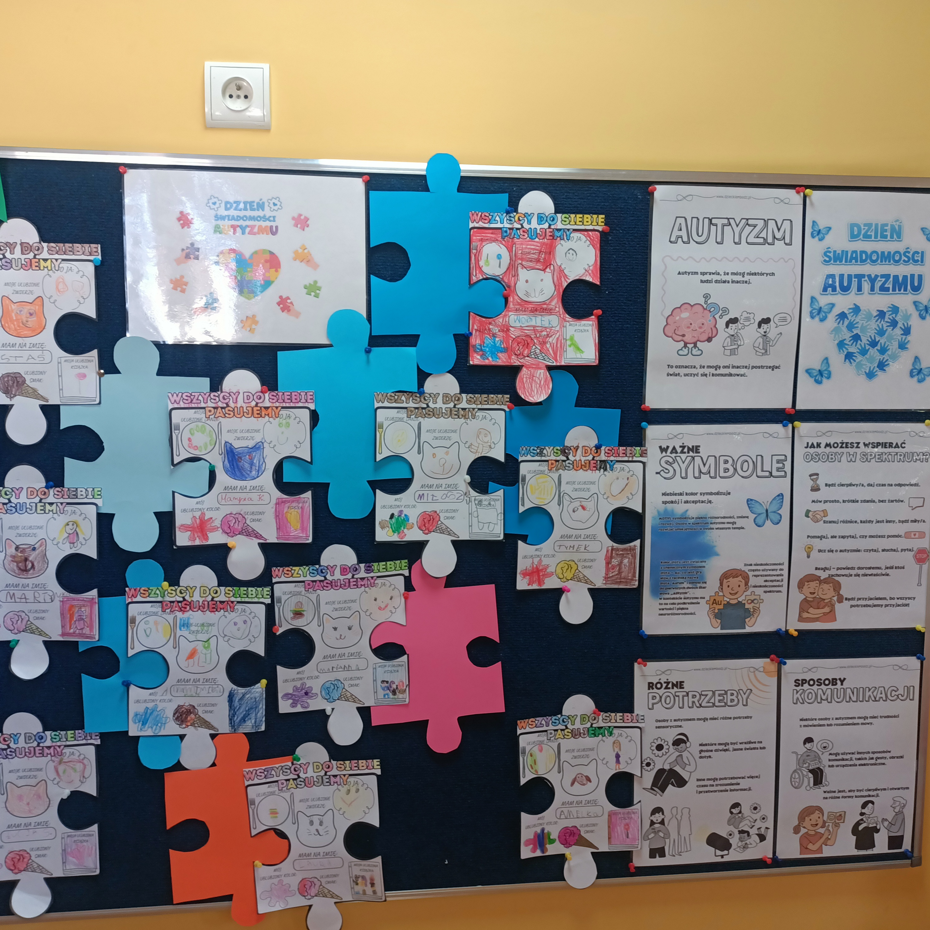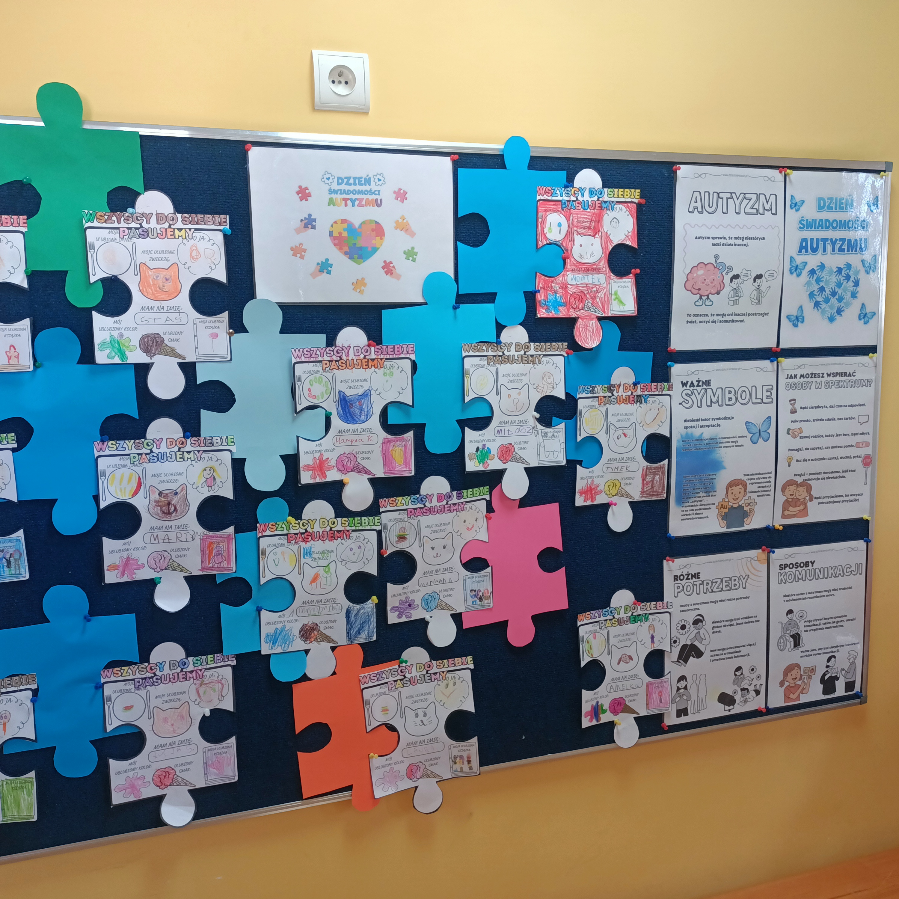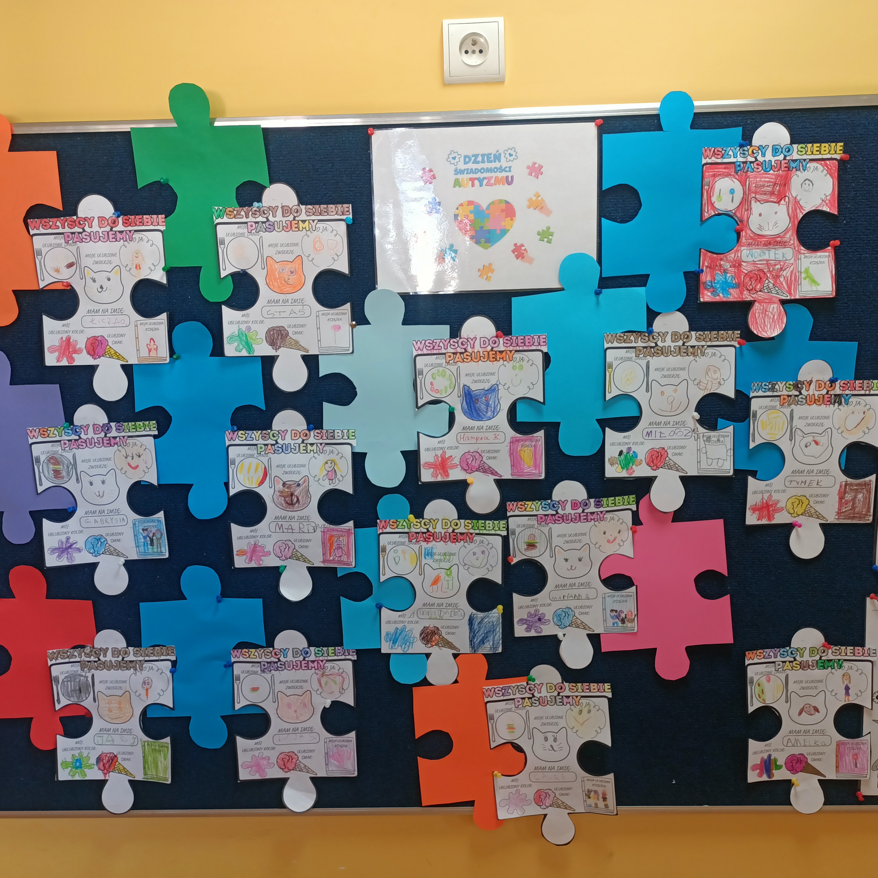 Z tej okazji obejrzeliśmy film edukacyjny poświęcony temu tematowi. W poprzednim tygodniu wykonaliśmy również pracę plastyczną pt. „Wszyscy pasujemy do siebie”, aby podkreślić, że każdy chce być akceptowany, każdy ma marzenia i potrzebuje przyjaźni. Zwróciliśmy uwagę na to, że każdy – niezależnie od różnic – zasługuje na szacunek.