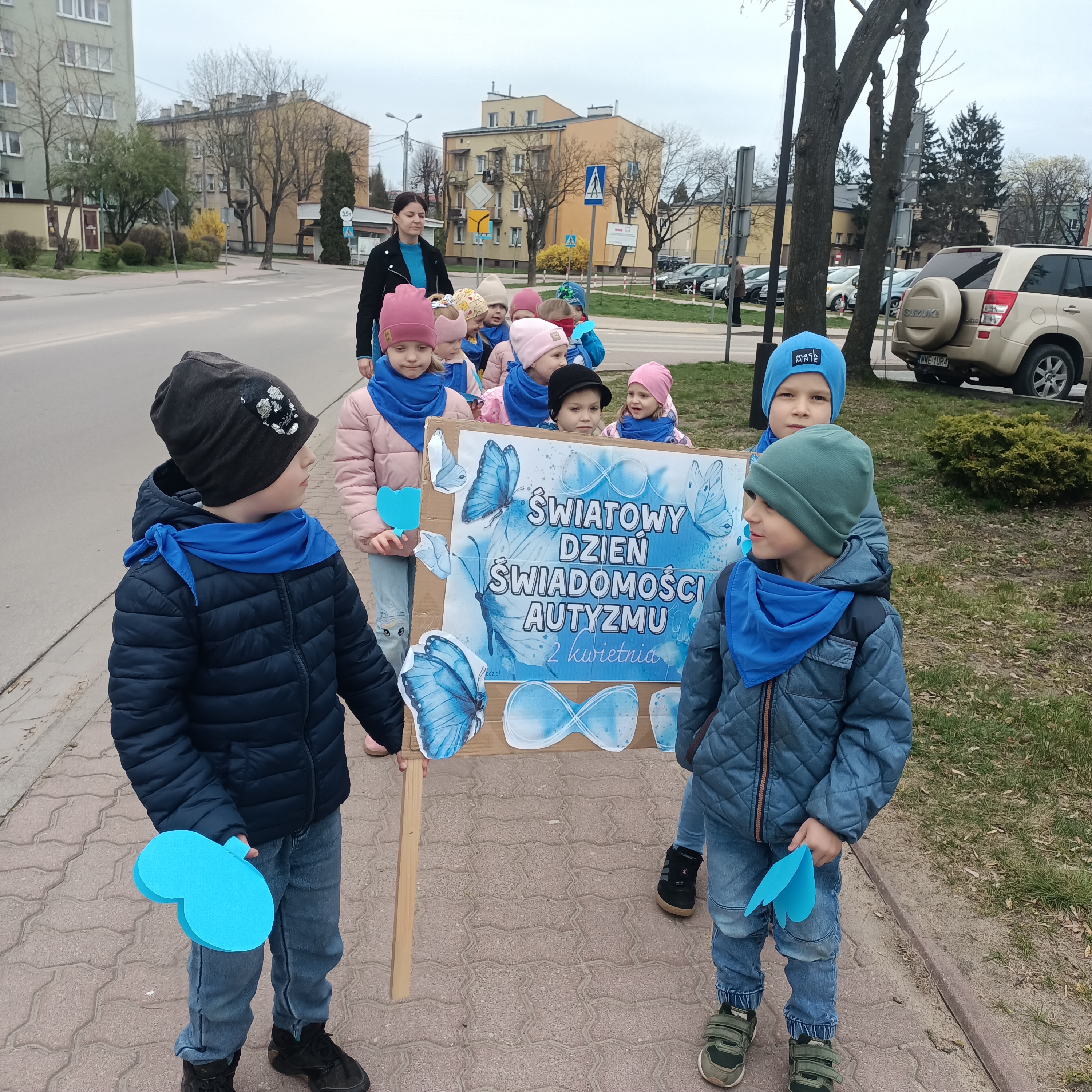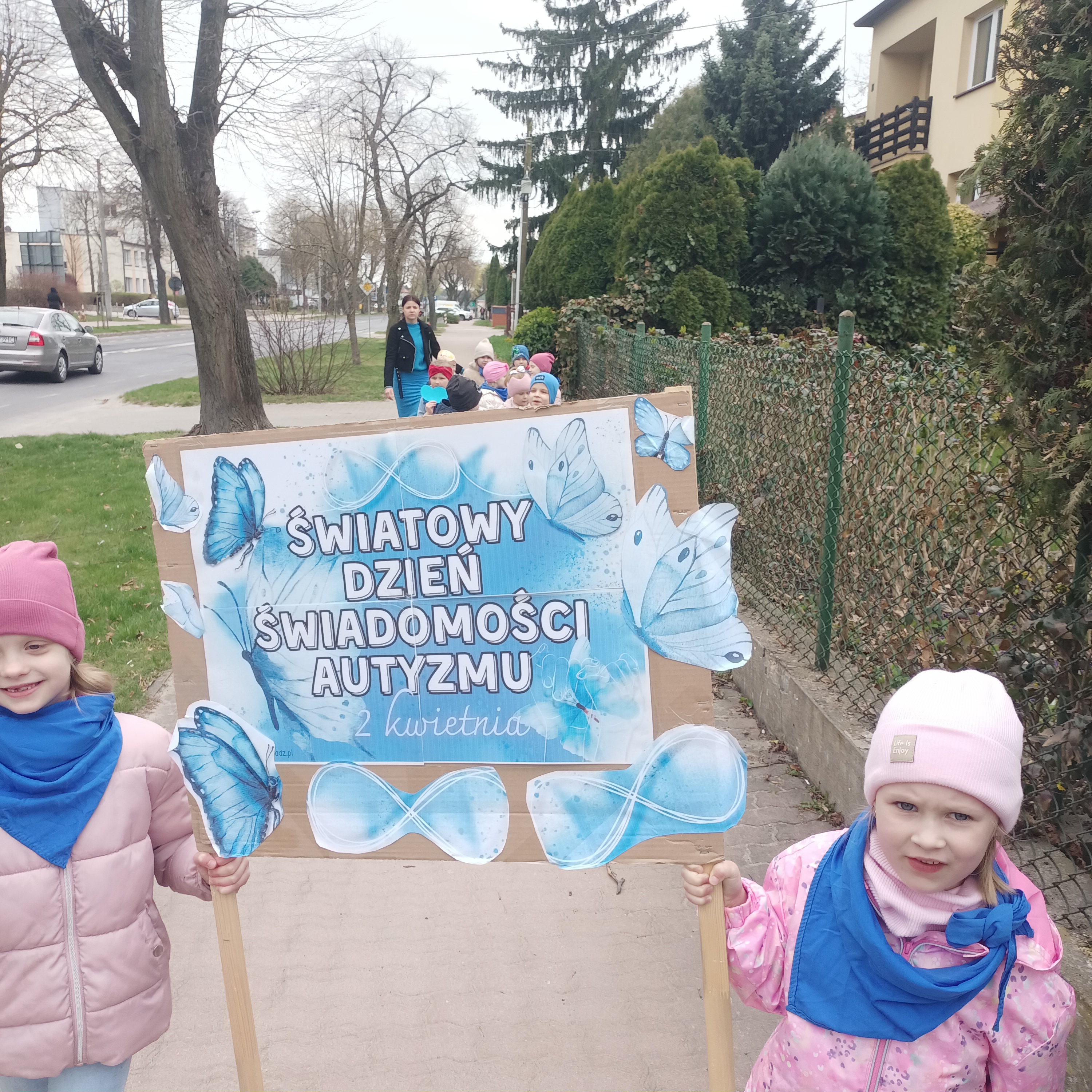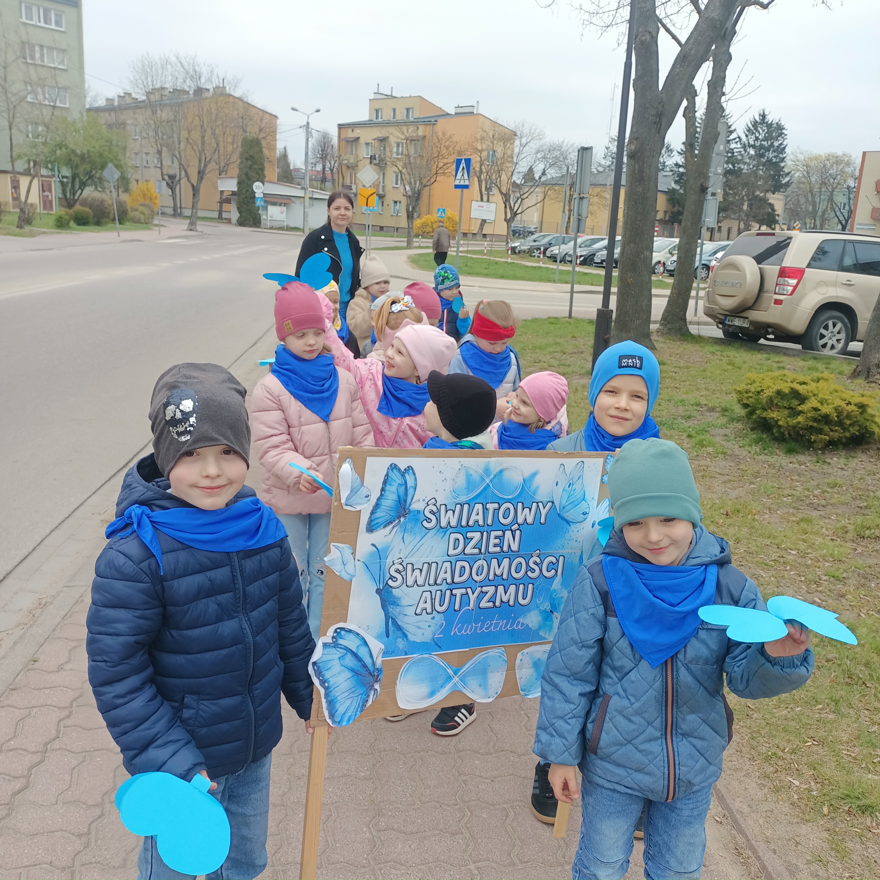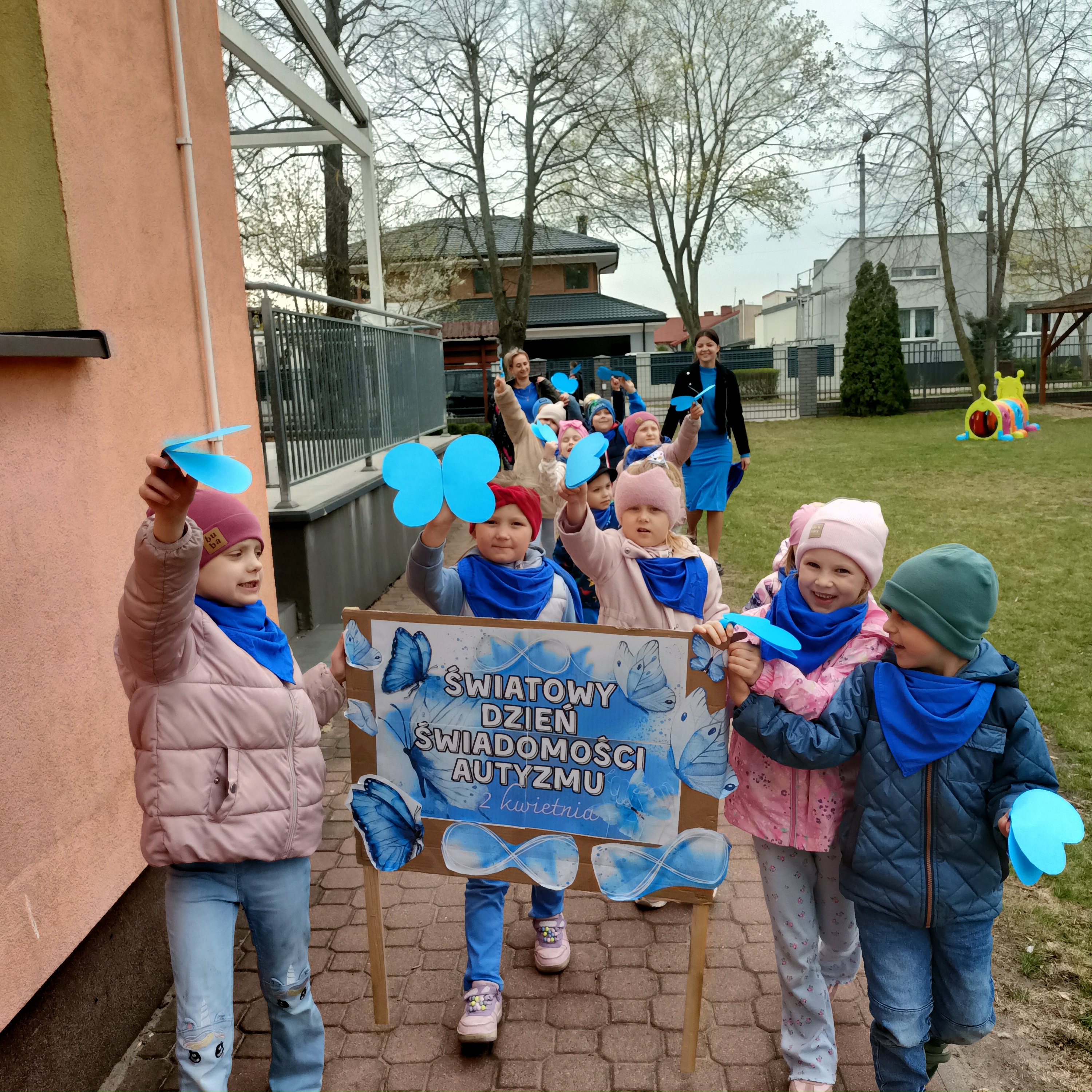 Odbył się również spacer z niebieskimi motylami – symbolem solidarności z osobami w spektrum autyzmu. Tego dnia ubraliśmy się na niebiesko, okazując w ten sposób wsparcie i jedność.