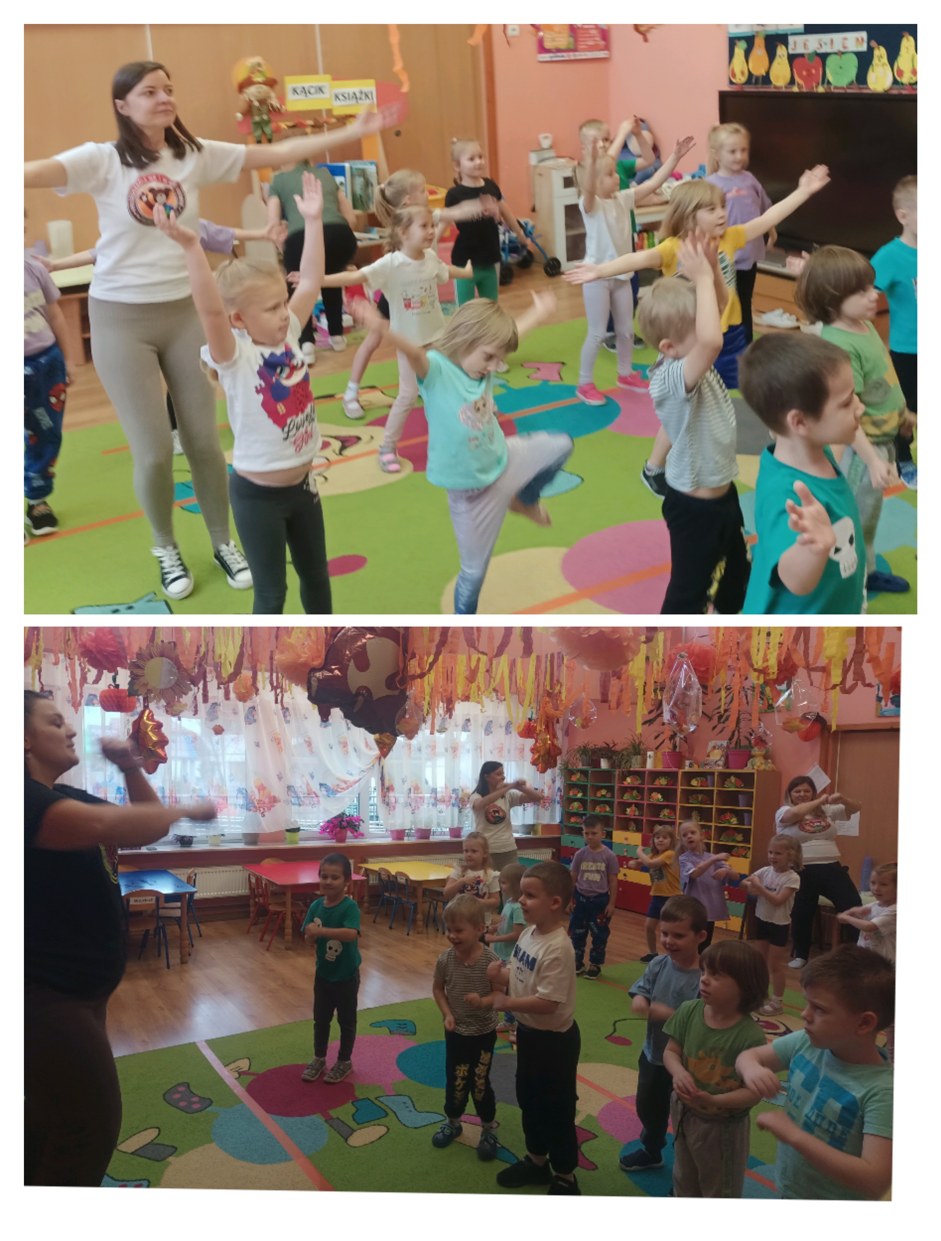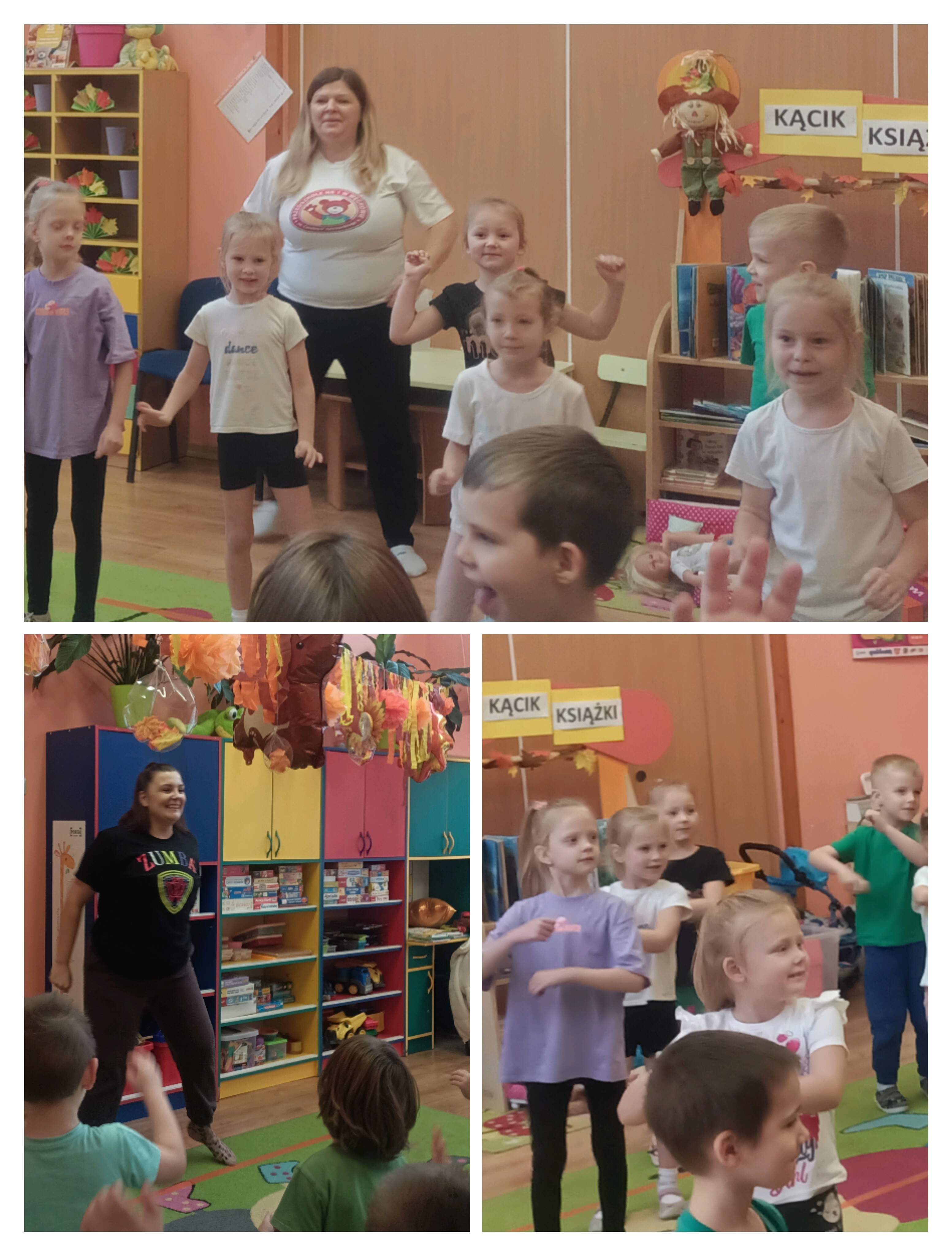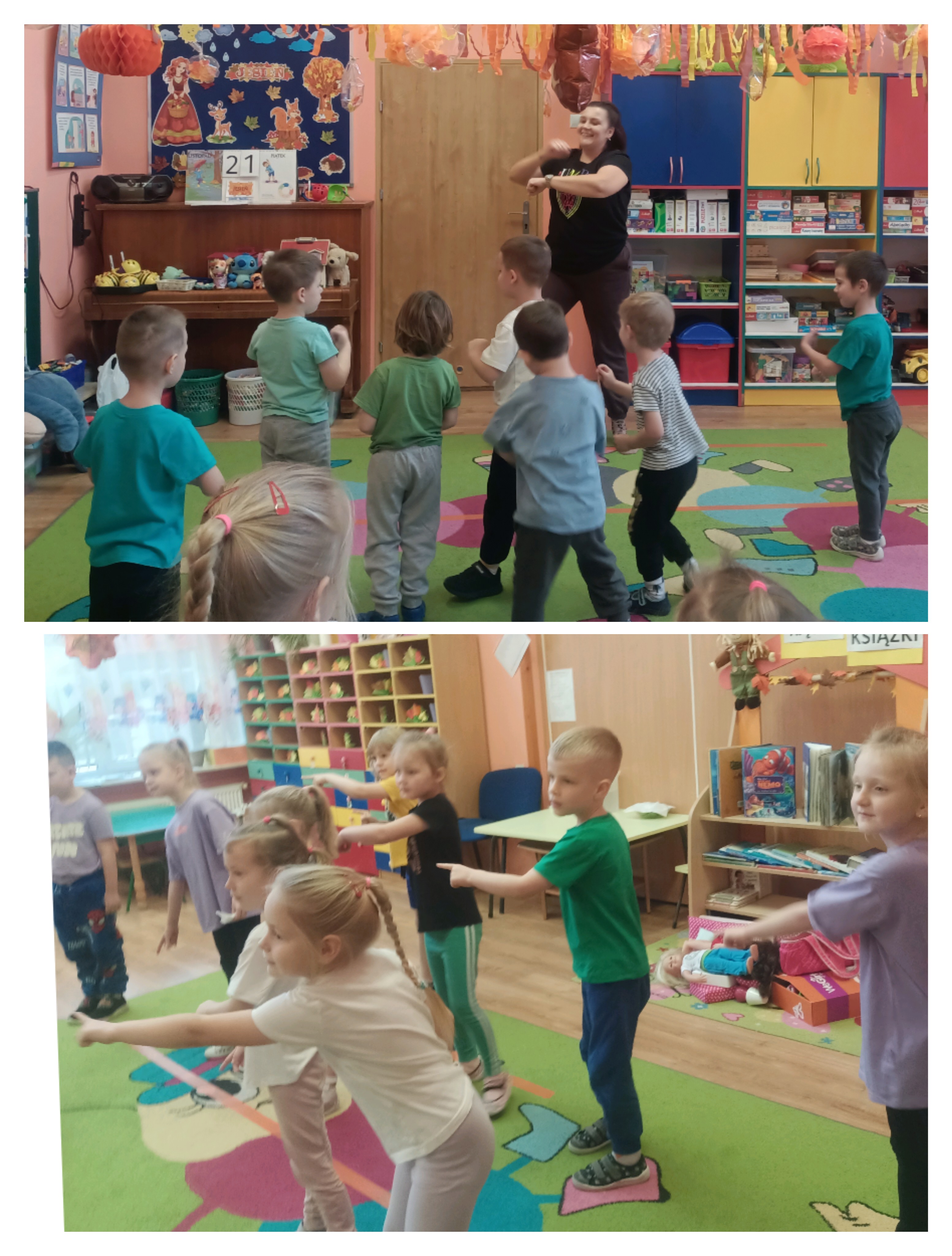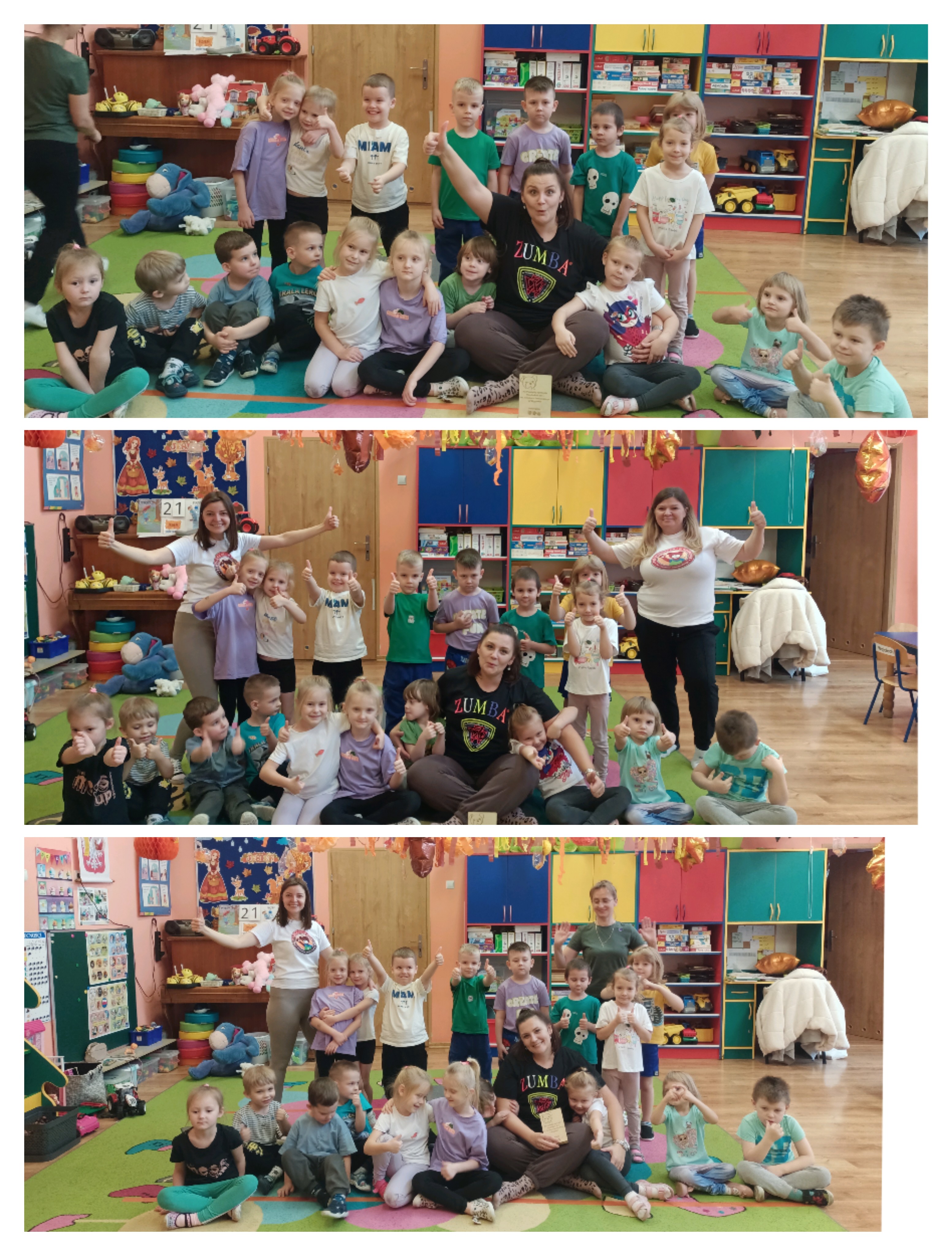 W piątek 21.11. odwiedziła nas mama naszej koleżanki Adelki, pani Martyna, która jest instruktorką zumby. Zumba to taneczna forma fitnessu łącząca elementy różnych stylów tanecznych, takich jak salsa, merengue czy reggaeton. Dzieci dowiedziały się, że zumba to nie tylko taniec, ale także świetna zabawa i sposób na aktywność fizyczną. Pani Martyna pokazała nam kilka podstawowych kroków oraz nauczyła dzieci kilku krótkich, wesołych tańców. Zajęcia były pełne muzyki, ruchu i pozytywnej energii.