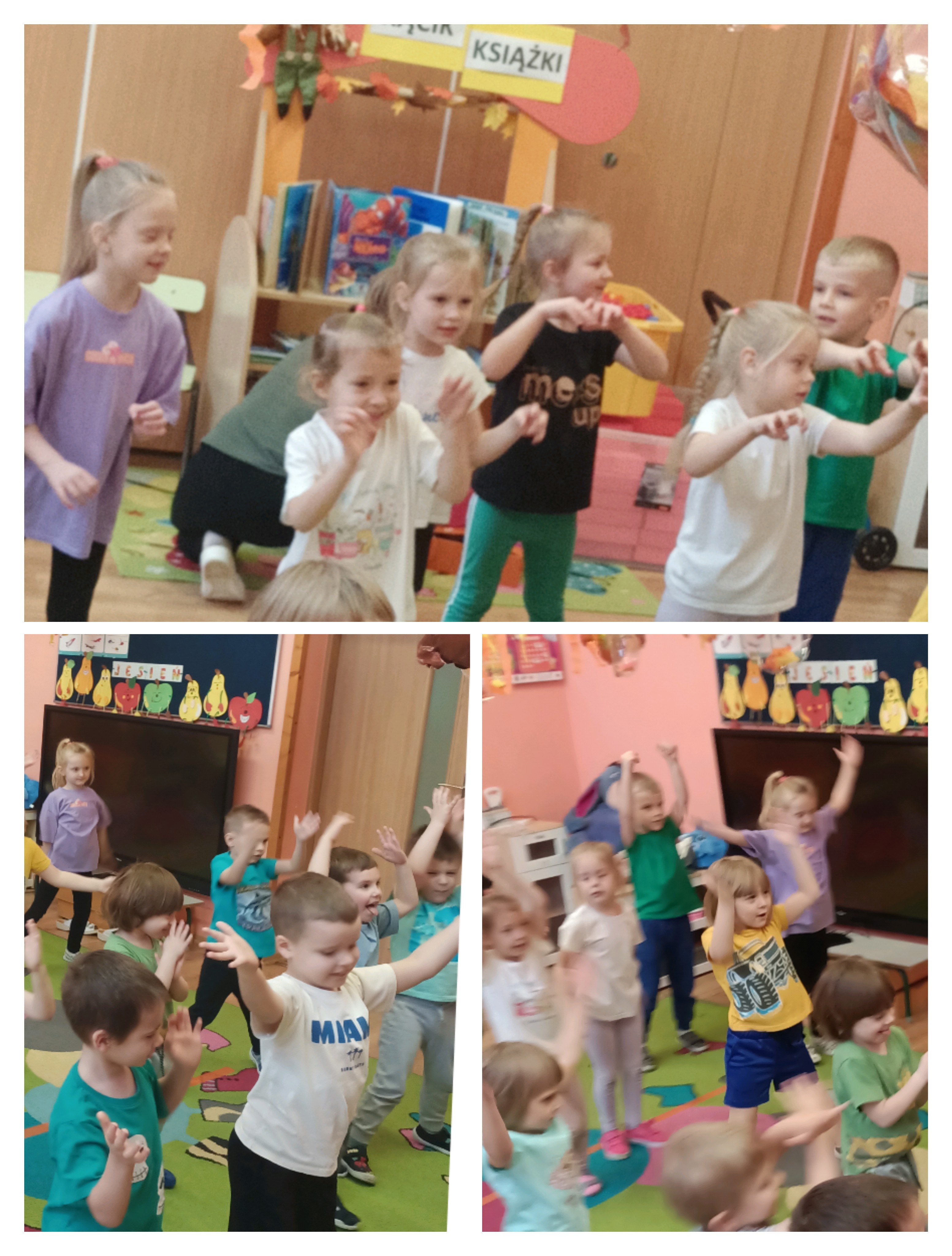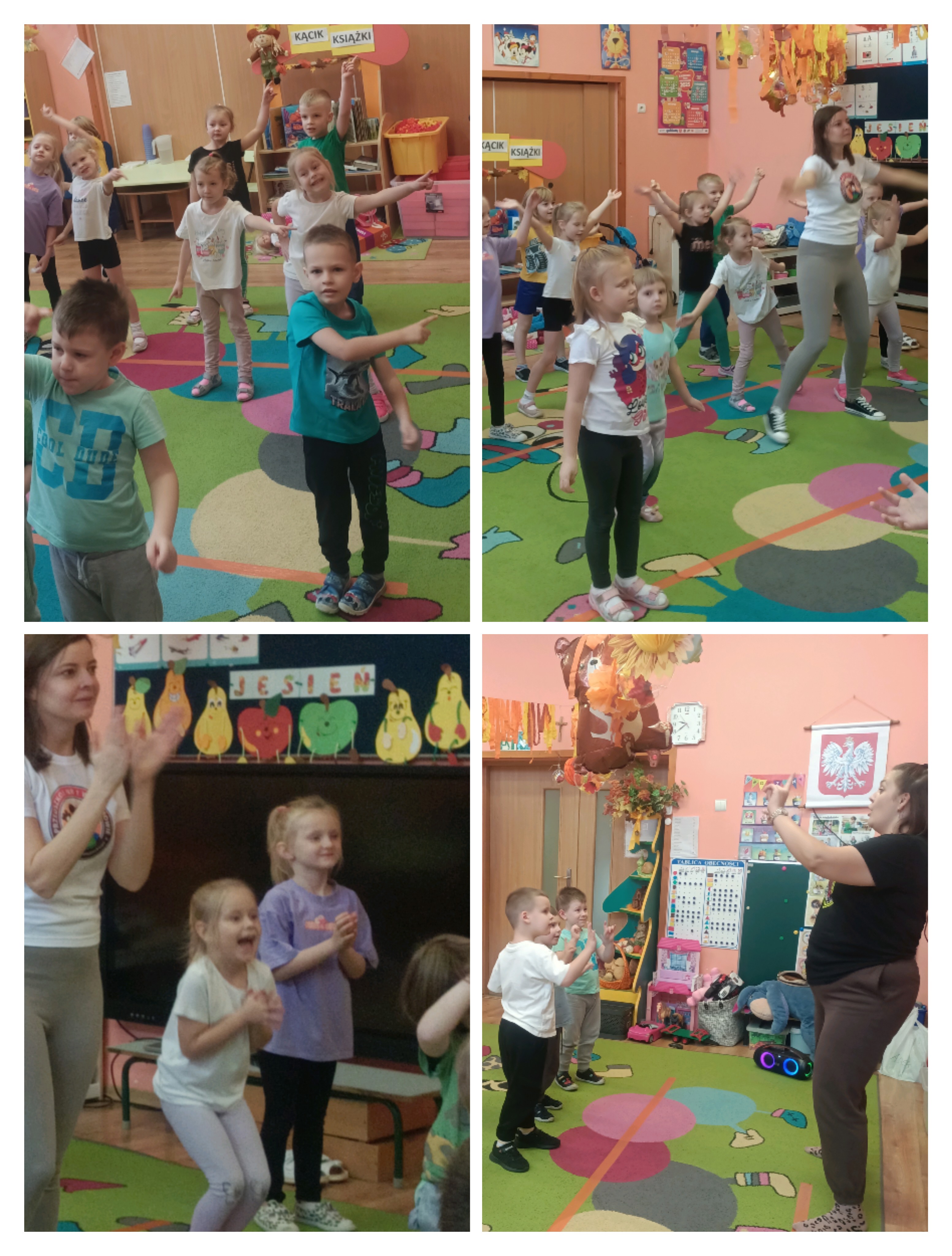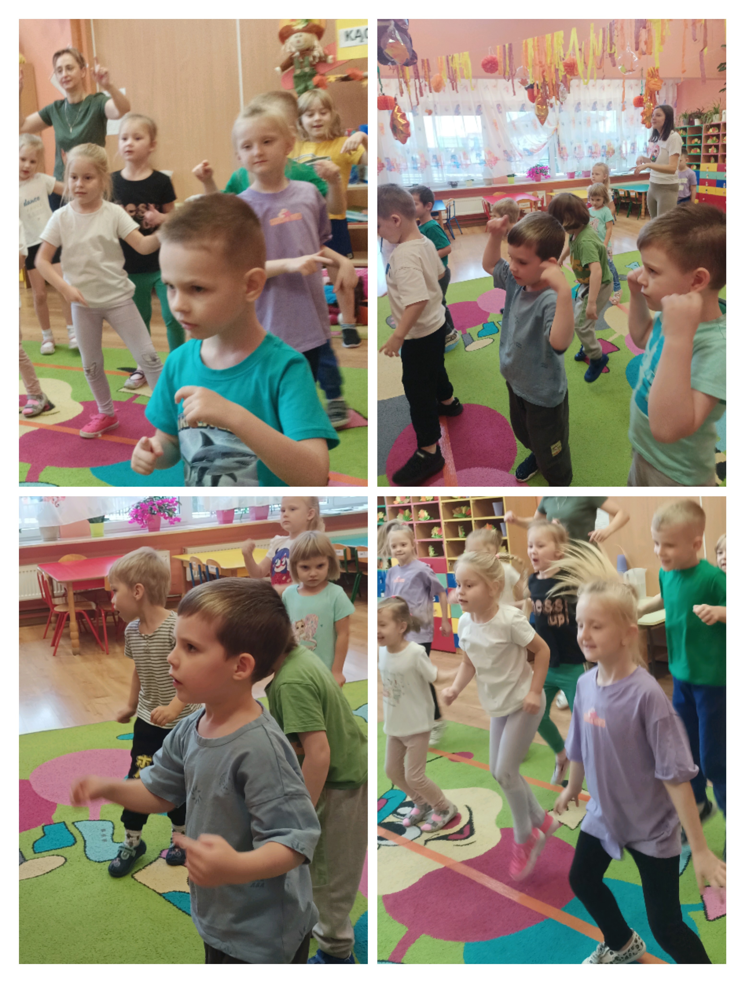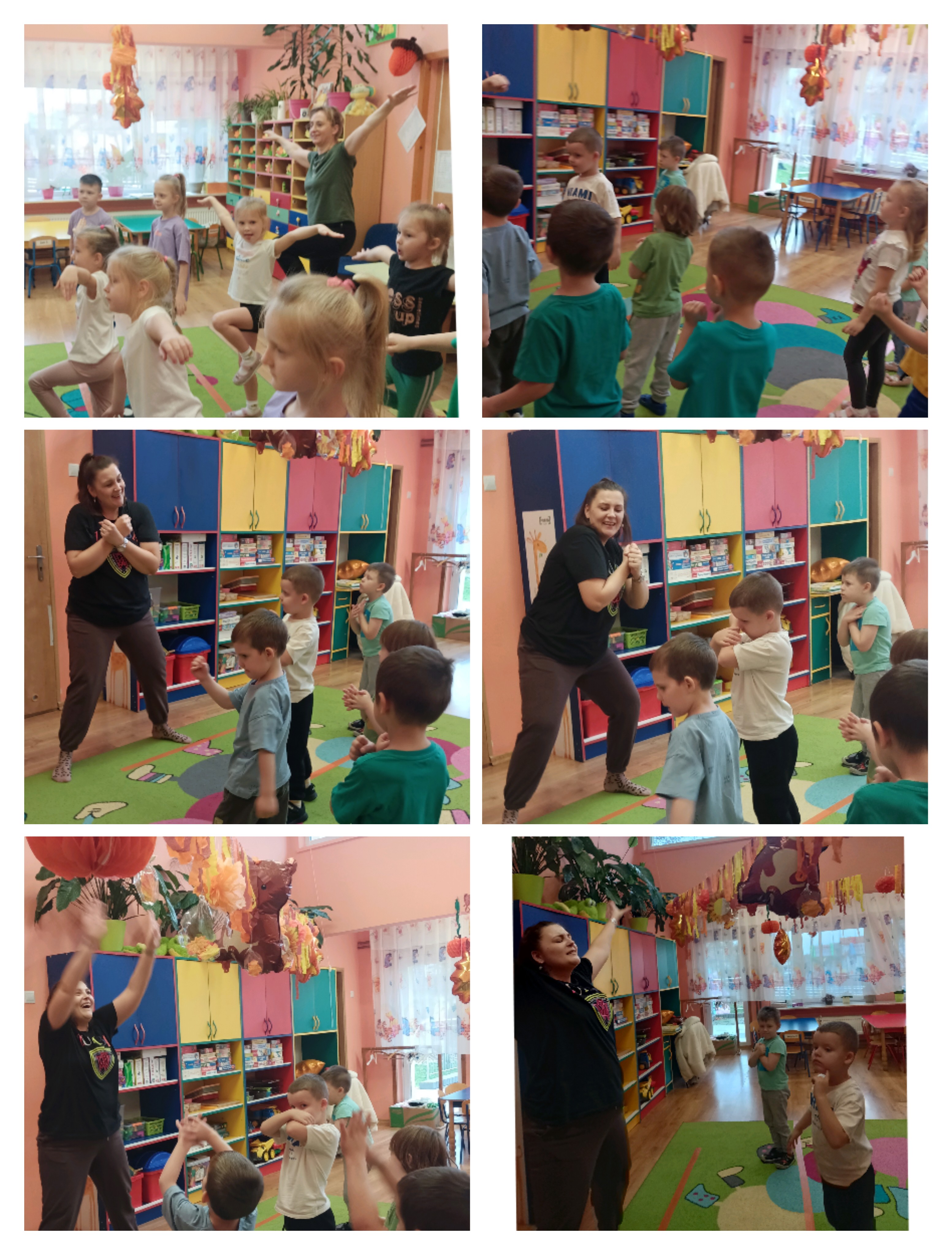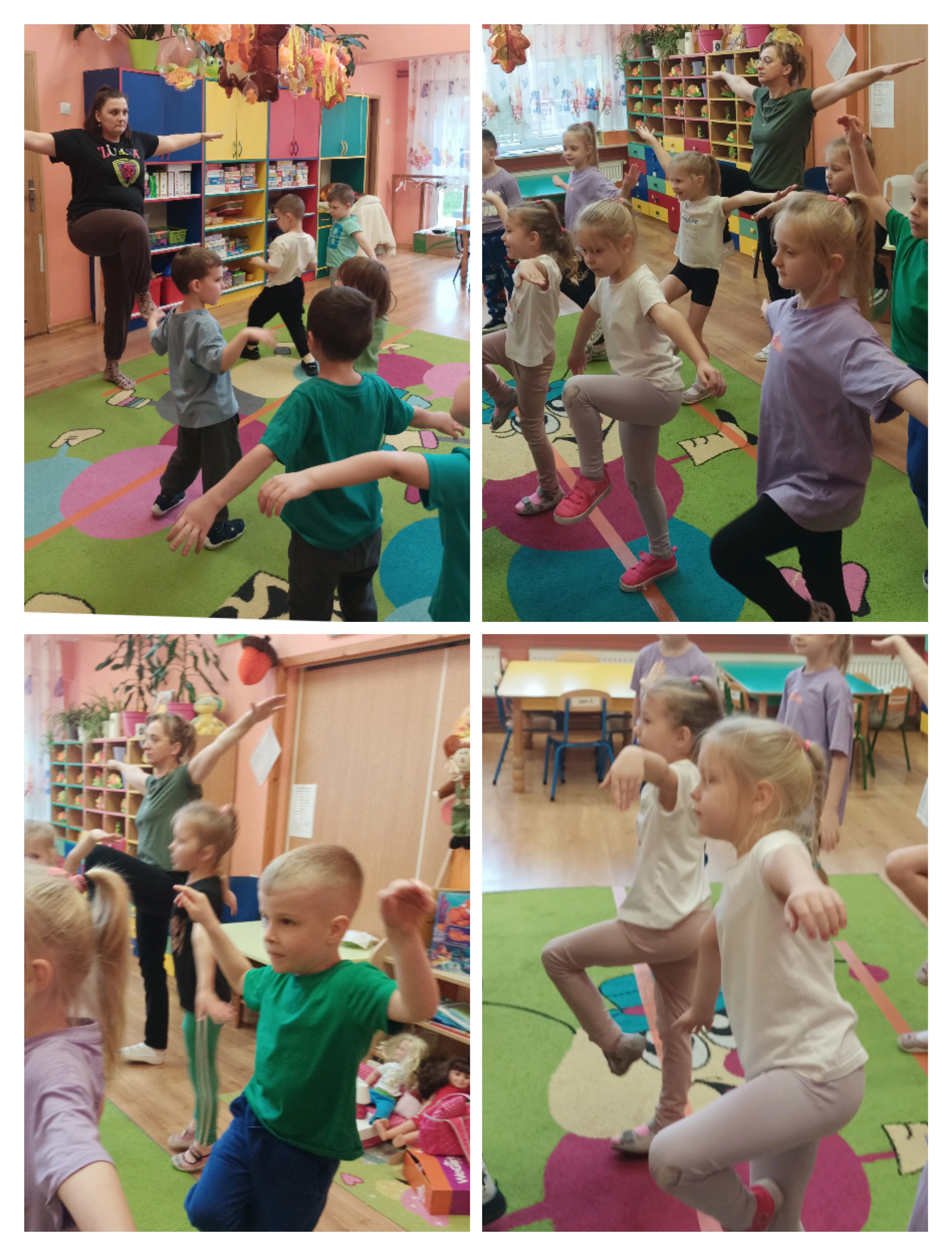 W piątek 21.11. odwiedziła nas mama naszej koleżanki Adelki, pani Martyna, która jest instruktorką zumby. Zumba to taneczna forma fitnessu łącząca elementy różnych stylów tanecznych, takich jak salsa, merengue czy reggaeton. Dzieci dowiedziały się, że zumba to nie tylko taniec, ale także świetna zabawa i sposób na aktywność fizyczną. Pani Martyna pokazała nam kilka podstawowych kroków oraz nauczyła dzieci kilku krótkich, wesołych tańców. Zajęcia były pełne muzyki, ruchu i pozytywnej energii.
