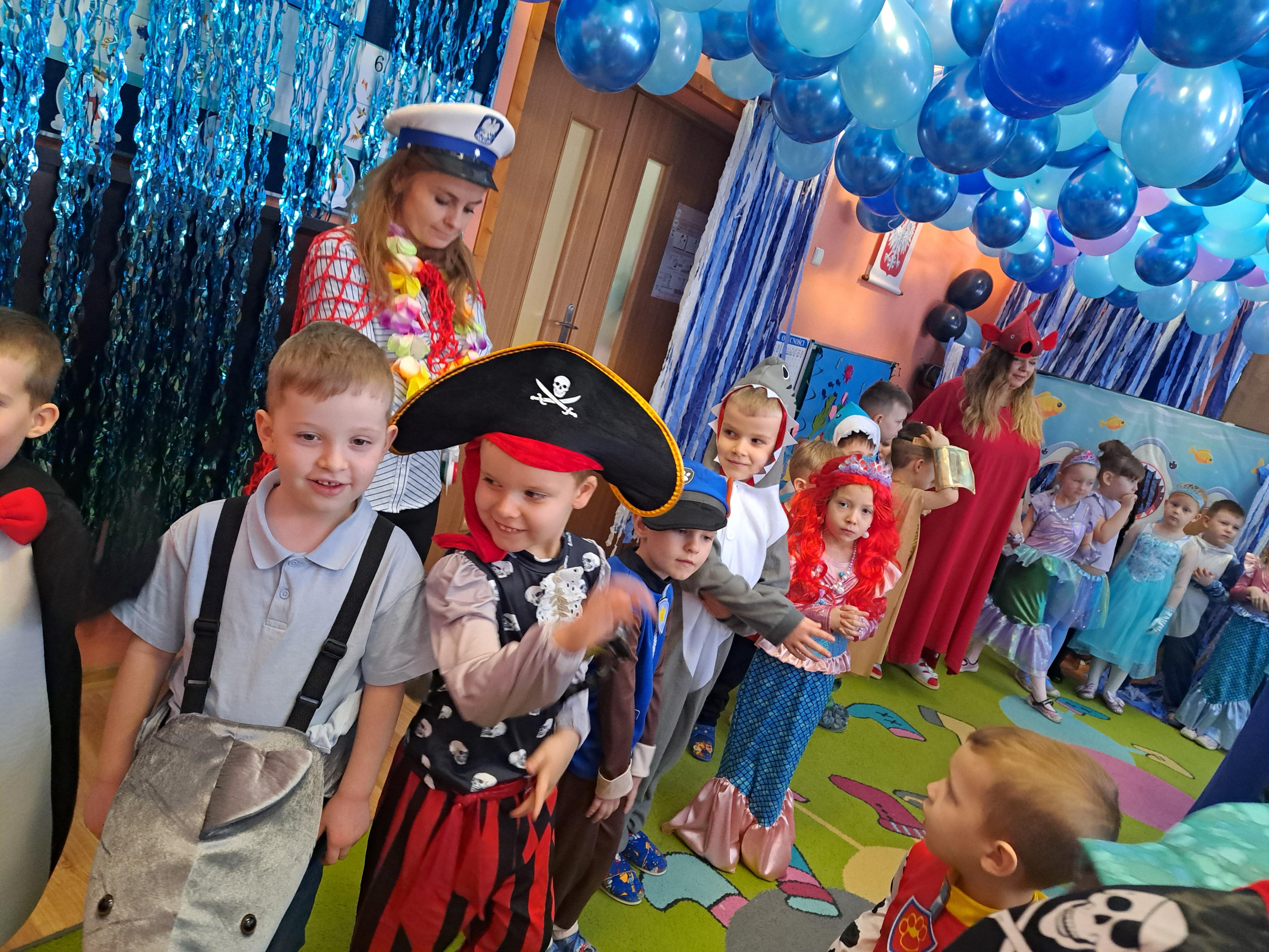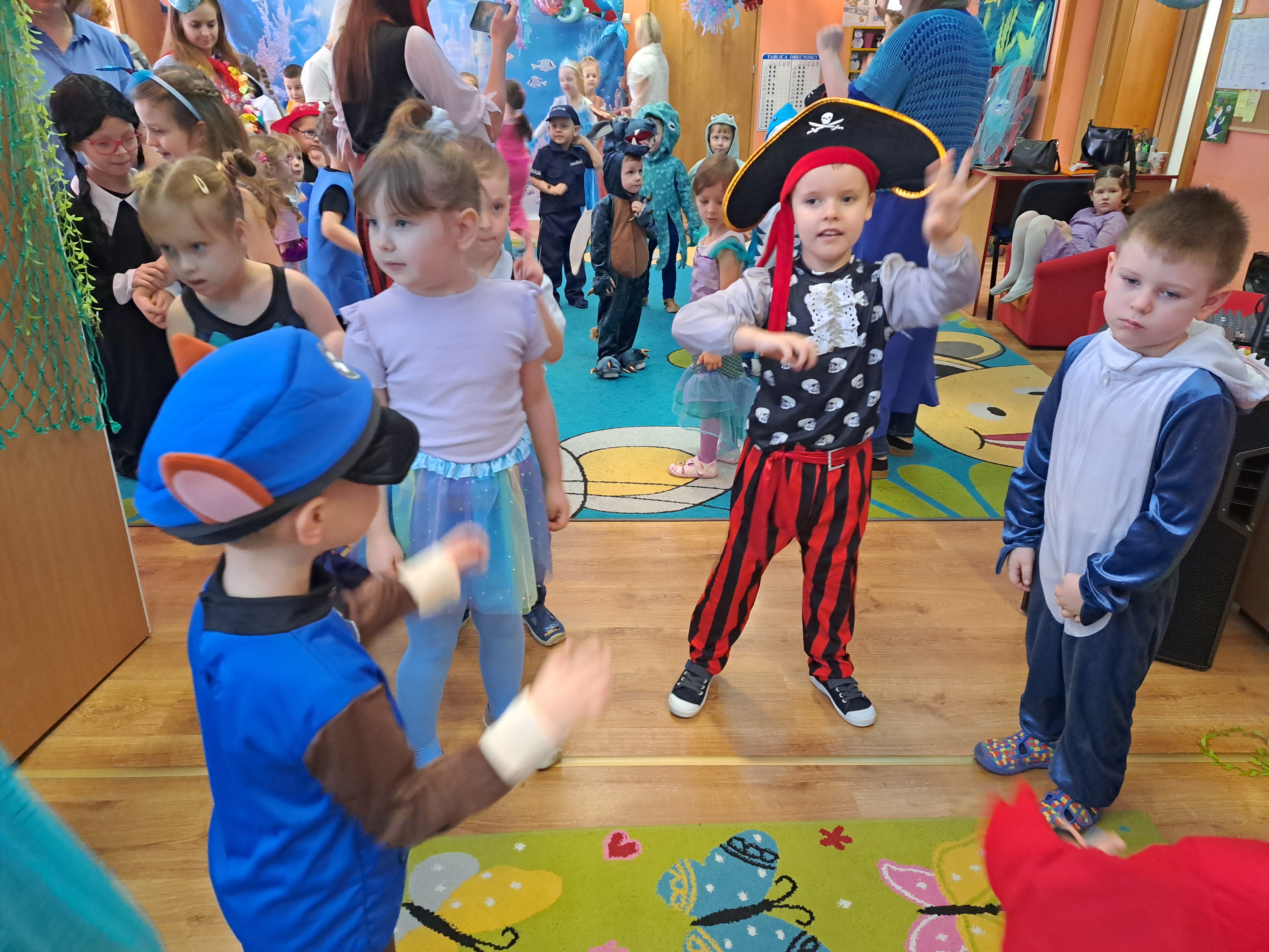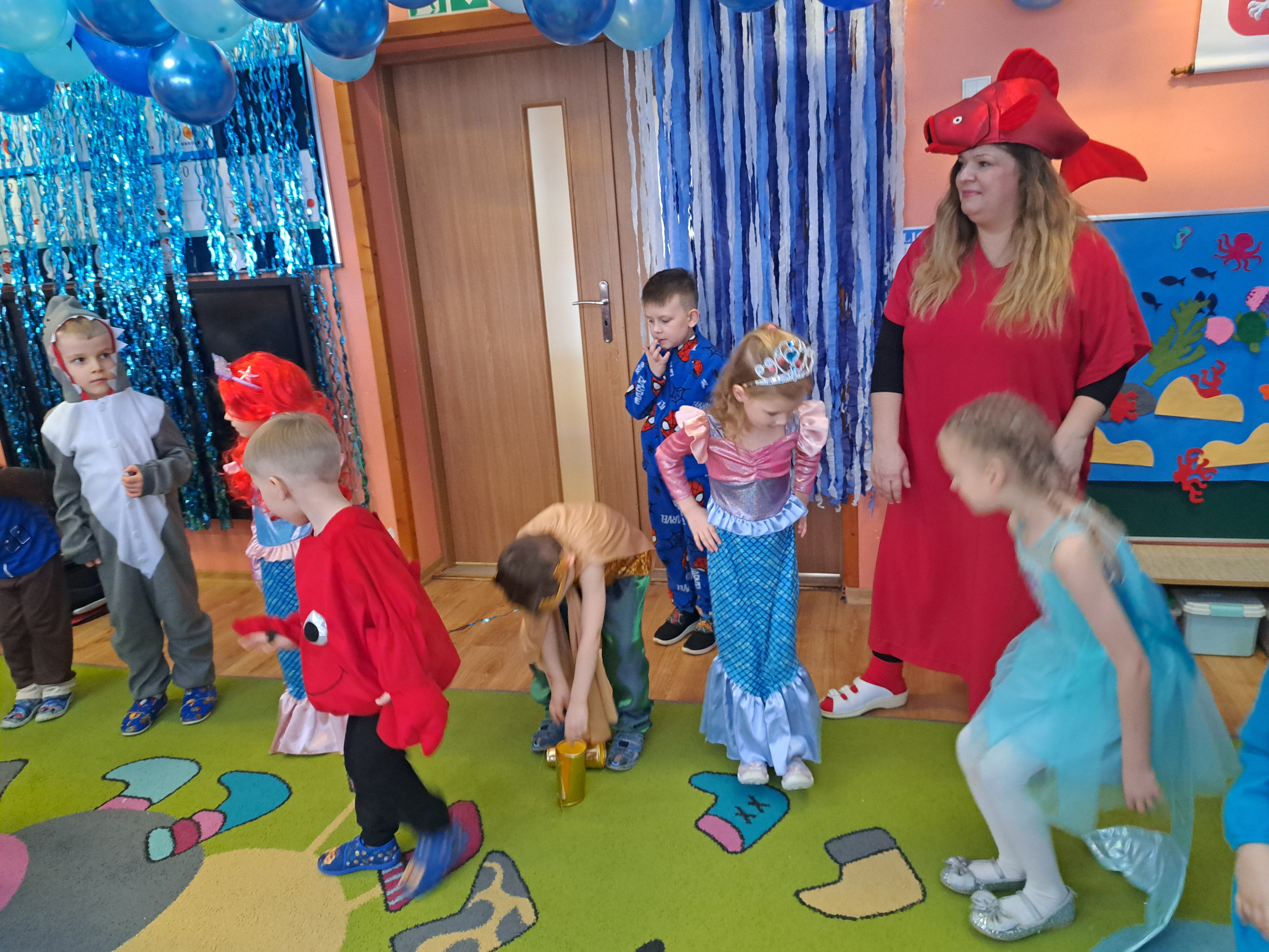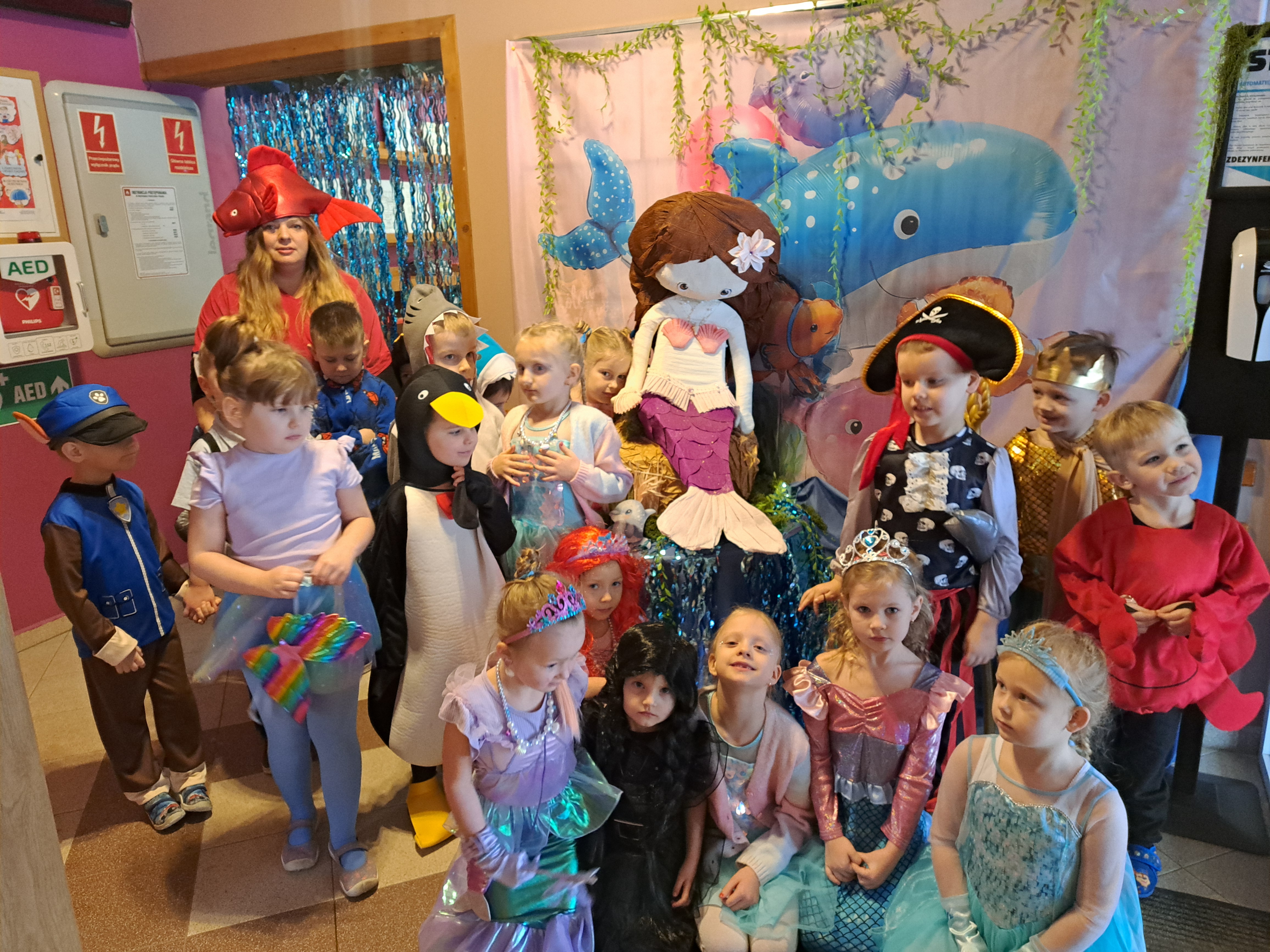 W dniu dzisiejszym /17.02.2026/ w naszym przedszkolu odbył się wspaniały Bal Karnawałowy W PODWODNEJ KRAINIE. Pięknie udekorowane sale przeniosły dzieci w prawdziwe podwodne królestwo, pełne tajemnic i morskich przygód. Wyjątkowe kostiumy naszych przedszkolaków dodały blasku tej niezwykłej uroczystości. Wśród uczestników można było spotkać urocze syrenki, barwne roztańczone rybki, rekiny,dzielnych piratów i mnóstwo innych tajemniczych morskich stworzeń.