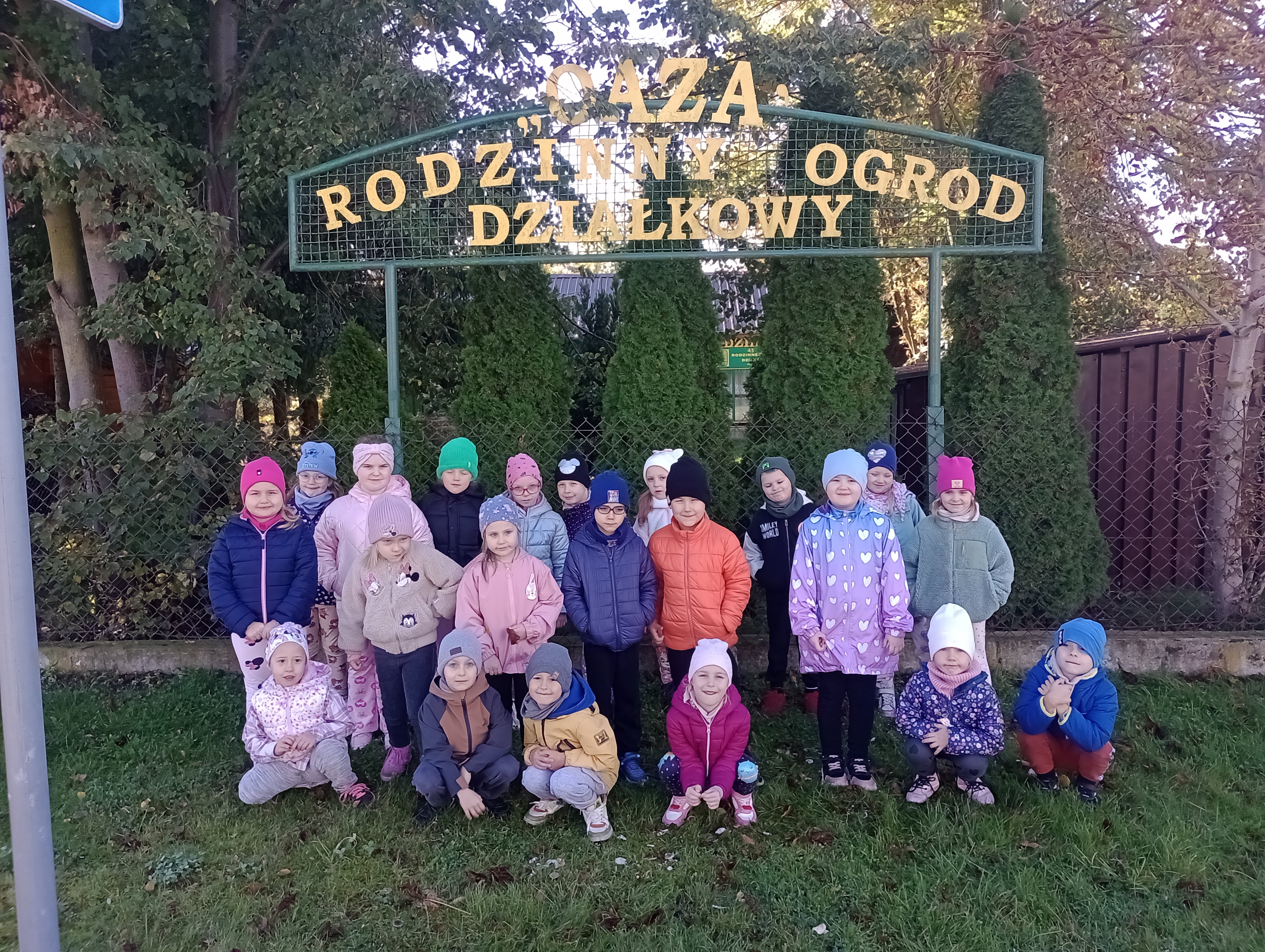 Dnia 13 października 2025 r. ( poniedziałek ), ZAJĄCZKI wybrały się na wycieczkę do RODZINNEGO OGRODU DZIAŁKOWEGO " OAZA". Dzieci obserwowały co znajduje się na terenie ogródków działowych. ZAJĄCZKI miały możliwość pobytu na działce Pani Halinki. ZAJĄCZKI zobaczyły tam drzewa owocowe gruszy i jabłoni, krzaki malin, winogrona zielone i fioletowe, kwiaty i warzywa.