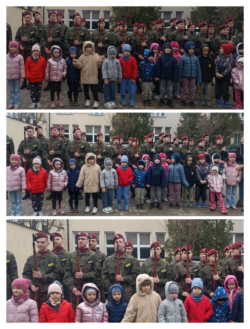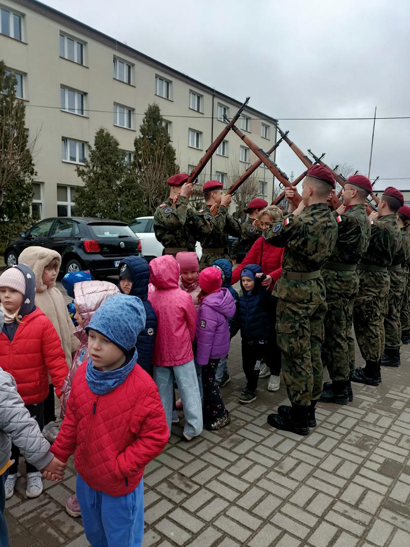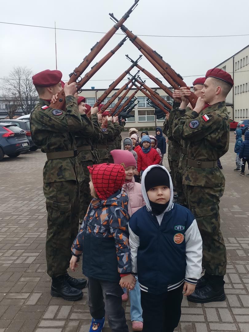 Mogliśmy również poznać uczniów klasy o profilu mundurowym – młodzież, która wiąże swoją przyszłość z wojskiem. Z dużym zaangażowaniem i cierpliwością odpowiadali na wszystkie pytania dzieci, dzieląc się swoją wiedzą i pasją. Dzięki temu już wiemy, czym jest musztra i jak wygląda szabla.
