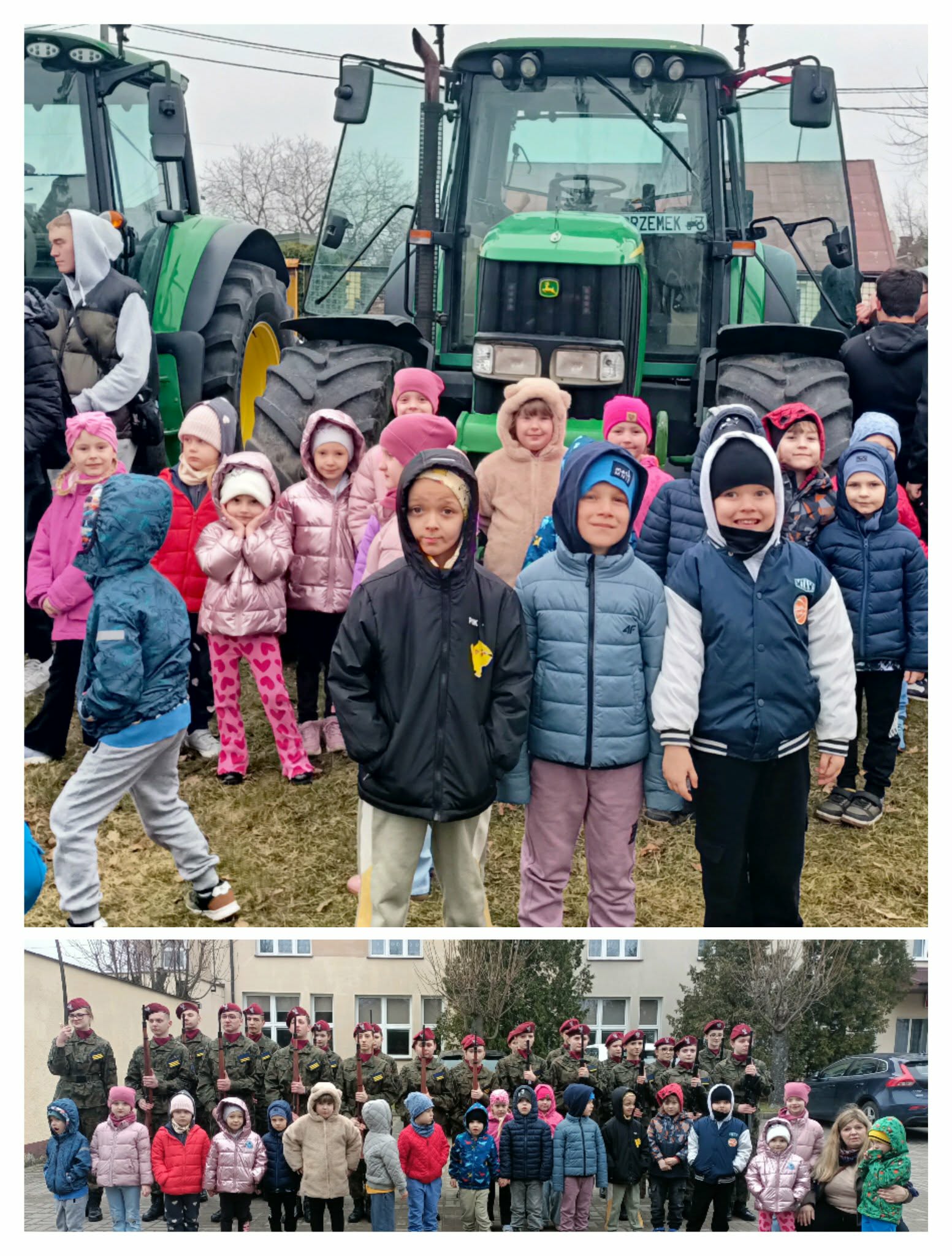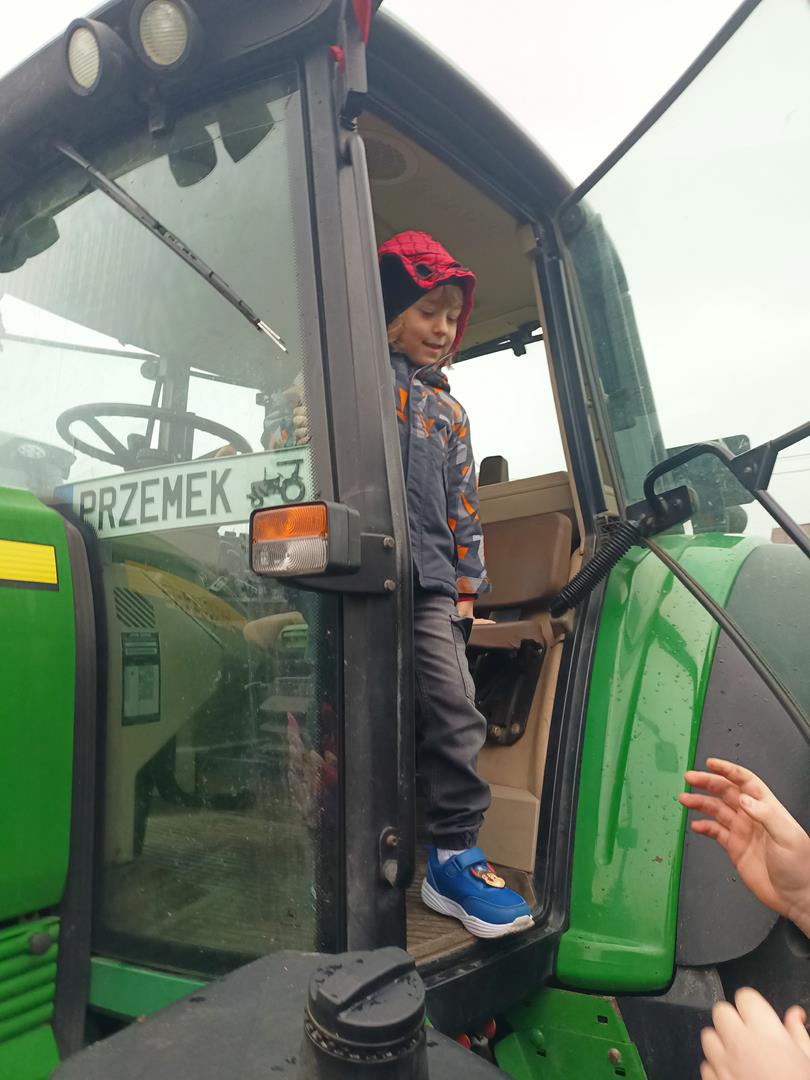 Dnia 20.03.2026 r. dzieci miały wyjątkową okazję zobaczyć z bliska maszyny rolnicze, a w szczególności ciągniki, prezentowane przez młodzież z Zespołu Szkół Ponadpodstawowych im. Jana Kochanowskiego. Chętne dzieci mogły również wejść do maszyn i zobaczyć je od środka, co było dla nich ogromnym przeżyciem!
