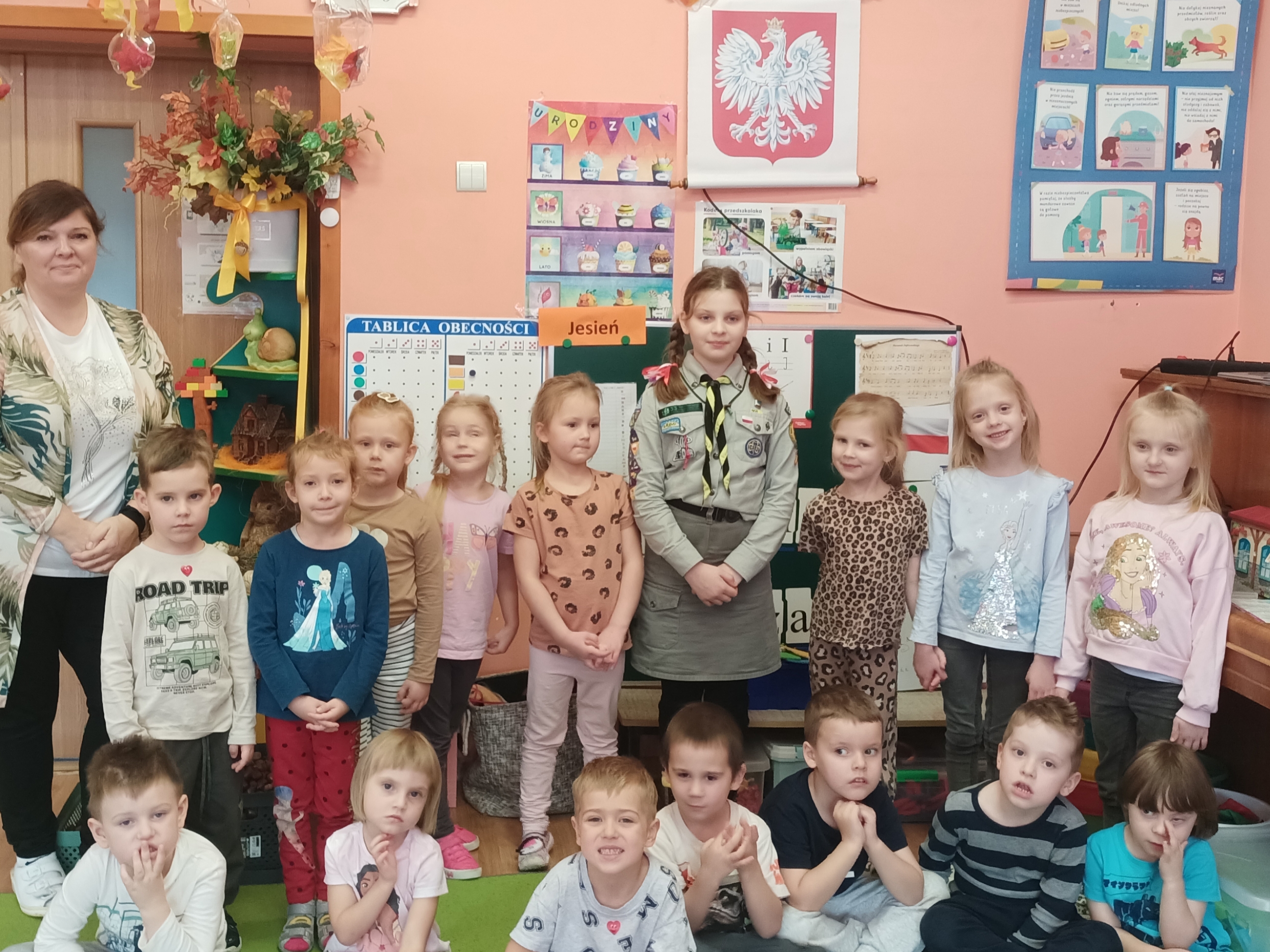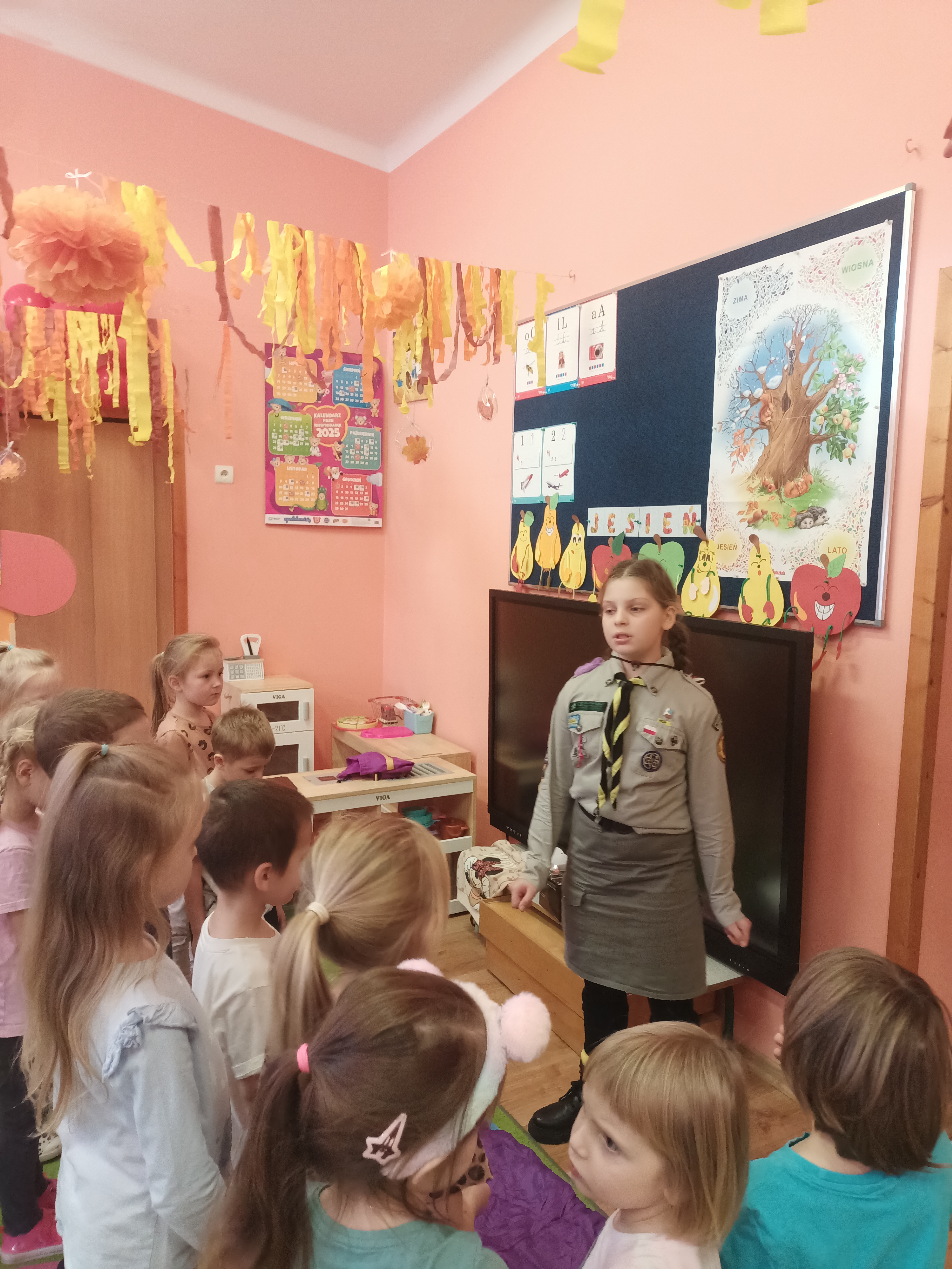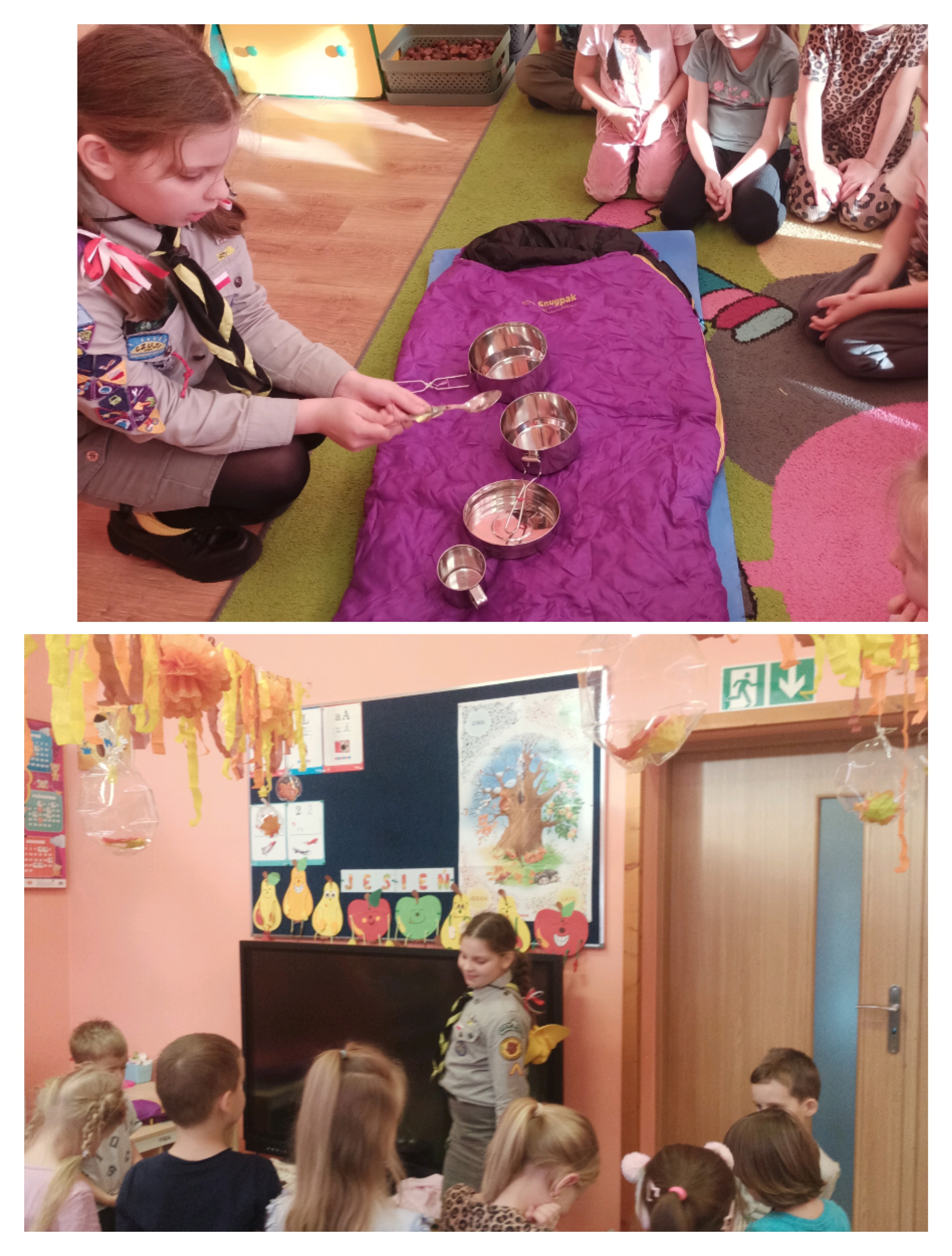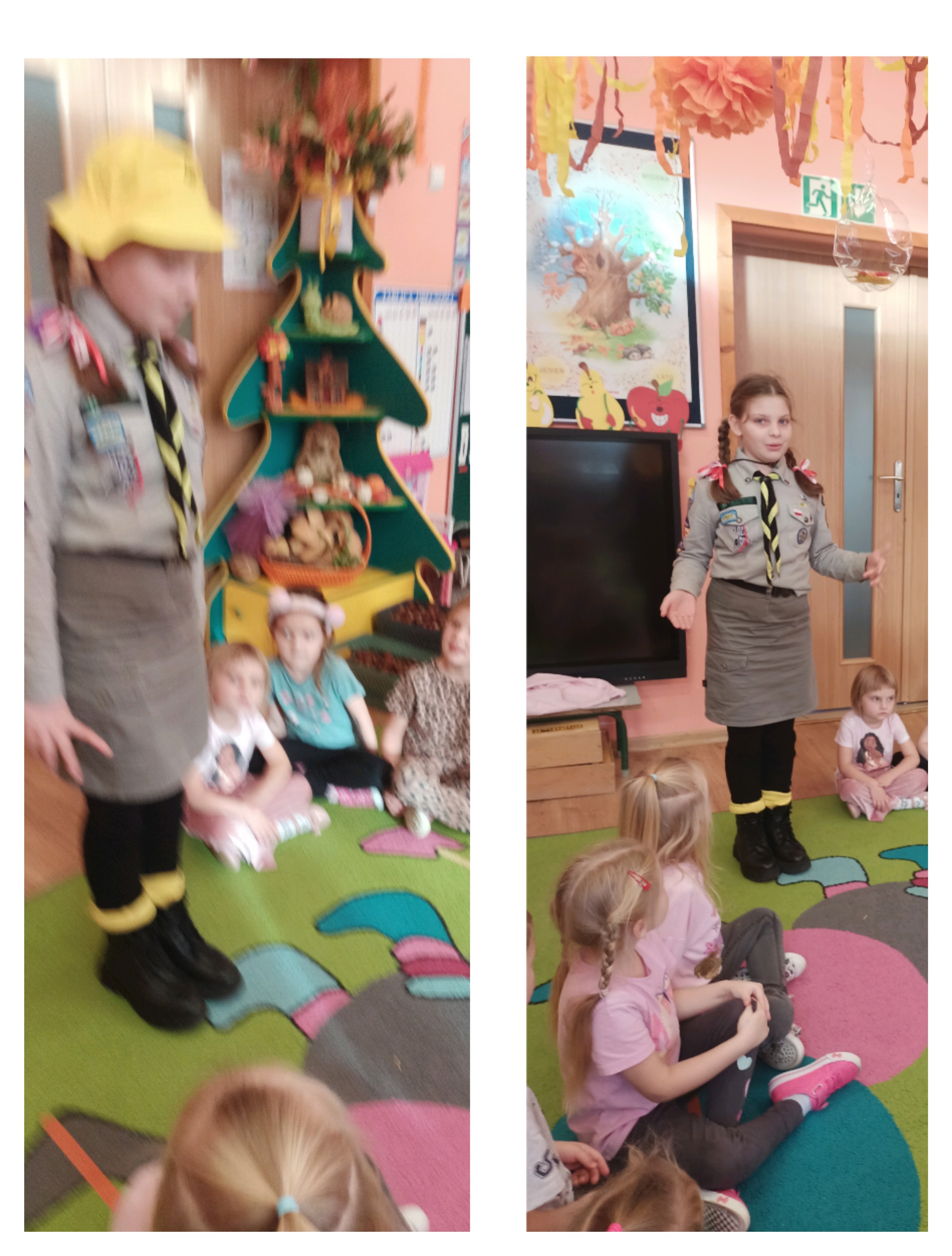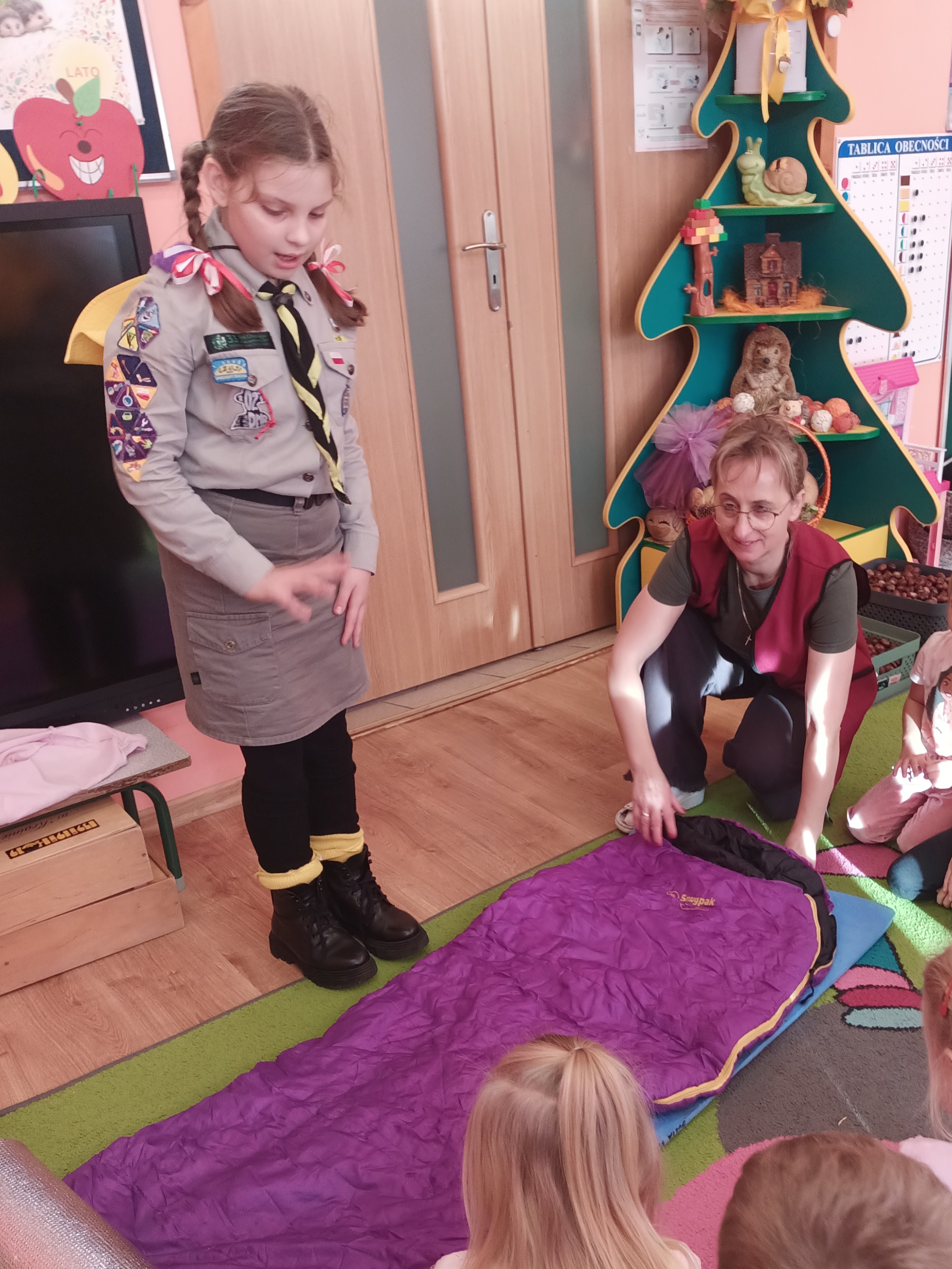 W ramach realizacji tematu związanego z patriotyzmem opowiedziała nam o działalności zuchów i harcerzy — o tym, czym się zajmują, jak wygląda ich mundur oraz jak spędzają czas podczas zbiórek i różnych wypraw.