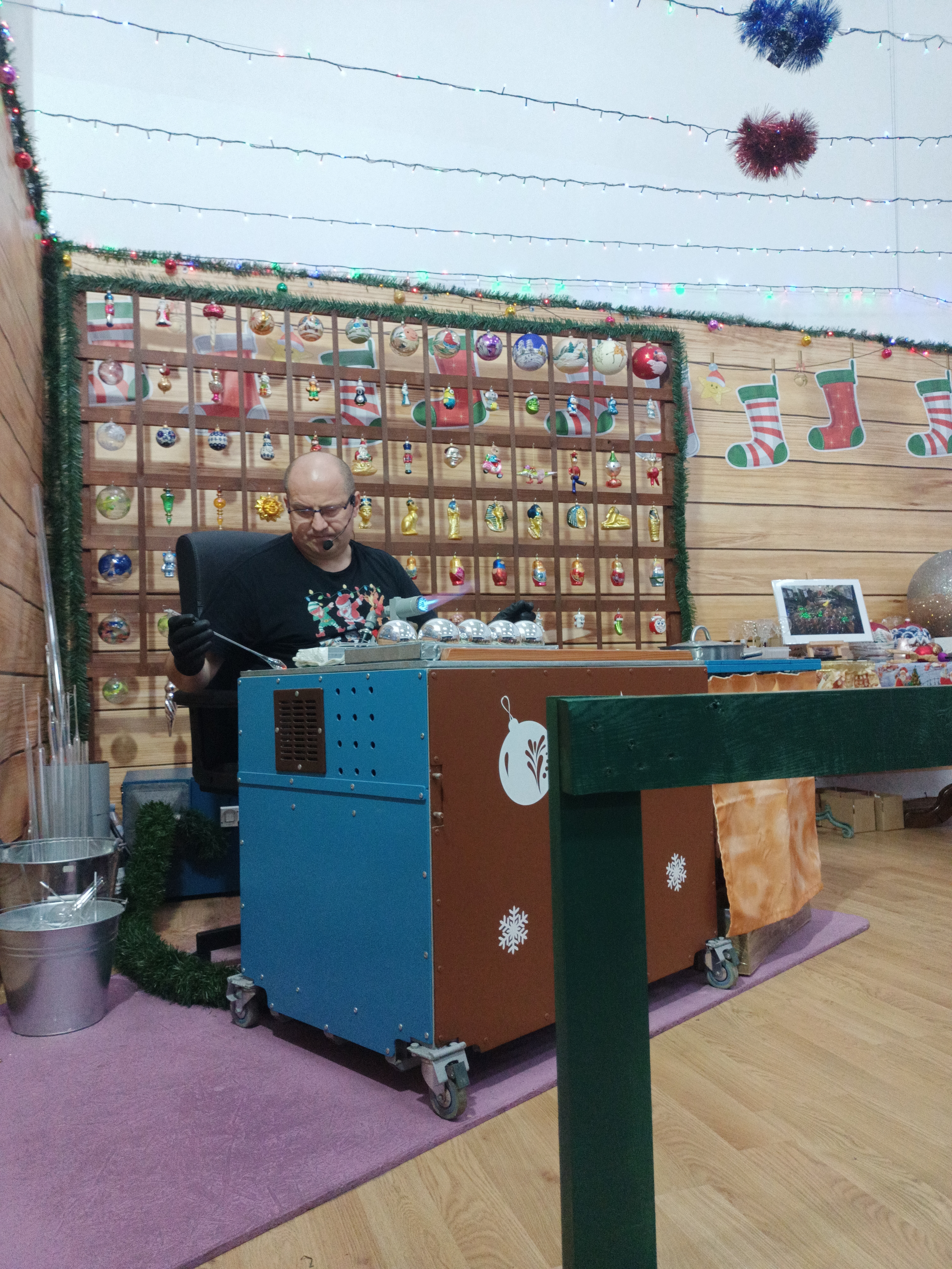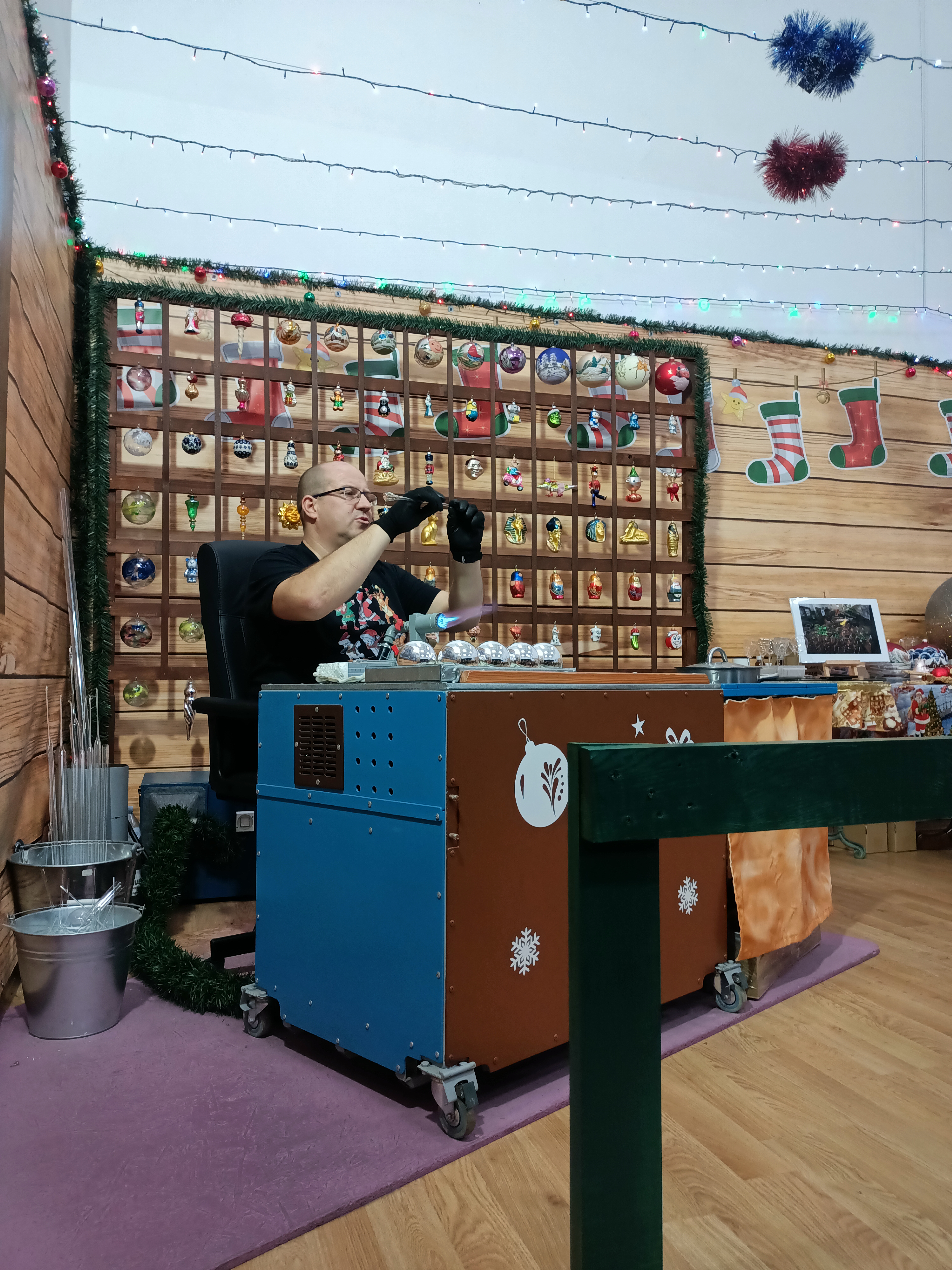 Dzieci obejrzały również pokaz powstawania szklanych ozdób choinkowych. Mogły zobaczyć, jak dmucha się szkło, formuje bombki oraz jak wygląda ich końcowe zdobienie.
