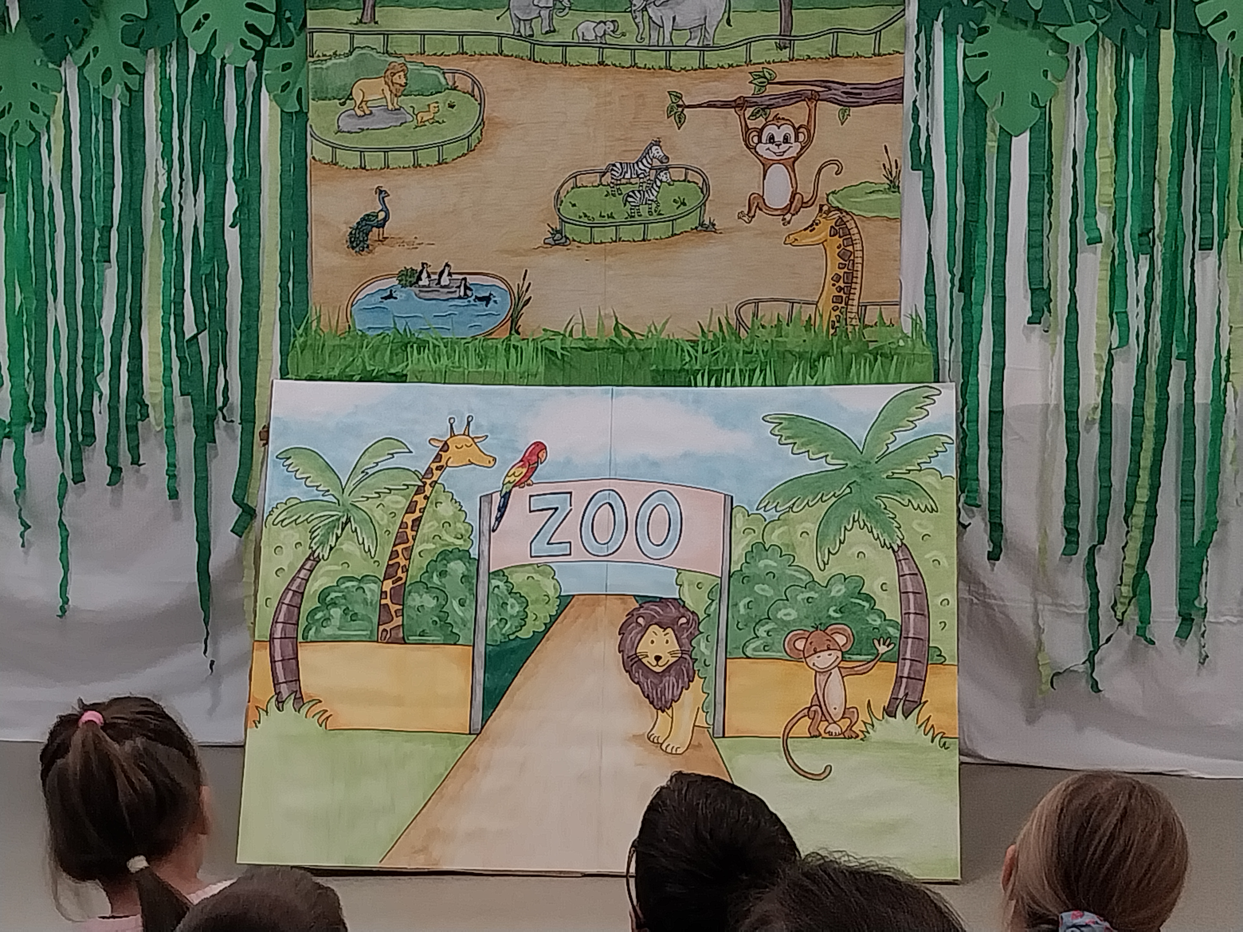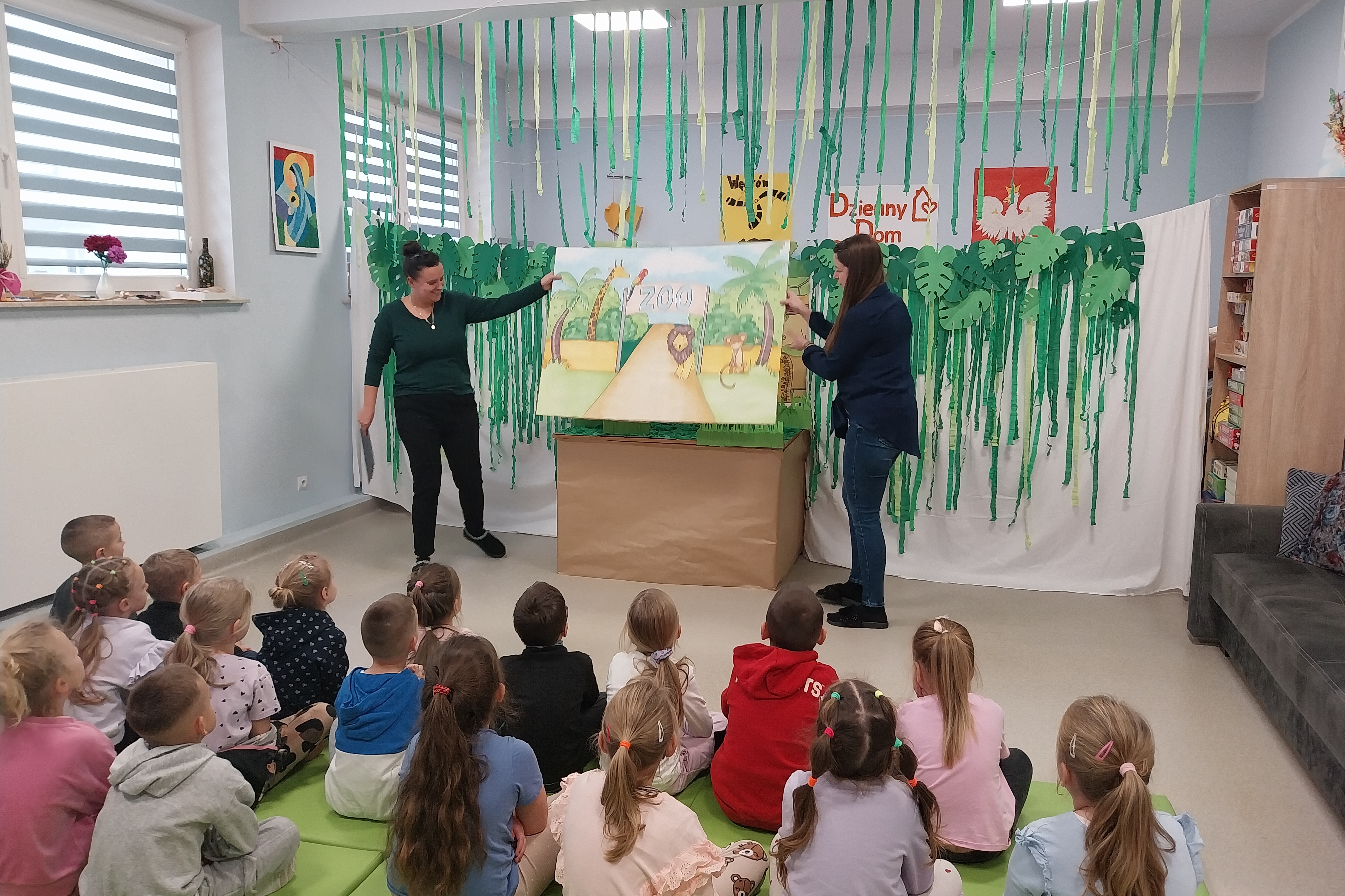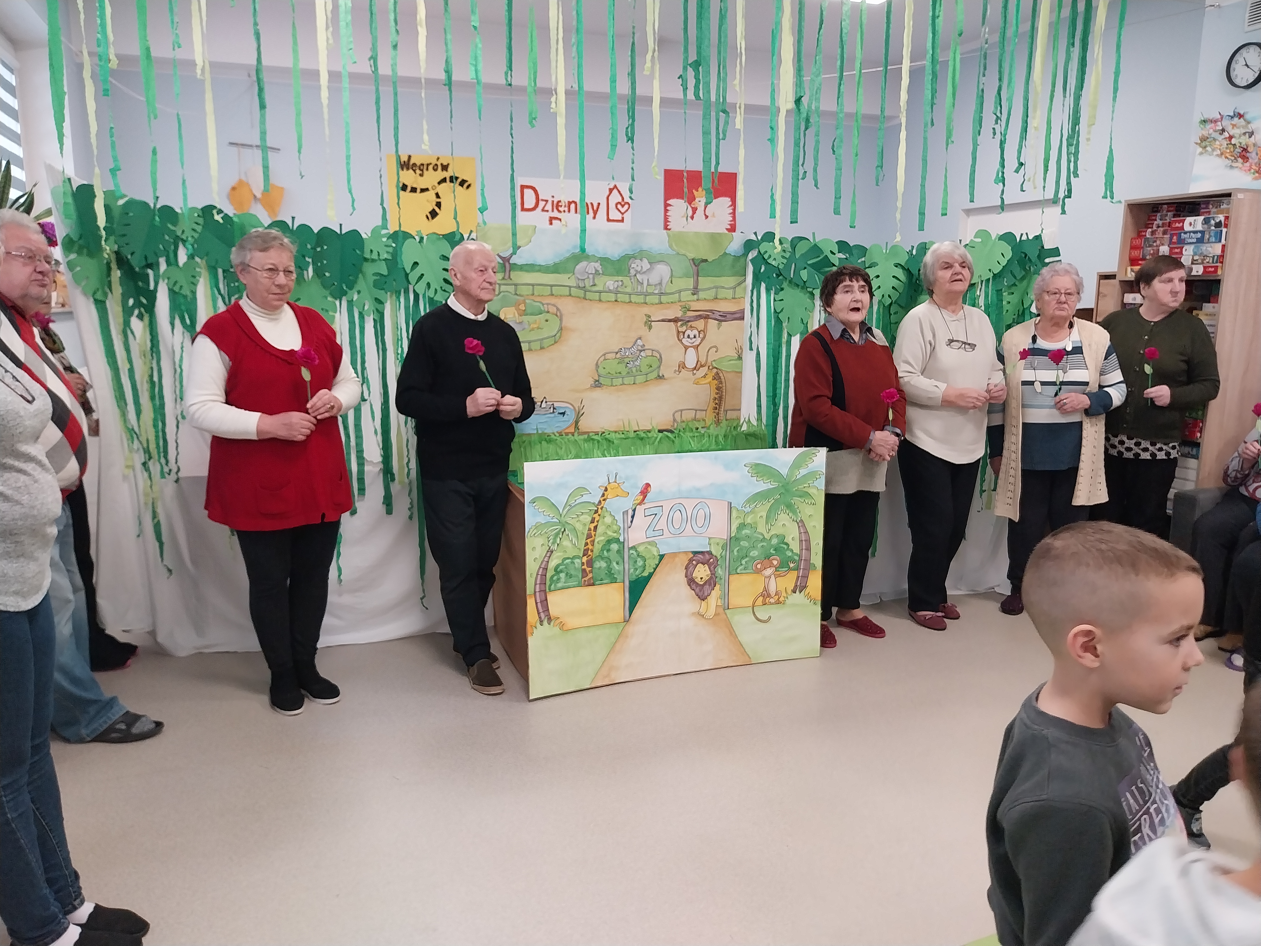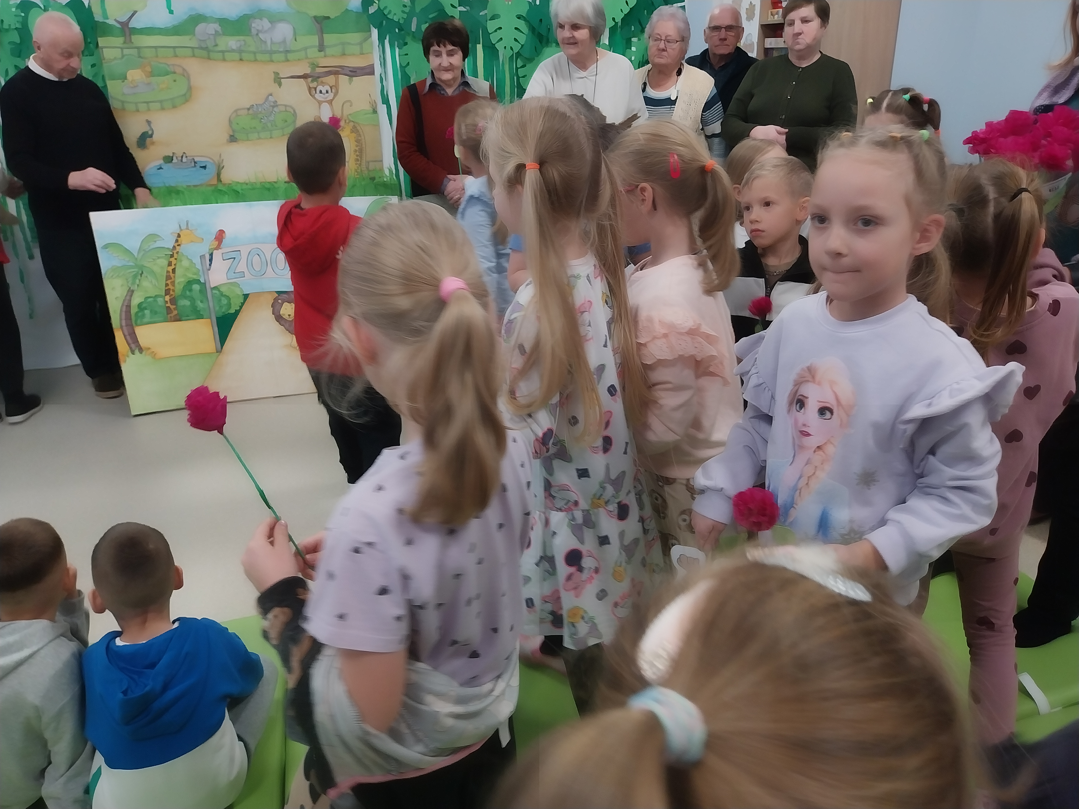 Dnia 24.11.2025 r. spacerkiem udaliśmy się do Dziennego Domu Senior + . Była to kolejna nasza wizyta . Wcześniej to my zrobiliśmy niespodziankę, prezentując koncert jesienny z okazji Dnia Osób Starszych od nas. Tym razem dostaliśmy zaproszenie na przedstawienie teatralne pt.: "Wycieczka do ZOO" . Artyści spisali się na medal! Dzieci z uwagą obejrzały spektakl i obdarowały występujących gromkimi brawami. Z wielkim zaangażowaniem uczestniczyły w zabawie "Zgaduj- zgadula" oraz w przygotowanych atrakcjach . Było to bardzo miłe spotkanie. Wspólnie spędzony czas, integracja oraz wzmocnienie więzi międzypokoleniowych. Bardzo dziękujemy!