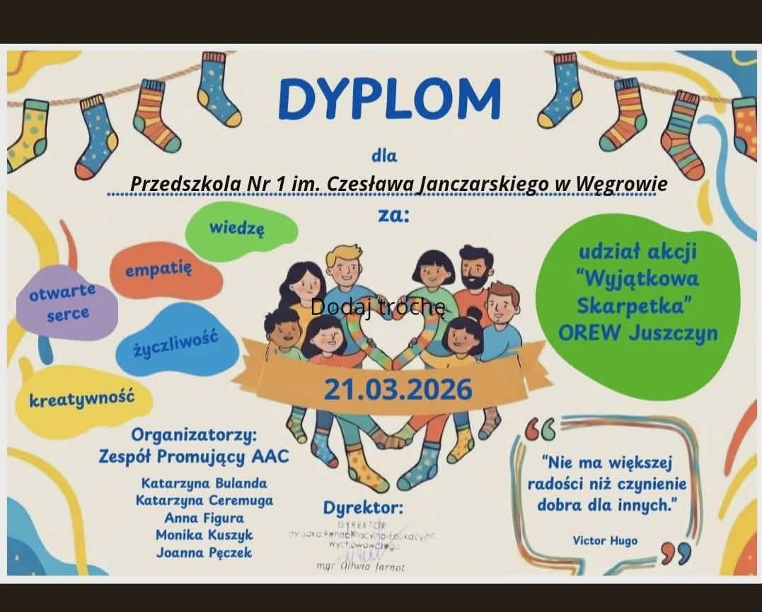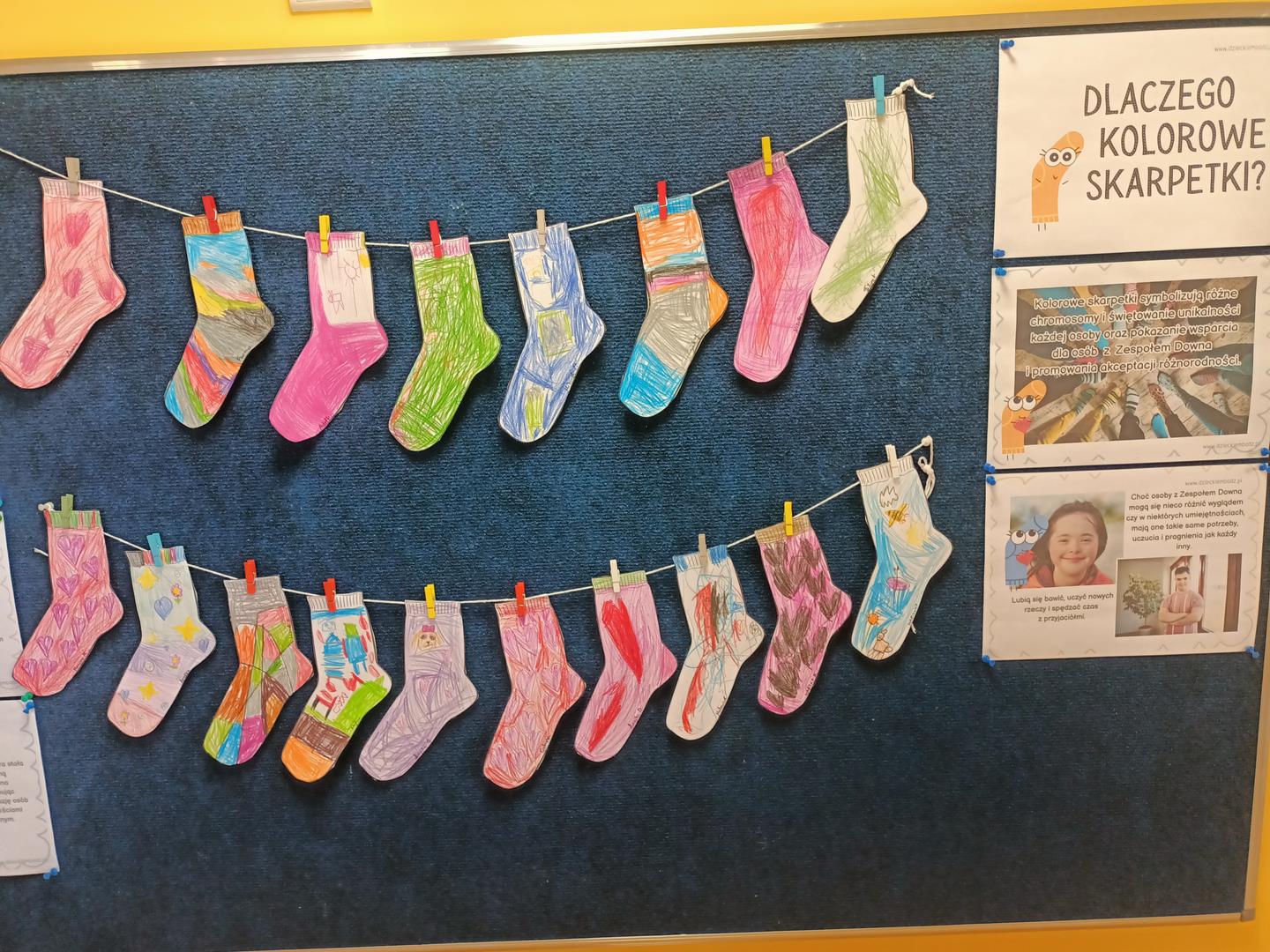 To piękna, społeczna inicjatywa związana ze Światowym Dniem Zespołu Downa (21 marca), która uczy empatii, akceptacji i wrażliwości. Dzieci z zaangażowaniem ozdabiały papierowe skarpetki, a podczas finału akcji założyły dwie różne skarpetki, pokazując w ten sposób solidarność z osobami z trisomią 21.