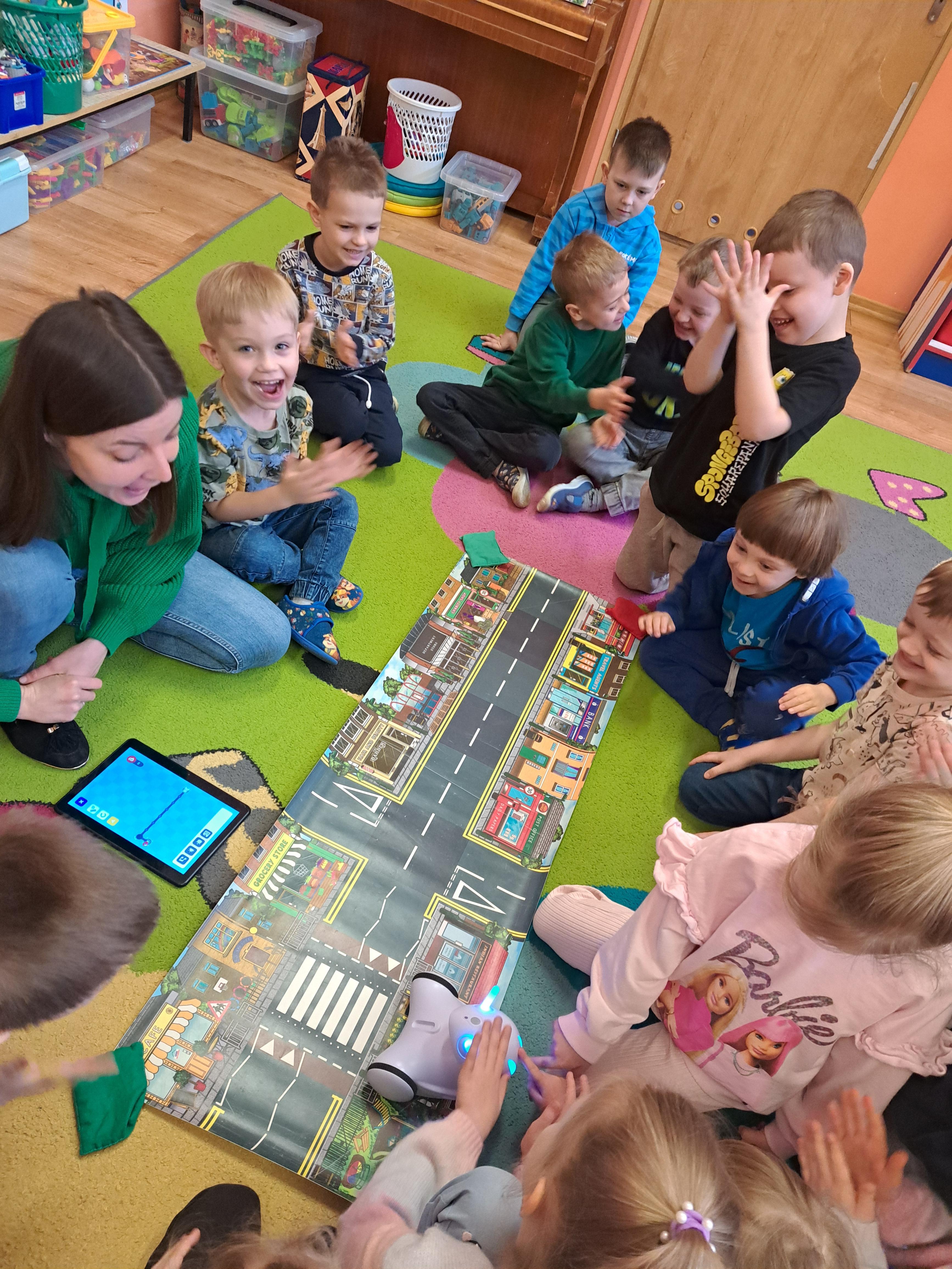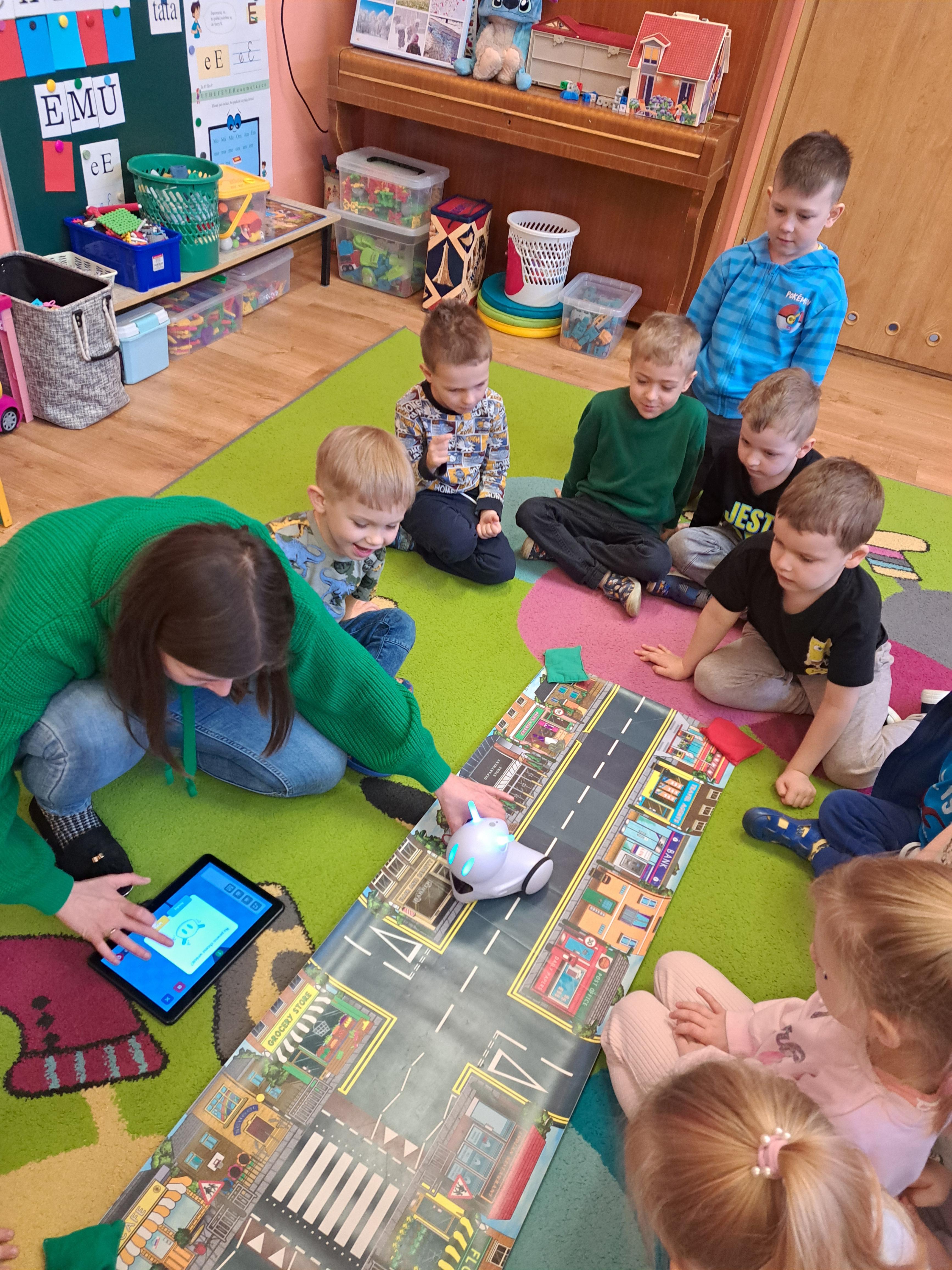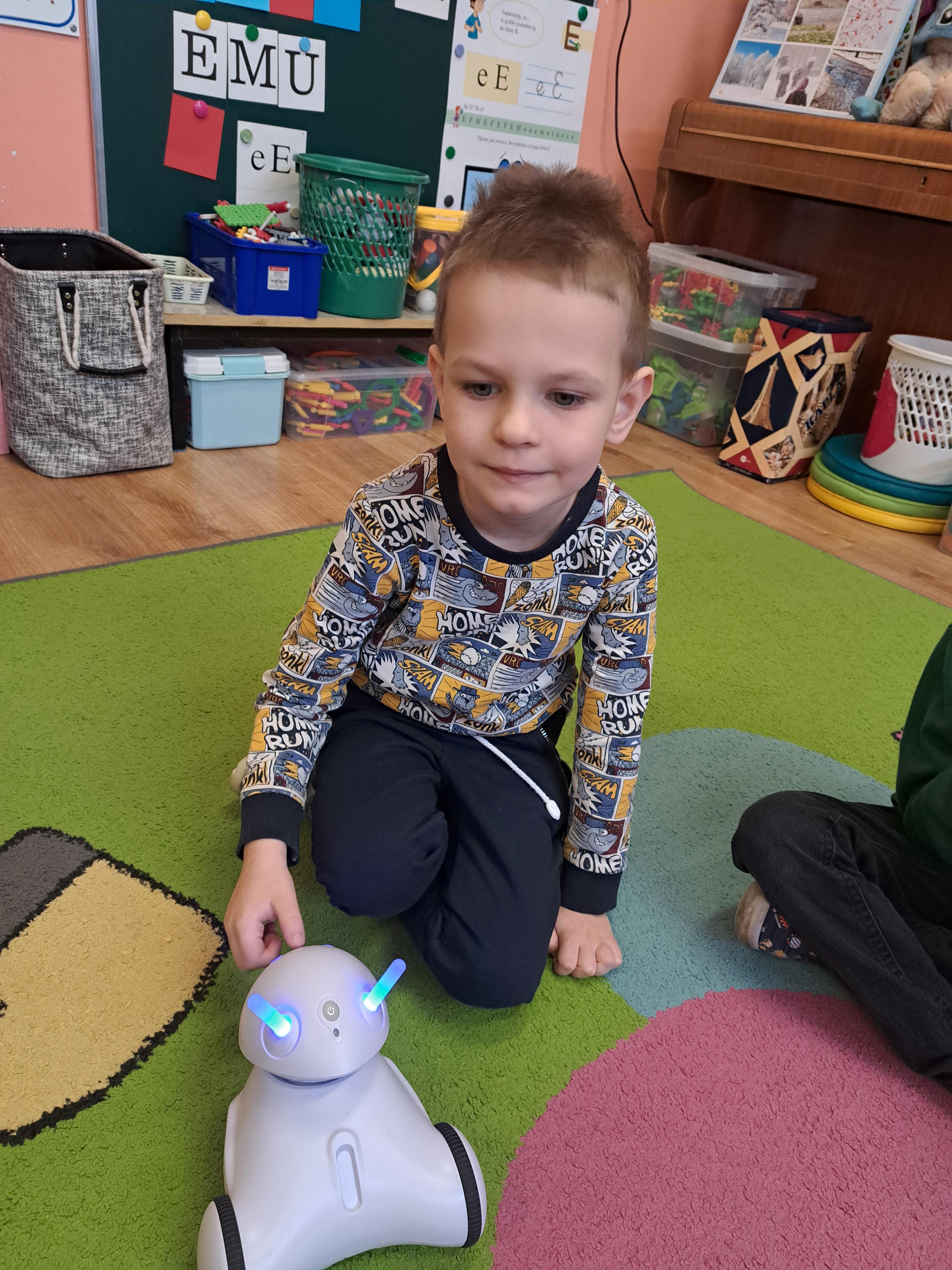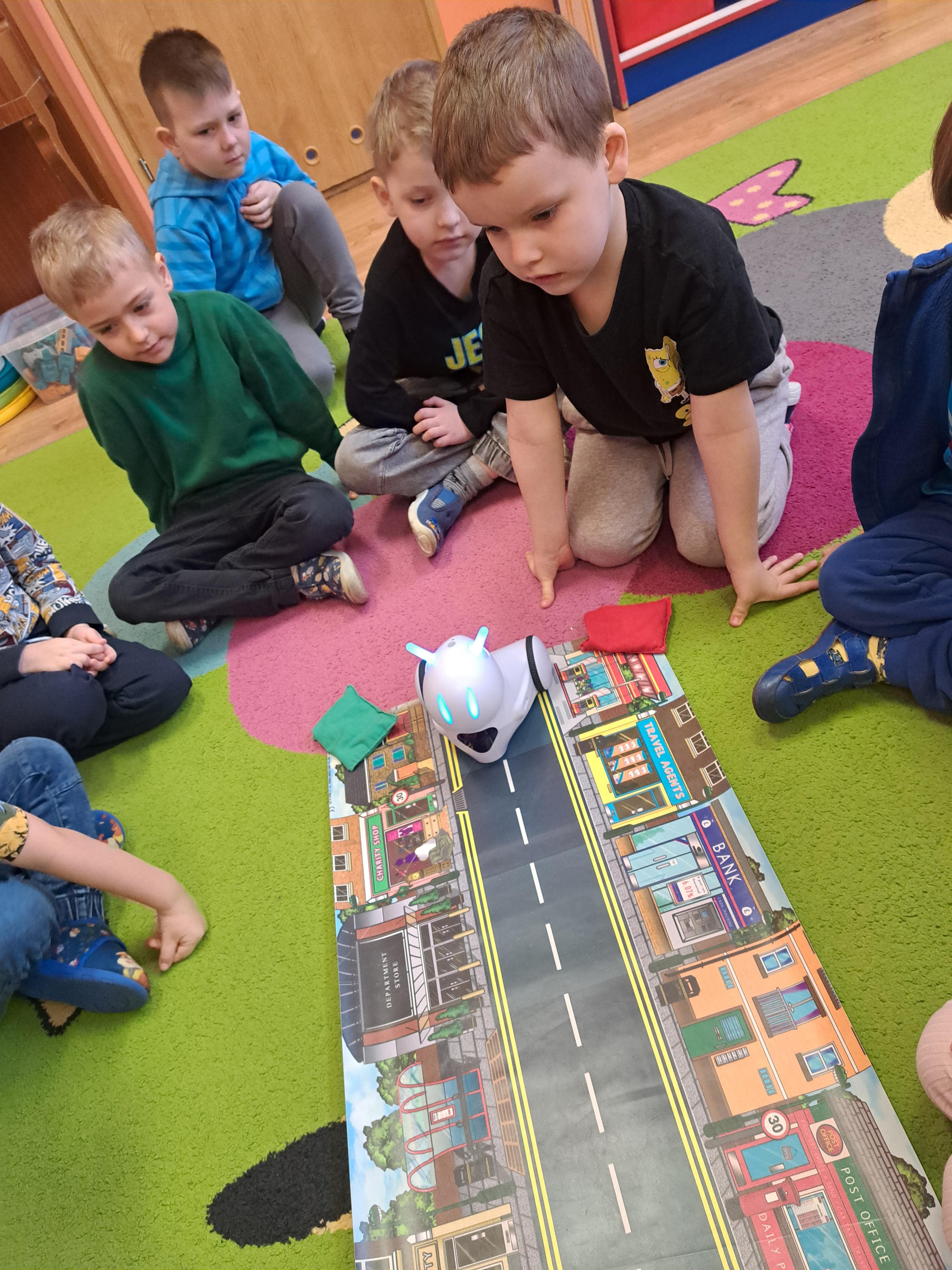 W poniedziałek 23 lutego, Misie uczestniczyły w zajęciach z wykorzystaniem robota Photona. Poprzez zadania stawiane Photonowi określały jego ruch, wydawanie dźwięku czy zmianę czułek na inny kolor. Zadaniem przedszkolaków było kodowanie drogi Photona do poszczególnych miejsc np. do wulkanu znajdującego się na kolorowej macie. Zajęcia były bardzo ciekawe dzięki wykorzystaniu innowacyjnego urządzenia, jakim jest robot edukacyjny. Dziękujemy Pani Asi za pomoc w organizacji zajęć :-)