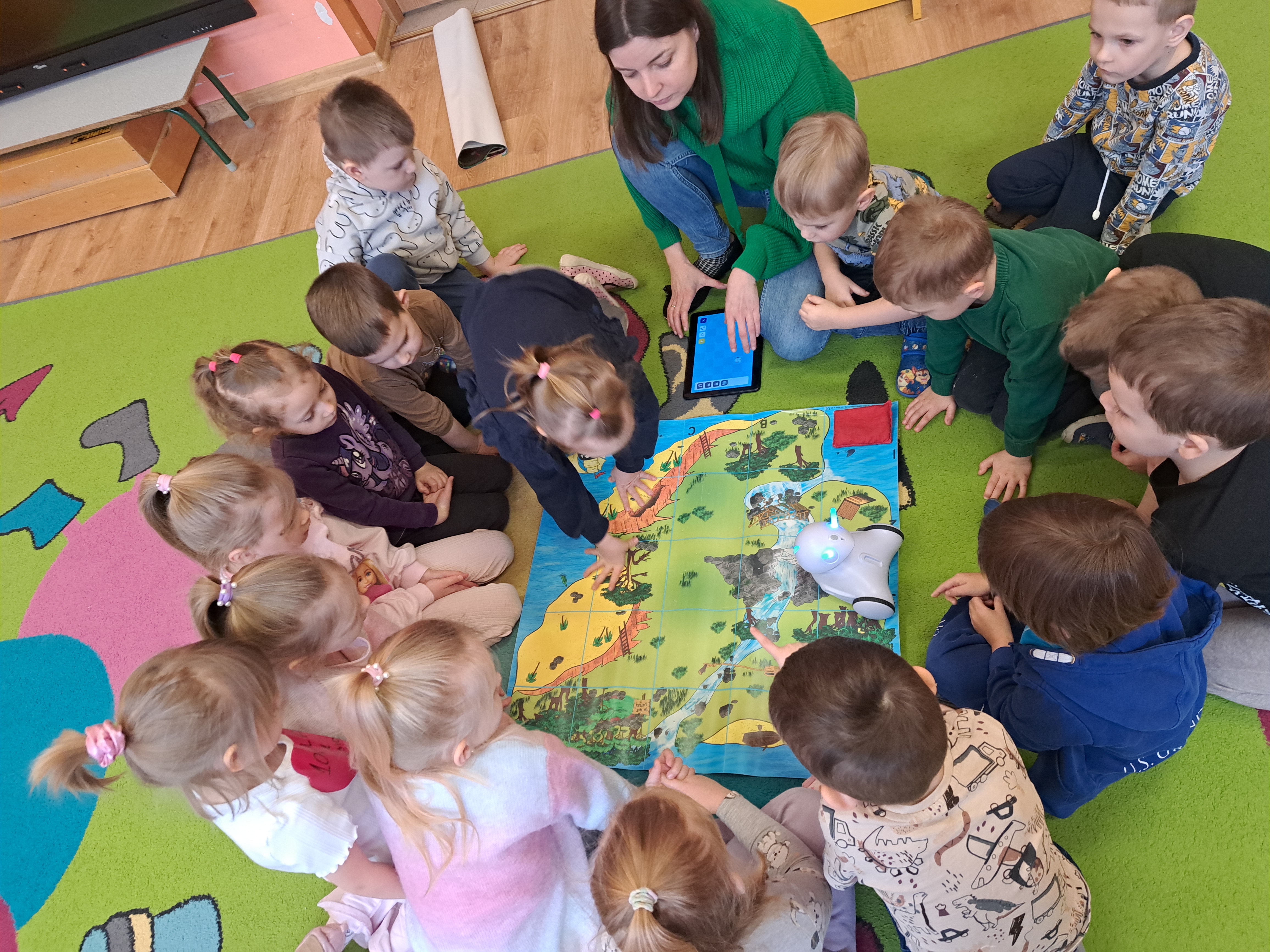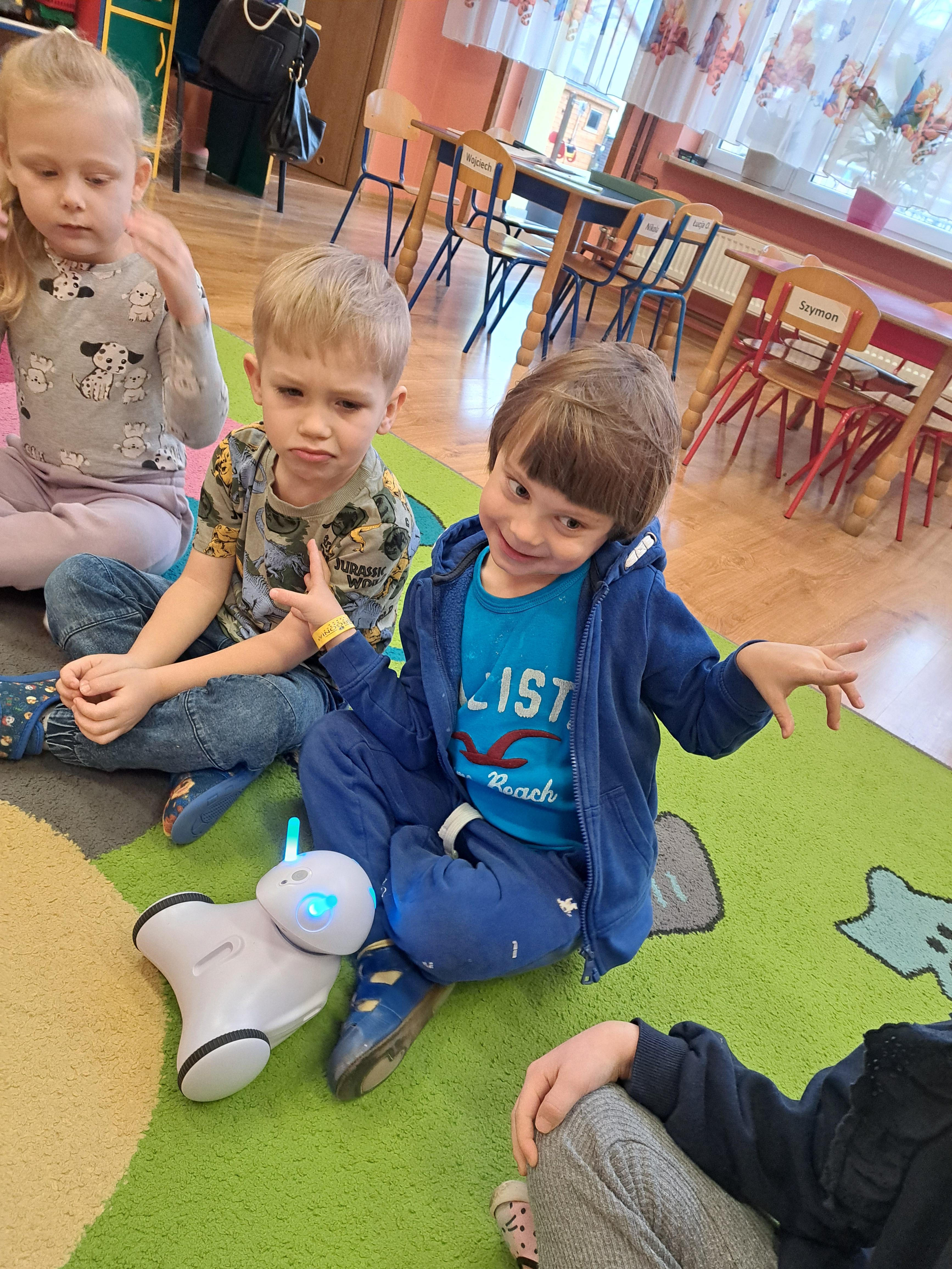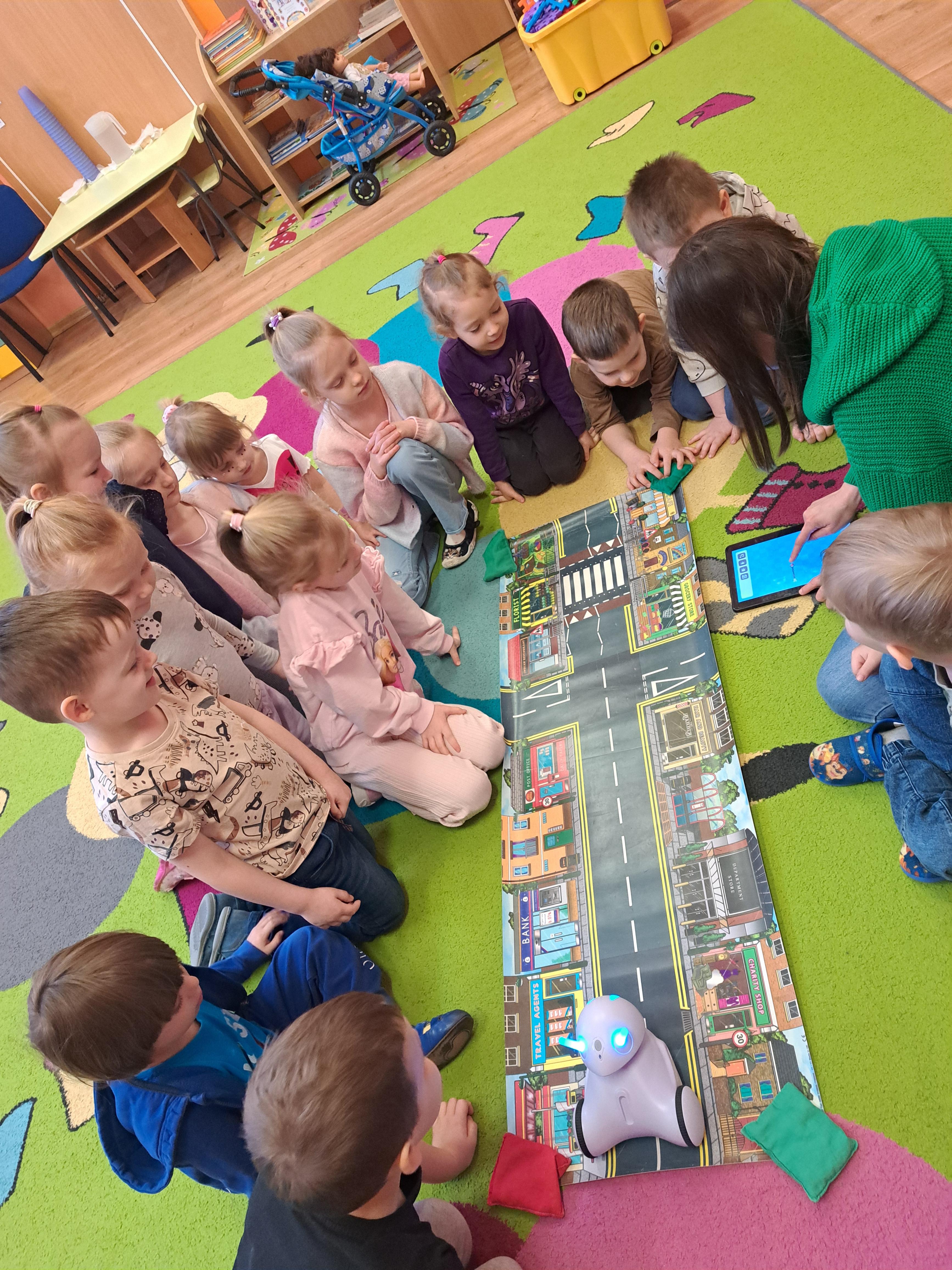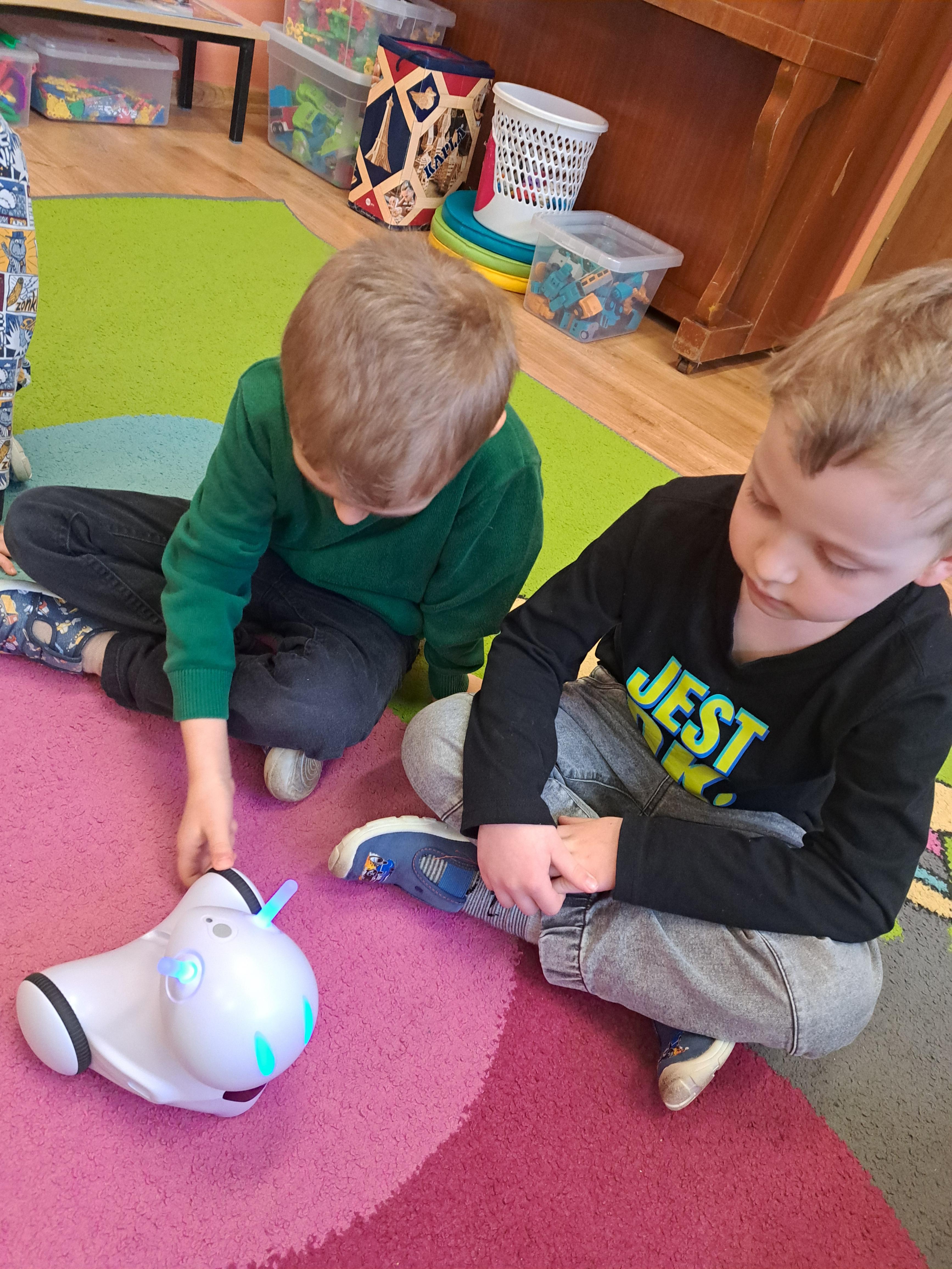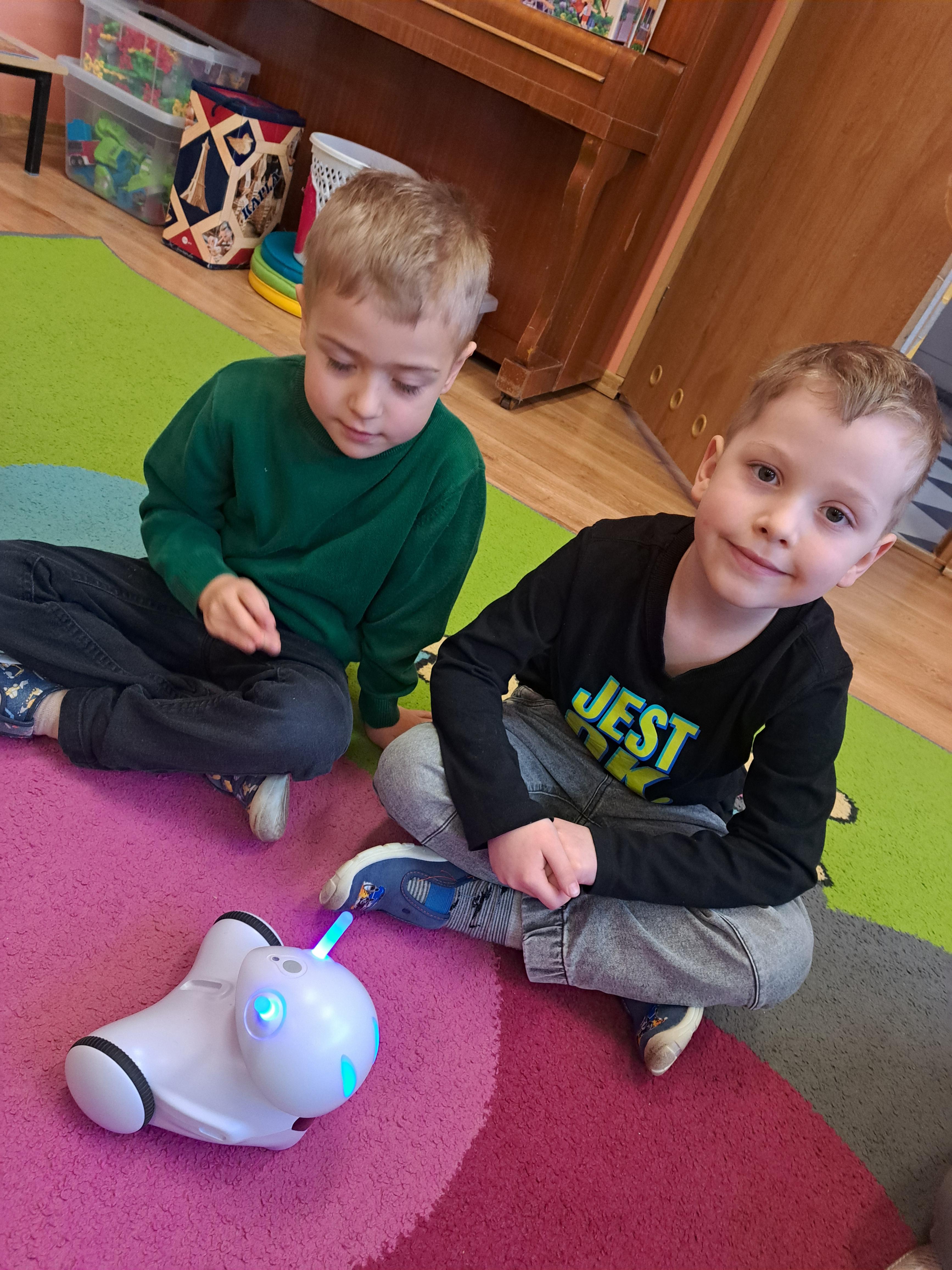 W poniedziałek 23 lutego, Misie uczestniczyły w zajęciach z wykorzystaniem robota Photona. Poprzez zadania stawiane Photonowi określały jego ruch, wydawanie dźwięku czy zmianę czułek na inny kolor. Zadaniem przedszkolaków było kodowanie drogi Photona do poszczególnych miejsc np. do wulkanu znajdującego się na kolorowej macie. Zajęcia były bardzo ciekawe dzięki wykorzystaniu innowacyjnego urządzenia, jakim jest robot edukacyjny. Dziękujemy Pani Asi za pomoc w organizacji zajęć :-)