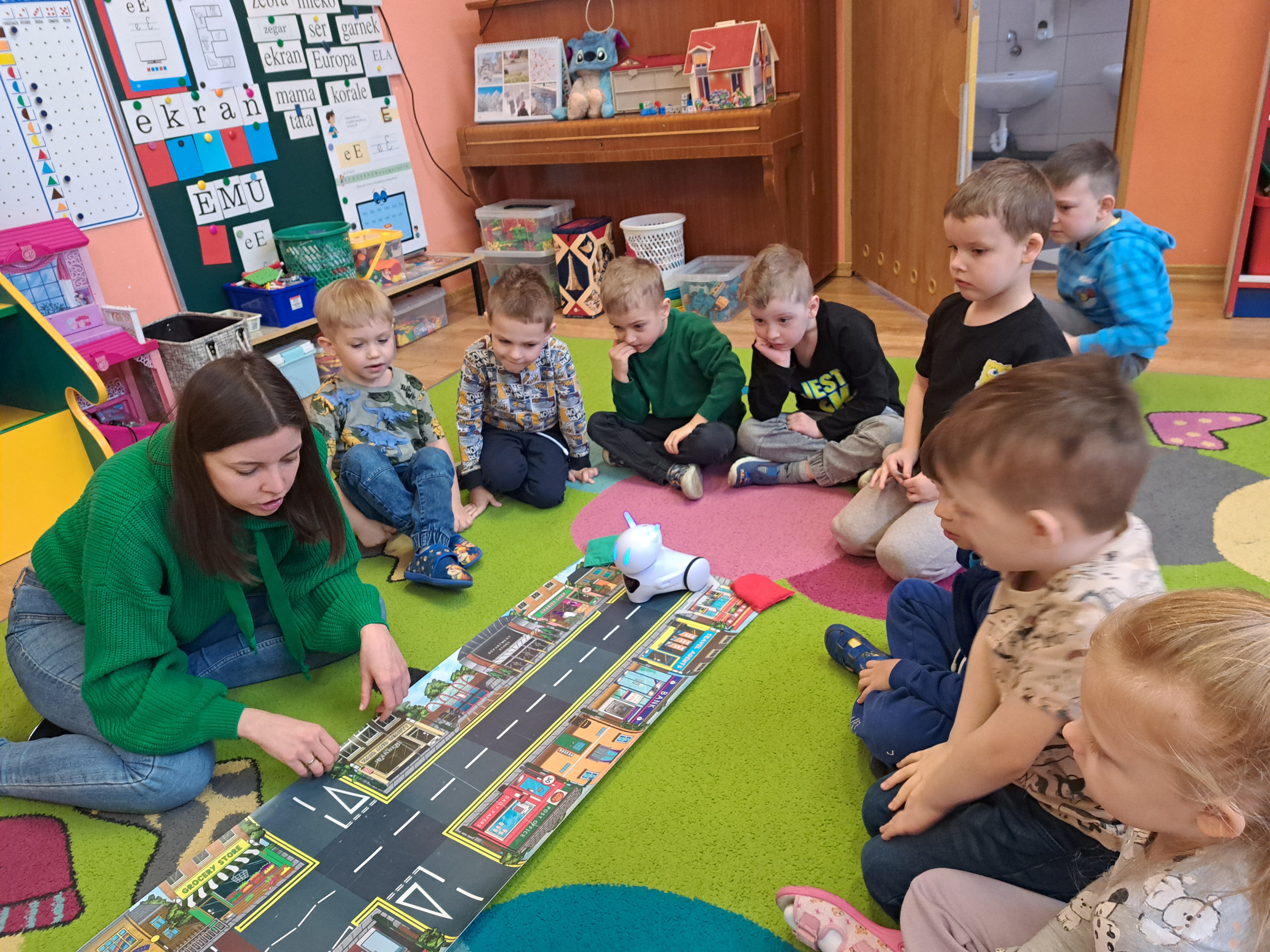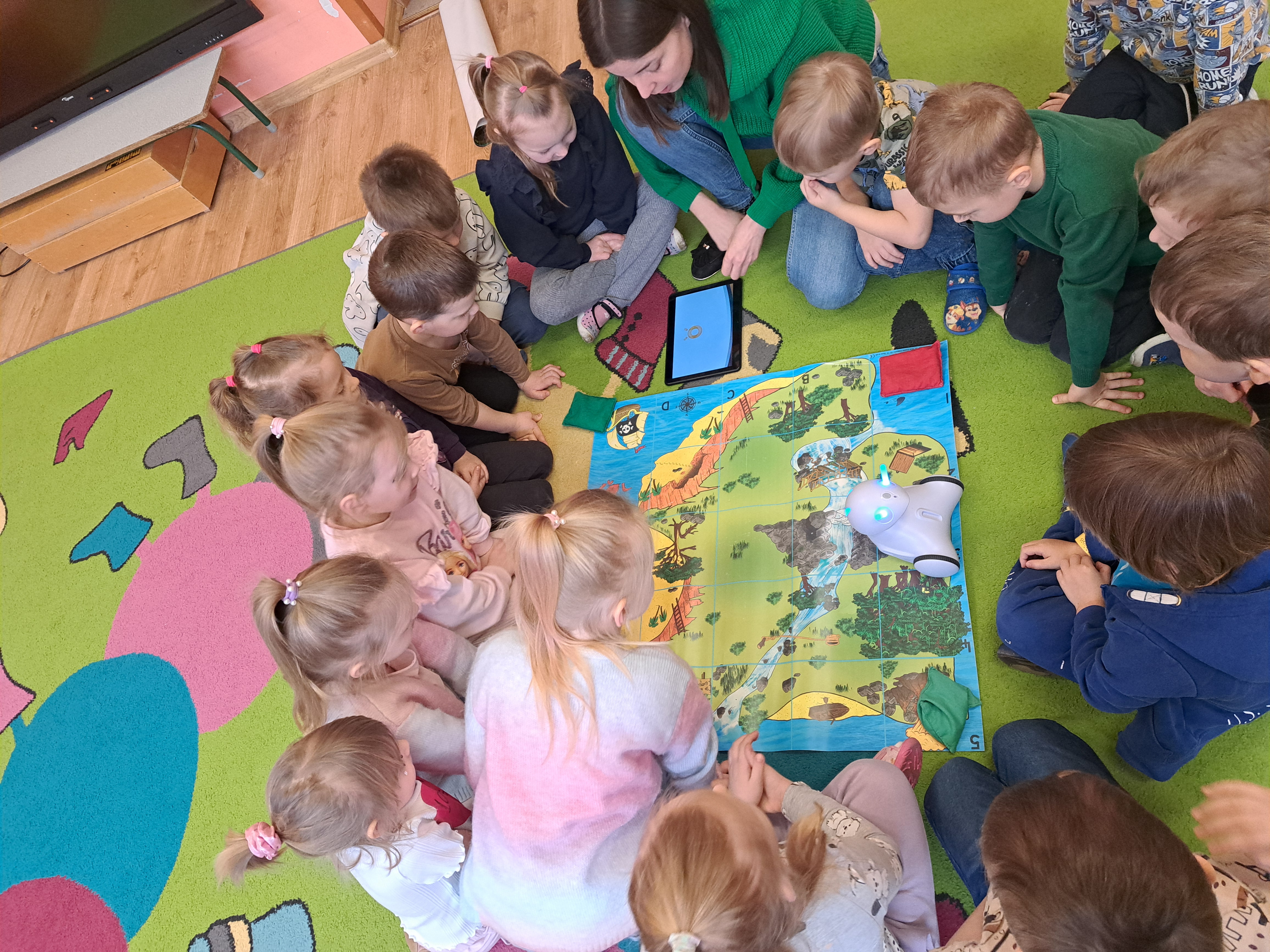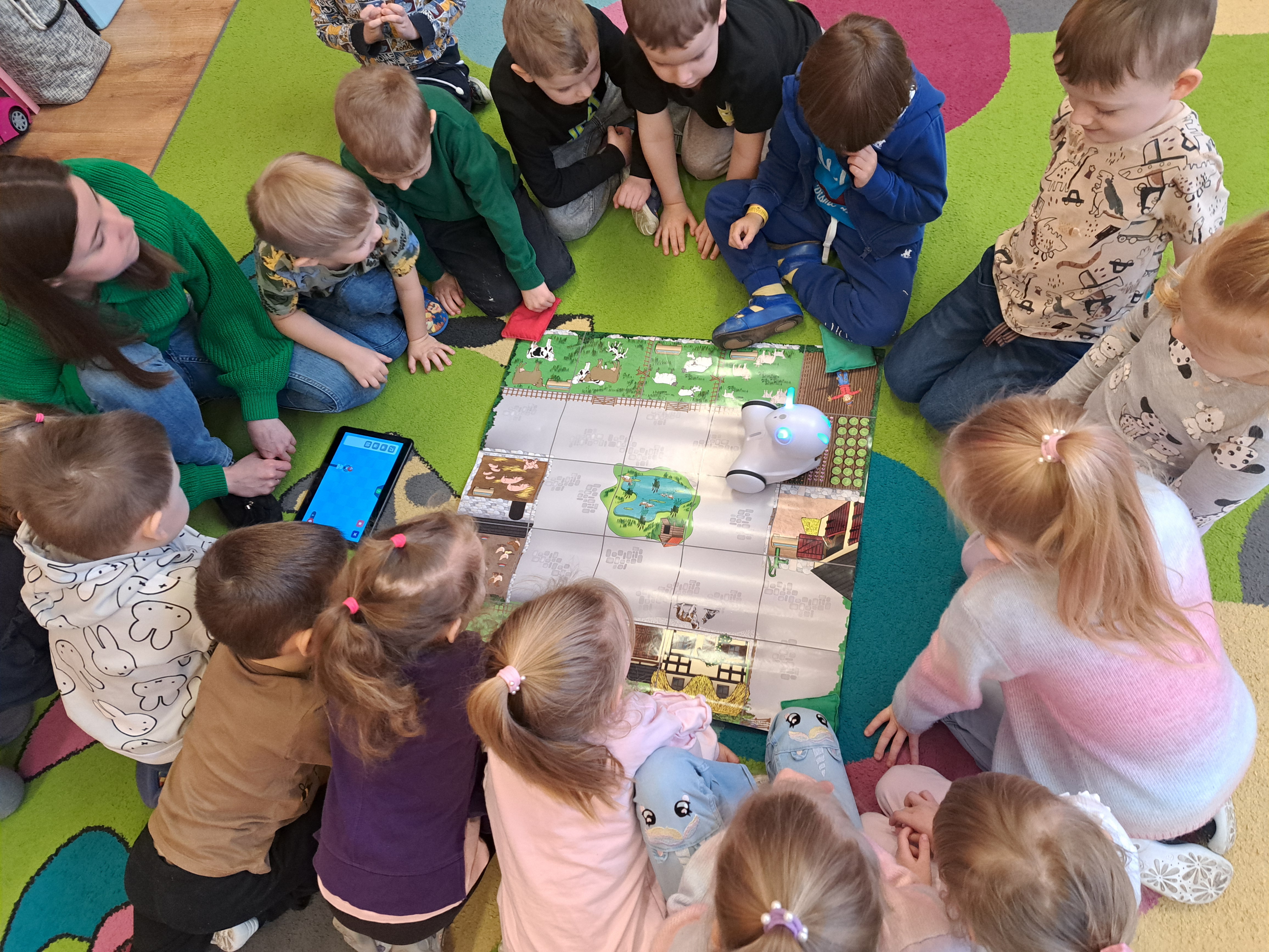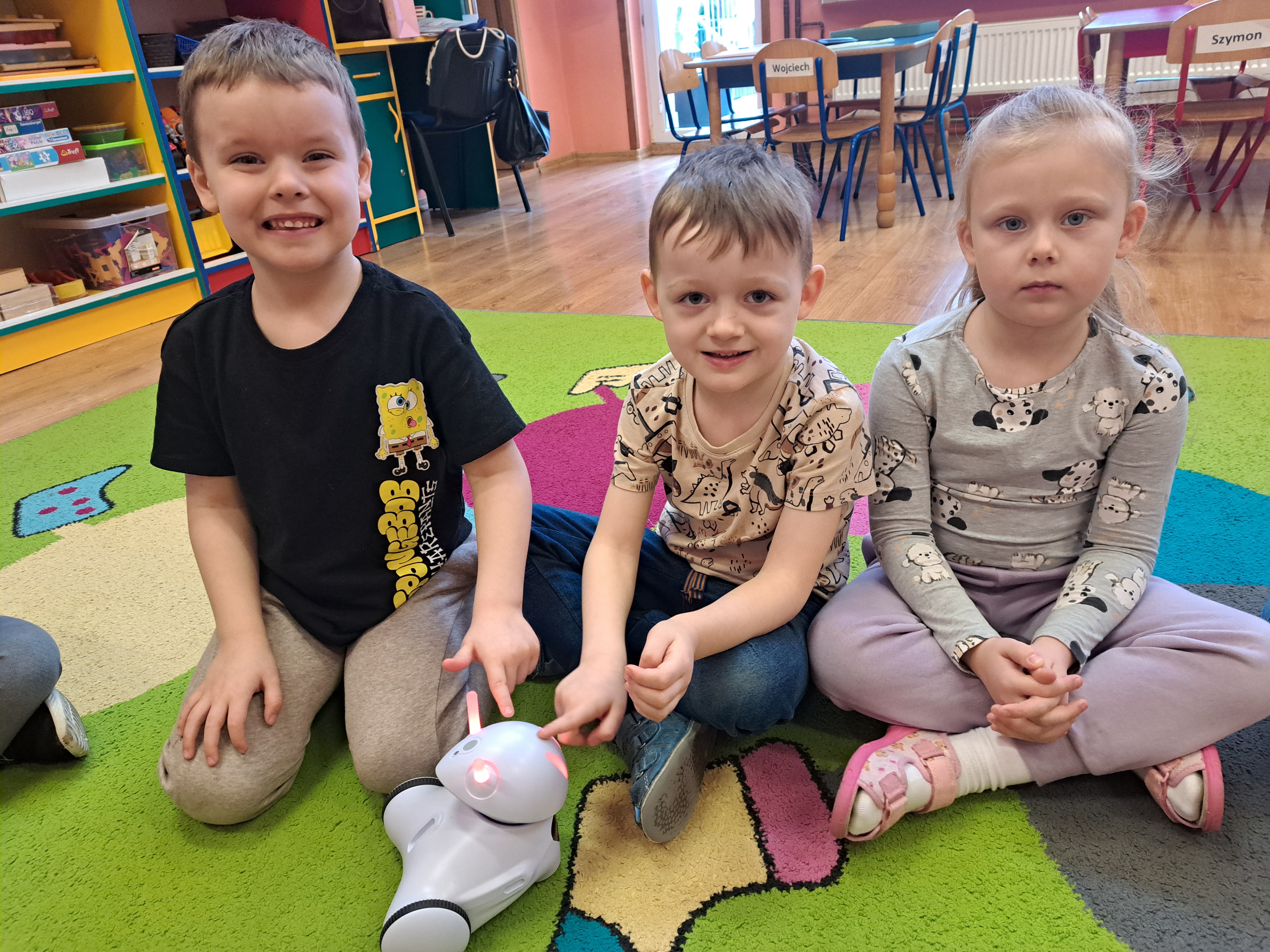 W poniedziałek 23 lutego, Misie uczestniczyły w zajęciach z wykorzystaniem robota Photona. Poprzez zadania stawiane Photonowi określały jego ruch, wydawanie dźwięku czy zmianę czułek na inny kolor. Zadaniem przedszkolaków było kodowanie drogi Photona do poszczególnych miejsc np. do wulkanu znajdującego się na kolorowej macie. Zajęcia były bardzo ciekawe dzięki wykorzystaniu innowacyjnego urządzenia, jakim jest robot edukacyjny. Dziękujemy Pani Asi za pomoc w organizacji zajęć :-)