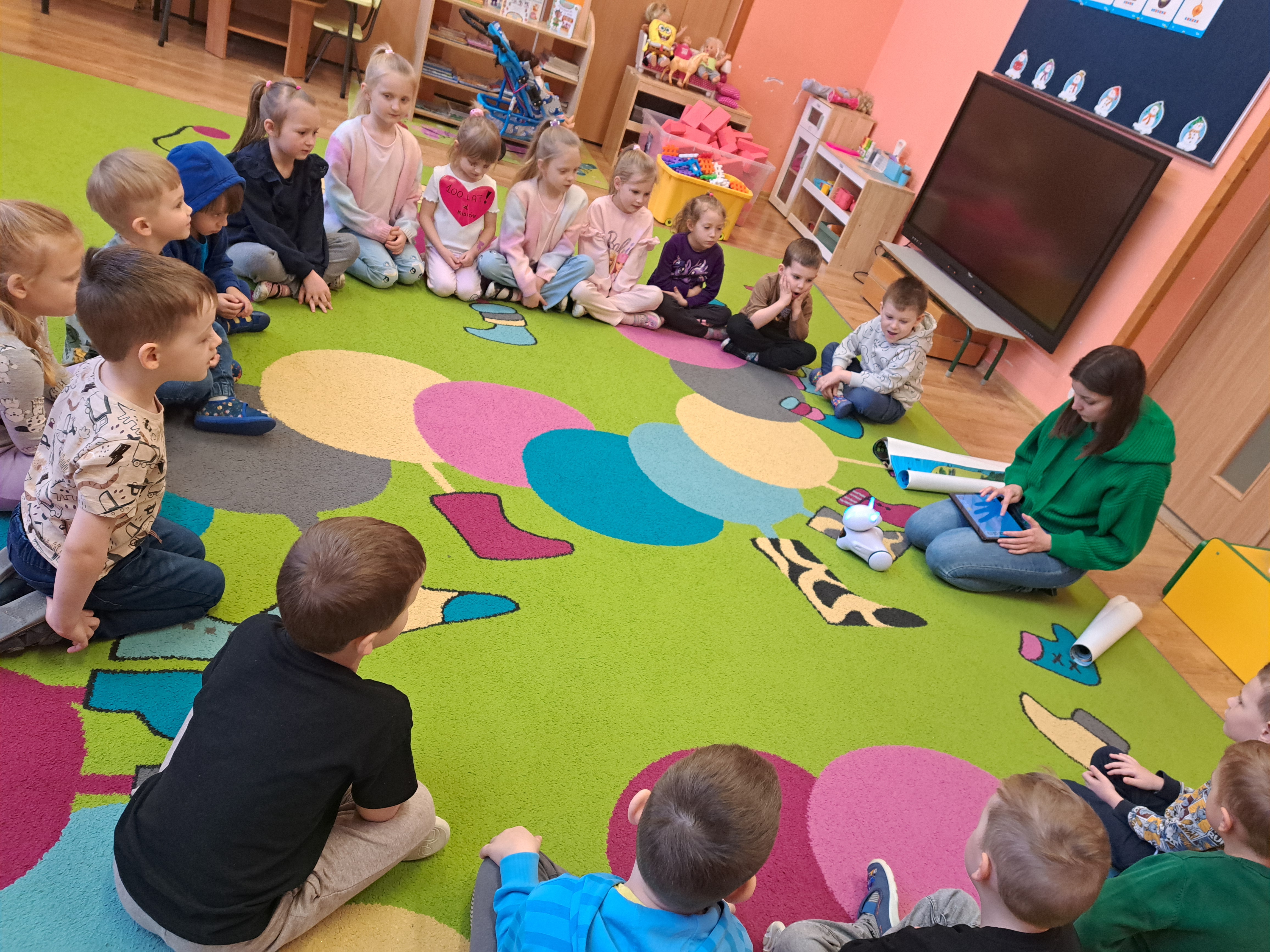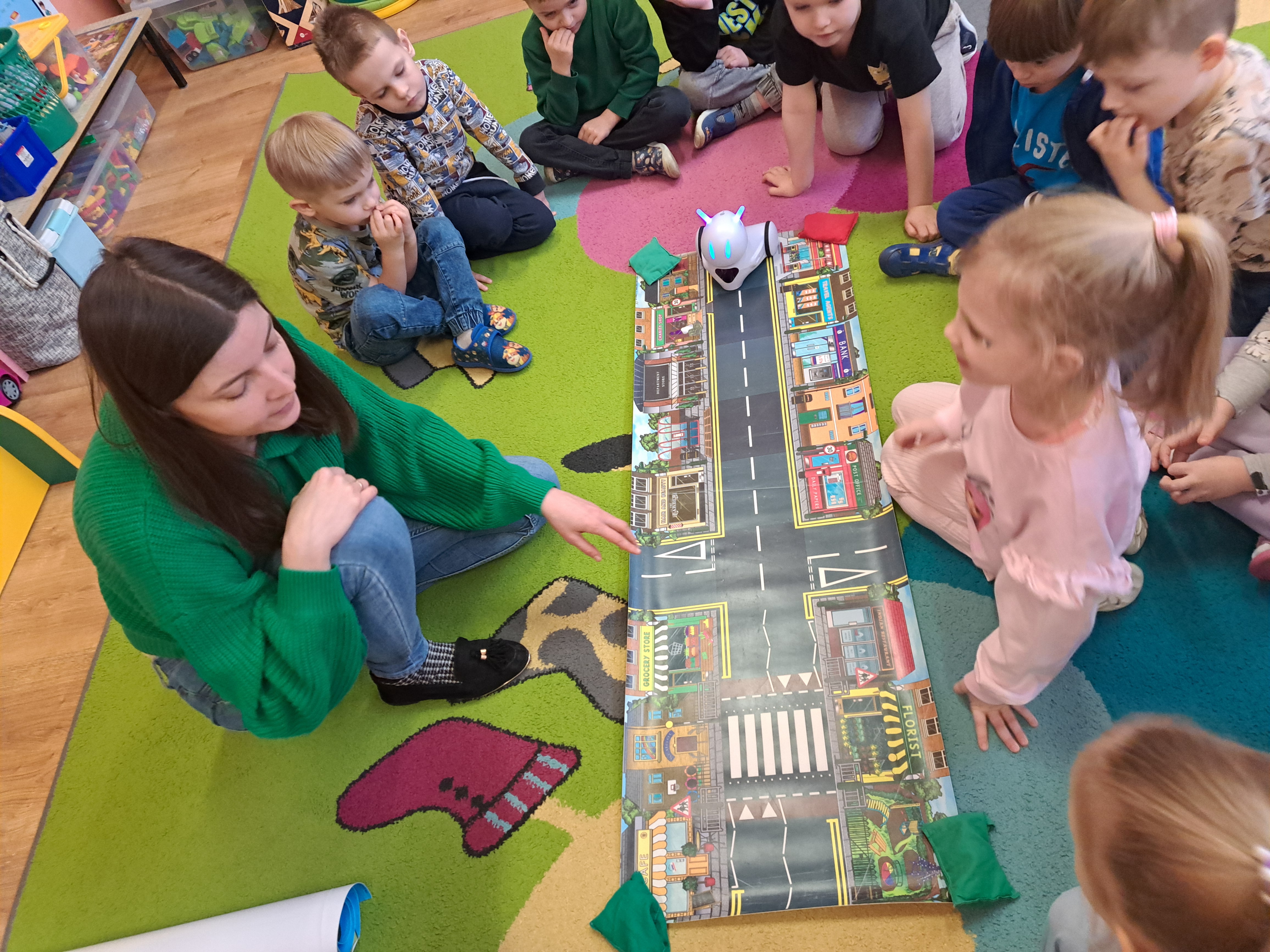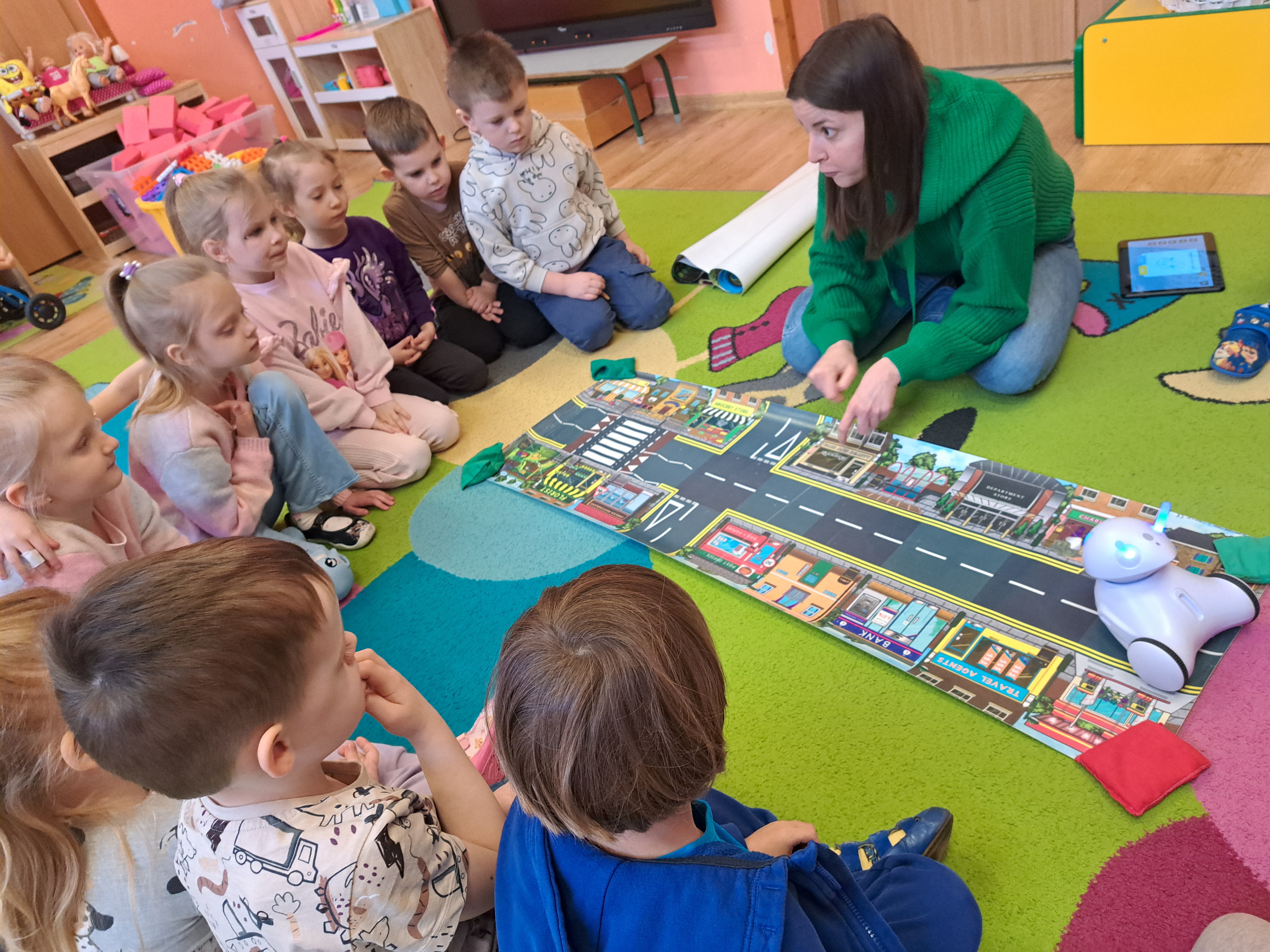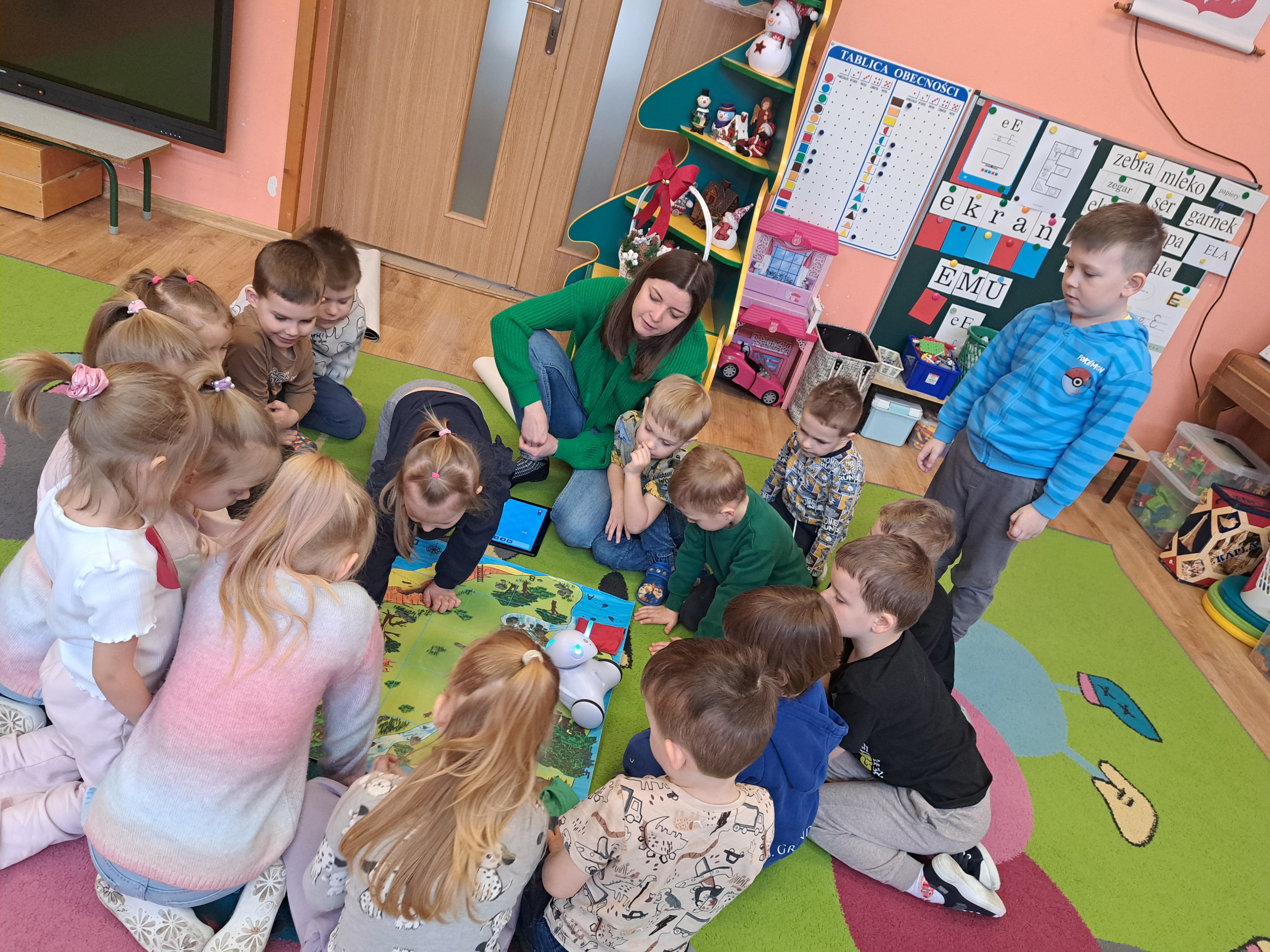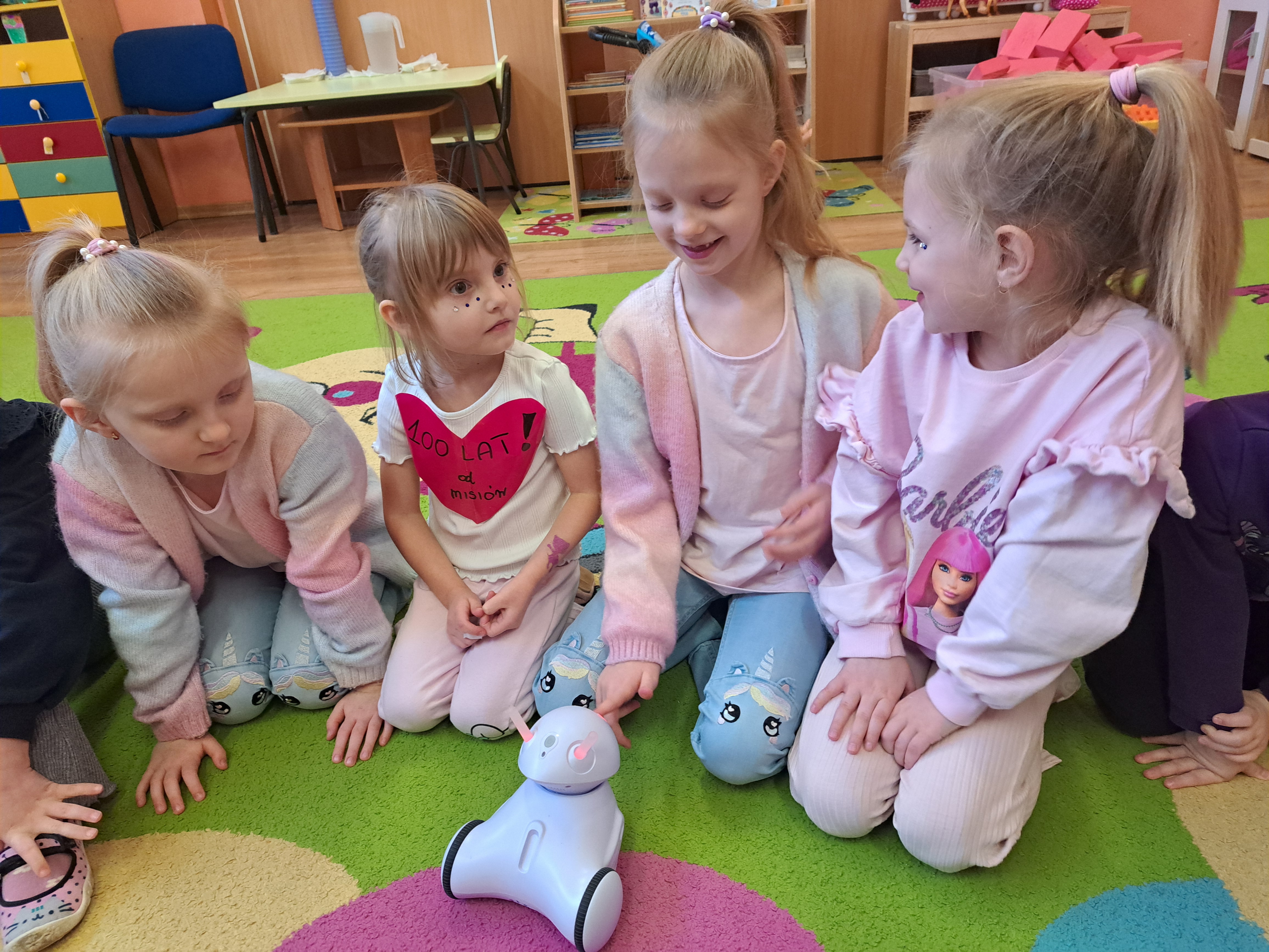 W poniedziałek 23 lutego, Misie uczestniczyły w zajęciach z wykorzystaniem robota Photona. Poprzez zadania stawiane Photonowi określały jego ruch, wydawanie dźwięku czy zmianę czułek na inny kolor. Zadaniem przedszkolaków było kodowanie drogi Photona do poszczególnych miejsc np. do wulkanu znajdującego się na kolorowej macie. Zajęcia były bardzo ciekawe dzięki wykorzystaniu innowacyjnego urządzenia, jakim jest robot edukacyjny. Dziękujemy Pani Asi za pomoc w organizacji zajęć :-)