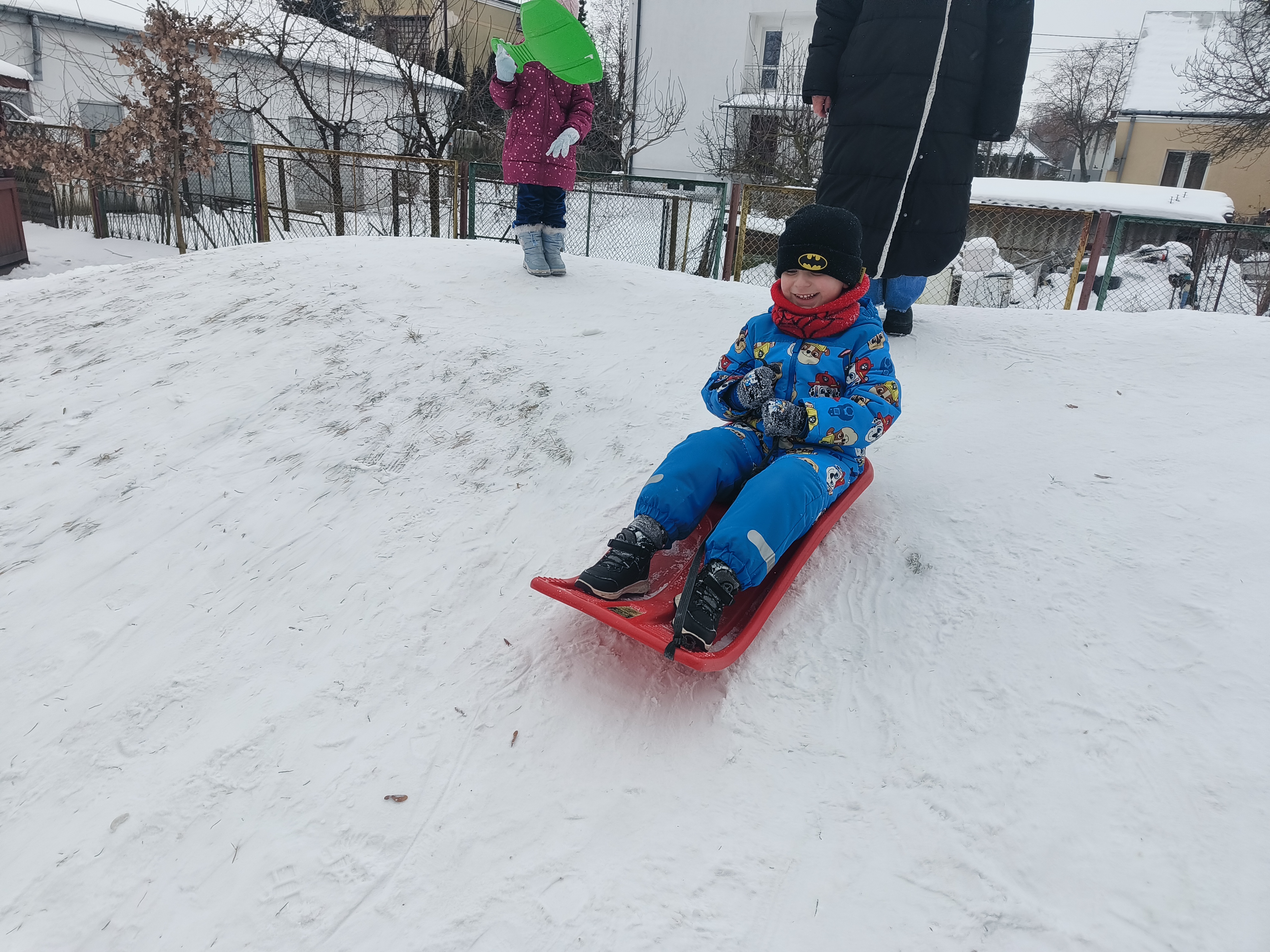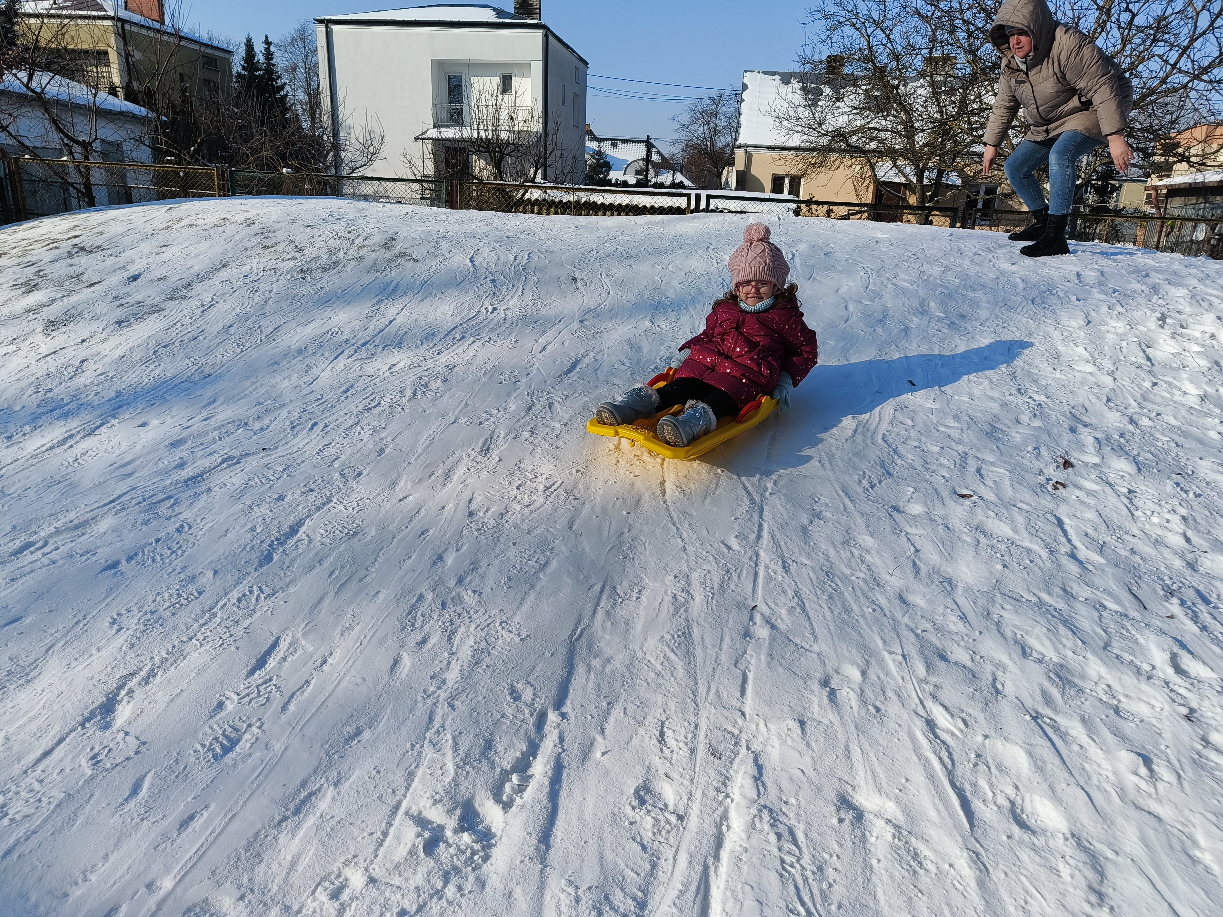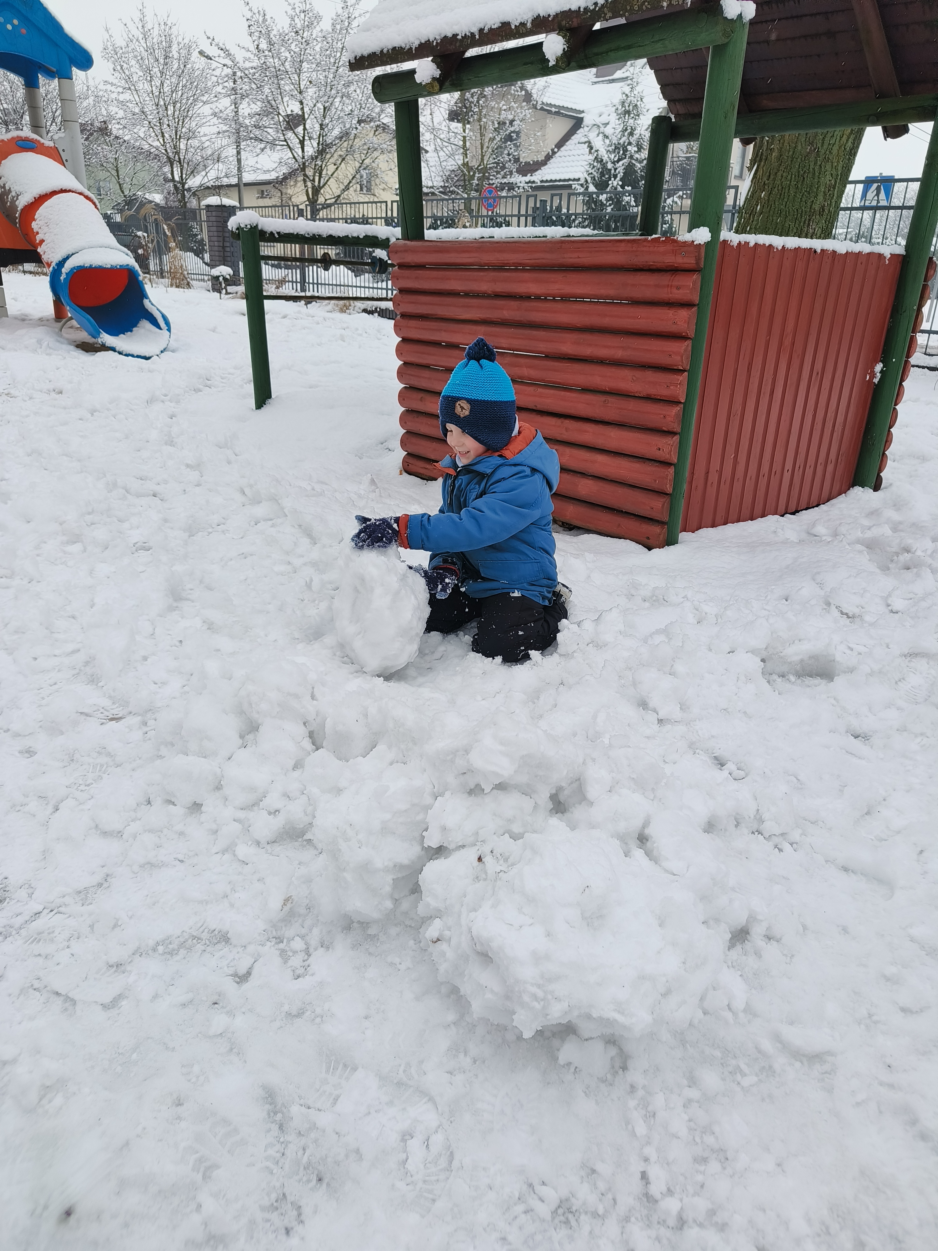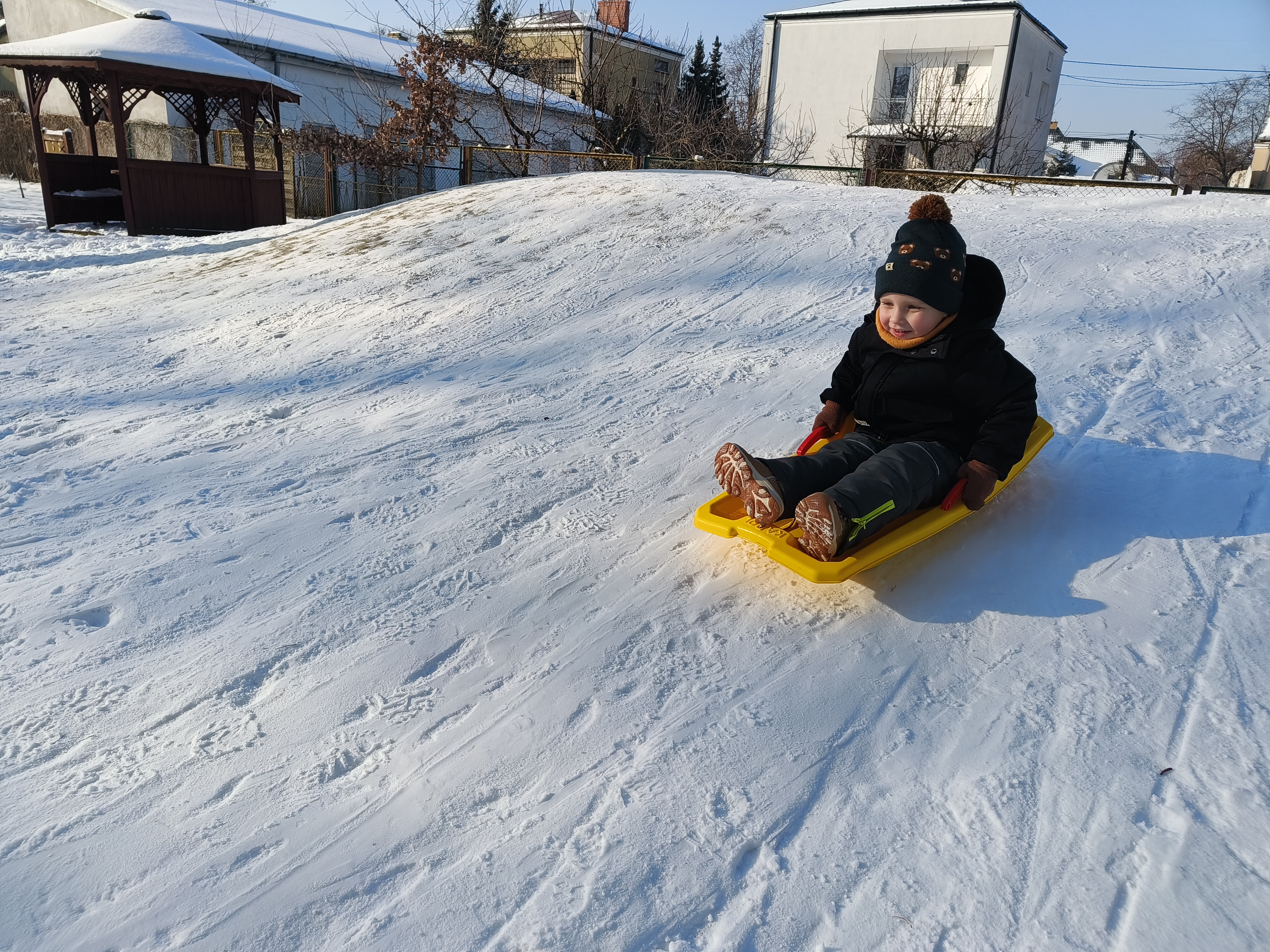 Zima to doskonały czas na aktywność na świeżym powietrzu i radosne zabawy na śniegu. Elfy korzystają z zimowej aury i wesoło spędzają czas na wspólnych zabawach – lepią bałwanki, rzucają śnieżkami oraz zjeżdżają na sankach. Nie brakuje również spacerów po zaśnieżonym terenie oraz rozmów o bezpieczeństwie. Zimowy czas sprzyja zarówno rozwijaniu sprawności fizycznej jak i integracji grupowej a radość płynąca z zabaw i uśmiechy na twarzach dzieci świadczą o tym jak wspaniale spędzają ten czas.