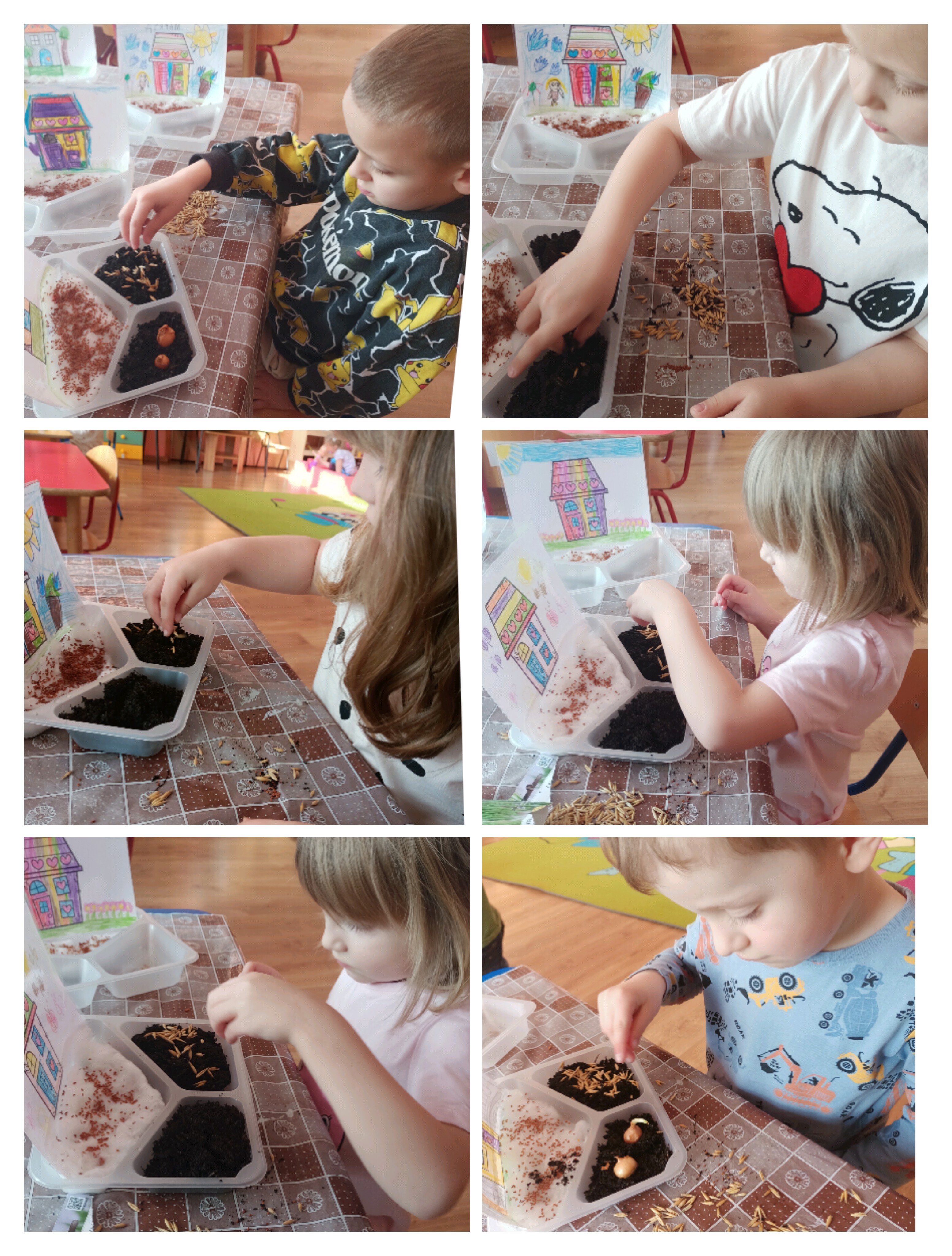 27 marca dzieci z grupy Misie z zaangażowaniem przystąpiły do wiosennych prac ogrodniczych. Wspólnie wysiały owies i rzeżuchę, a także posadziły cebulki, z których wkrótce wyrośnie szczypiorek.