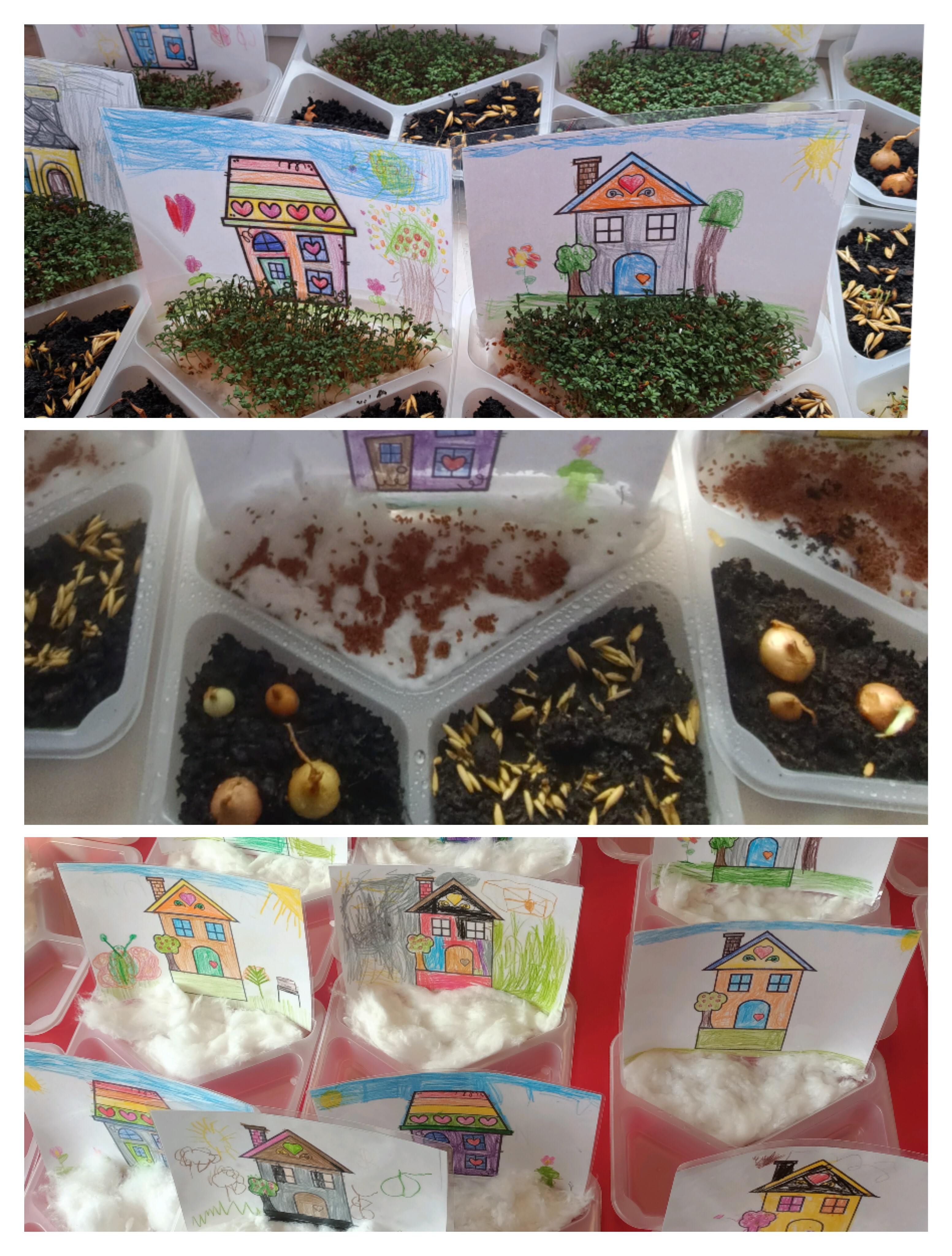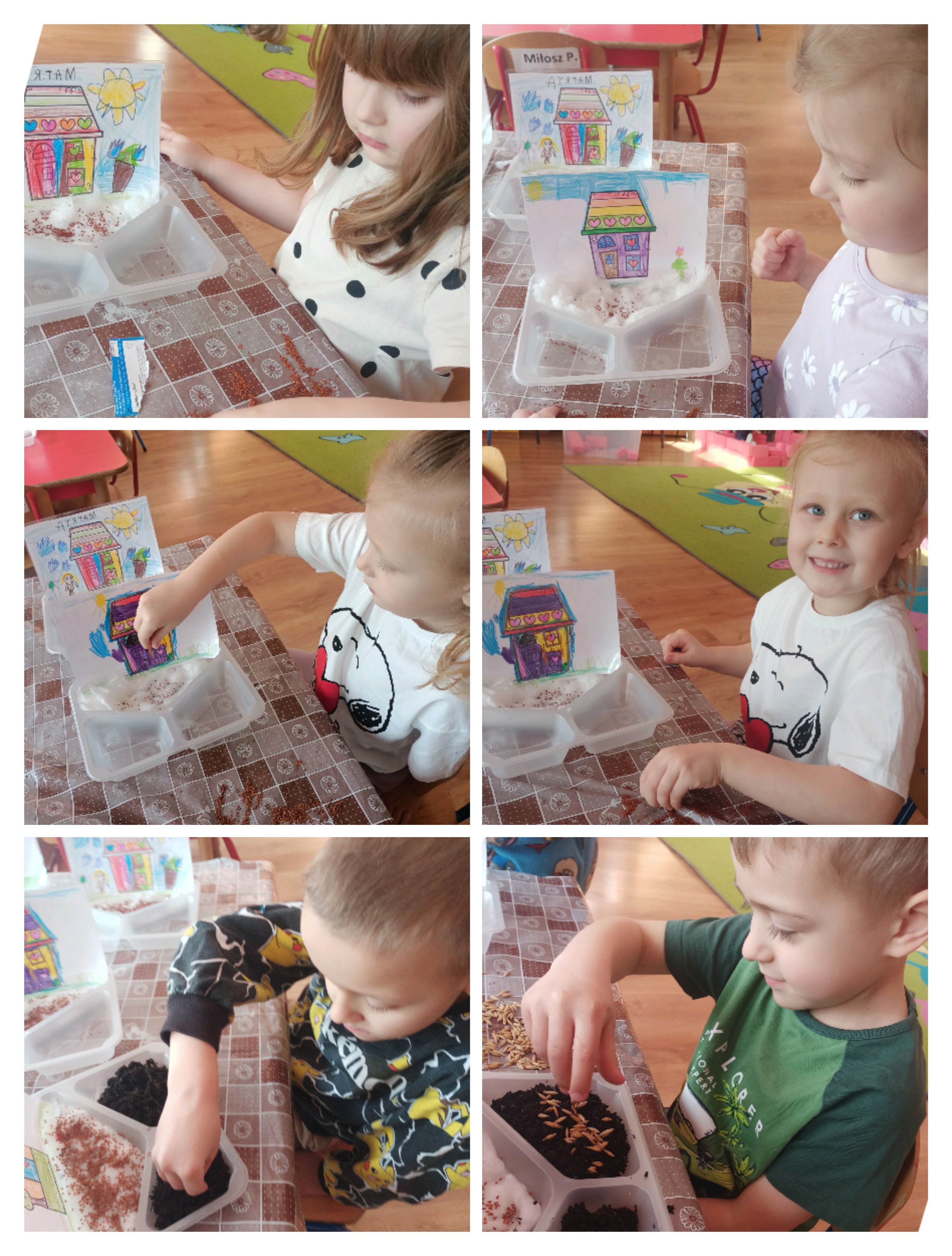 Każdego dnia dzieci z ciekawością obserwowały zmiany zachodzące w naszych uprawach. Z radością zauważały pierwsze zielone kiełki i śledziły ich wzrost. Była to doskonała okazja do nauki cierpliwości, systematyczności oraz poznawania etapów rozwoju roślin.